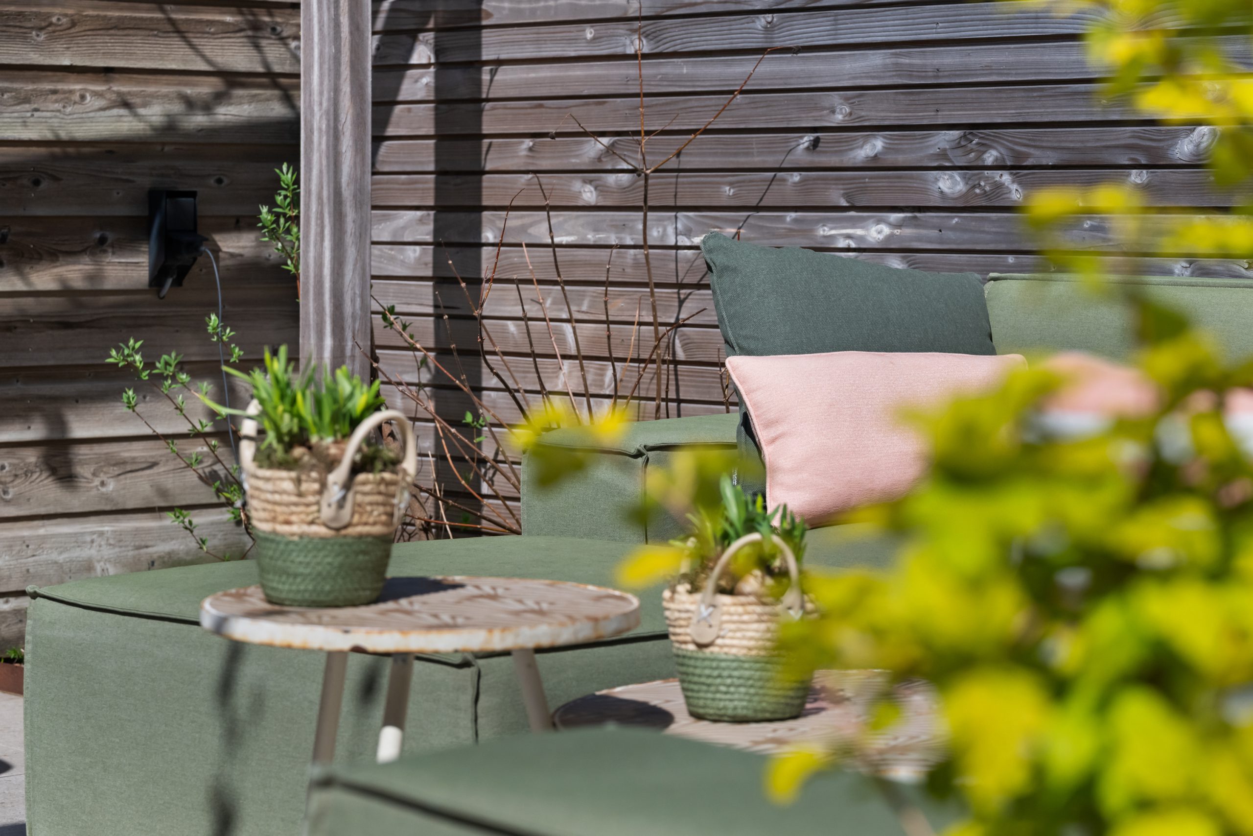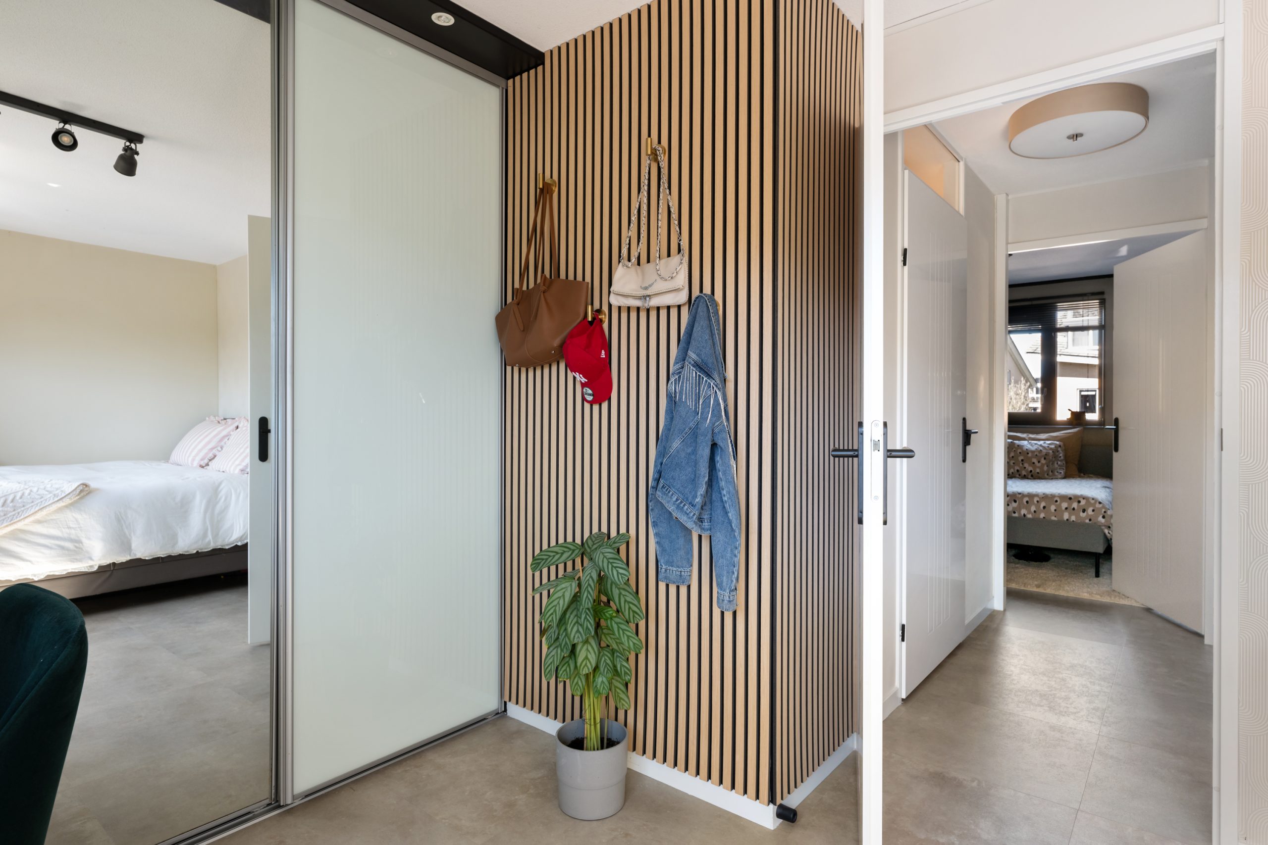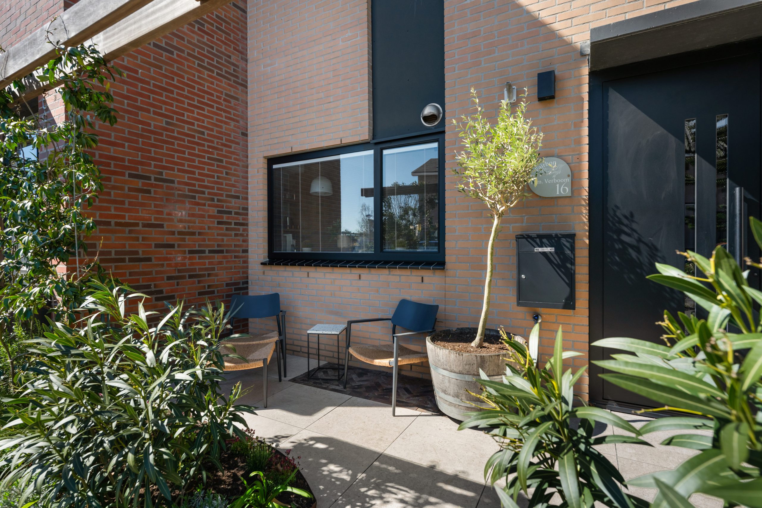 Ook de voortuin is twee jaar geleden opnieuw aangelegd en voorzien van dezelfde stijlvolle keramische tegels. Dankzij de ligging kun je hier in het voorjaar heerlijk genieten van een kopje koffie in het eerste voorjaarszonnetje. Een fijne, uitnodigende entree die direct de verzorgde uitstraling van de woning onderstreept.