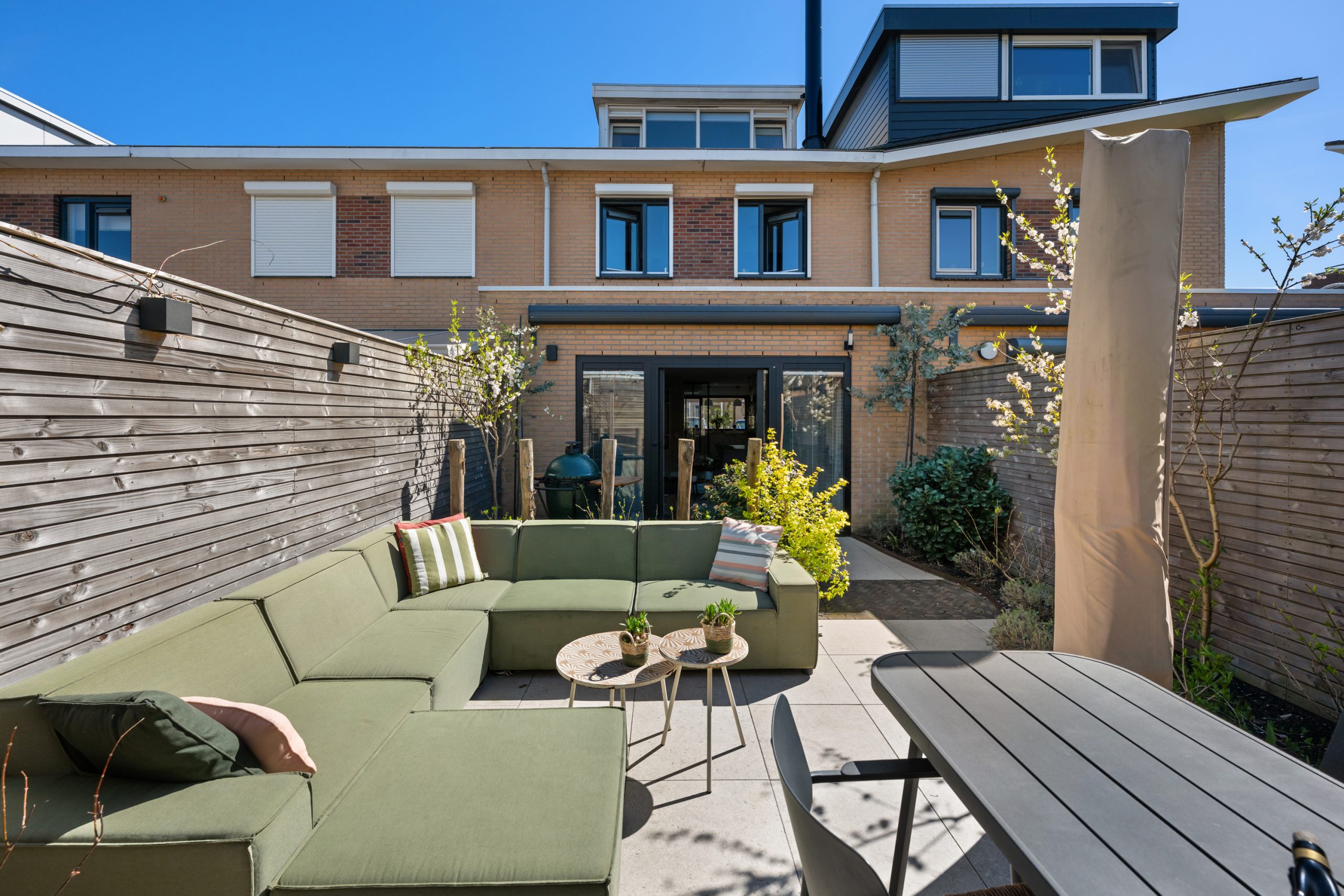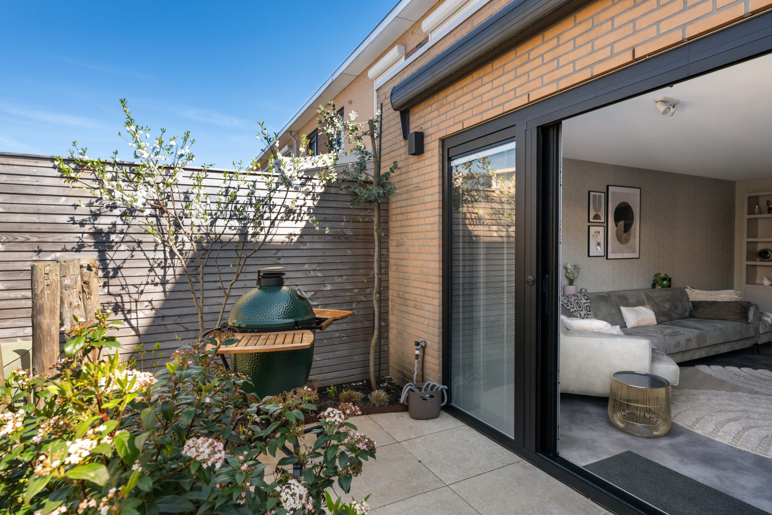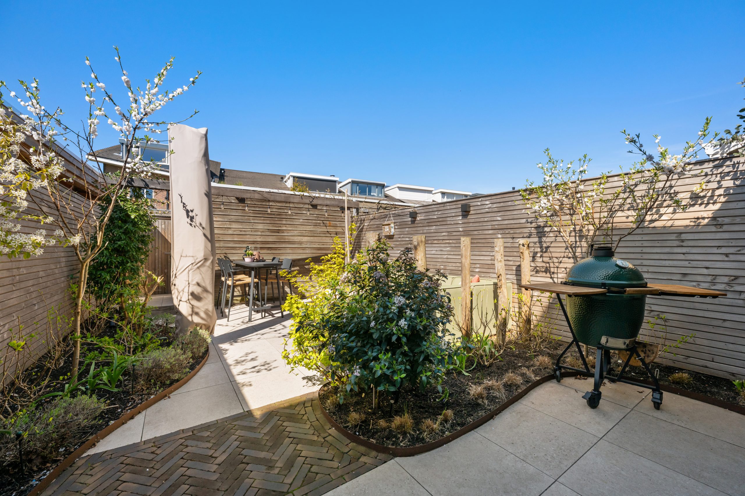Via de brede schuifdeuren stap je de recent opnieuw aangelegde achtertuin binnen, gelegen op het zonnige noordwesten. De tuin is voorzien van onderhoudsvriendelijke keramische tegels en een strakke nieuwe schutting. Hier kun je tot laat in de avond genieten van de zon — de ideale plek voor een gezellige barbecue, diner met vrienden of een ontspannen borrel. De tuin beschikt daarnaast over een elektrisch zonnescherm, praktische berging en een achterom.