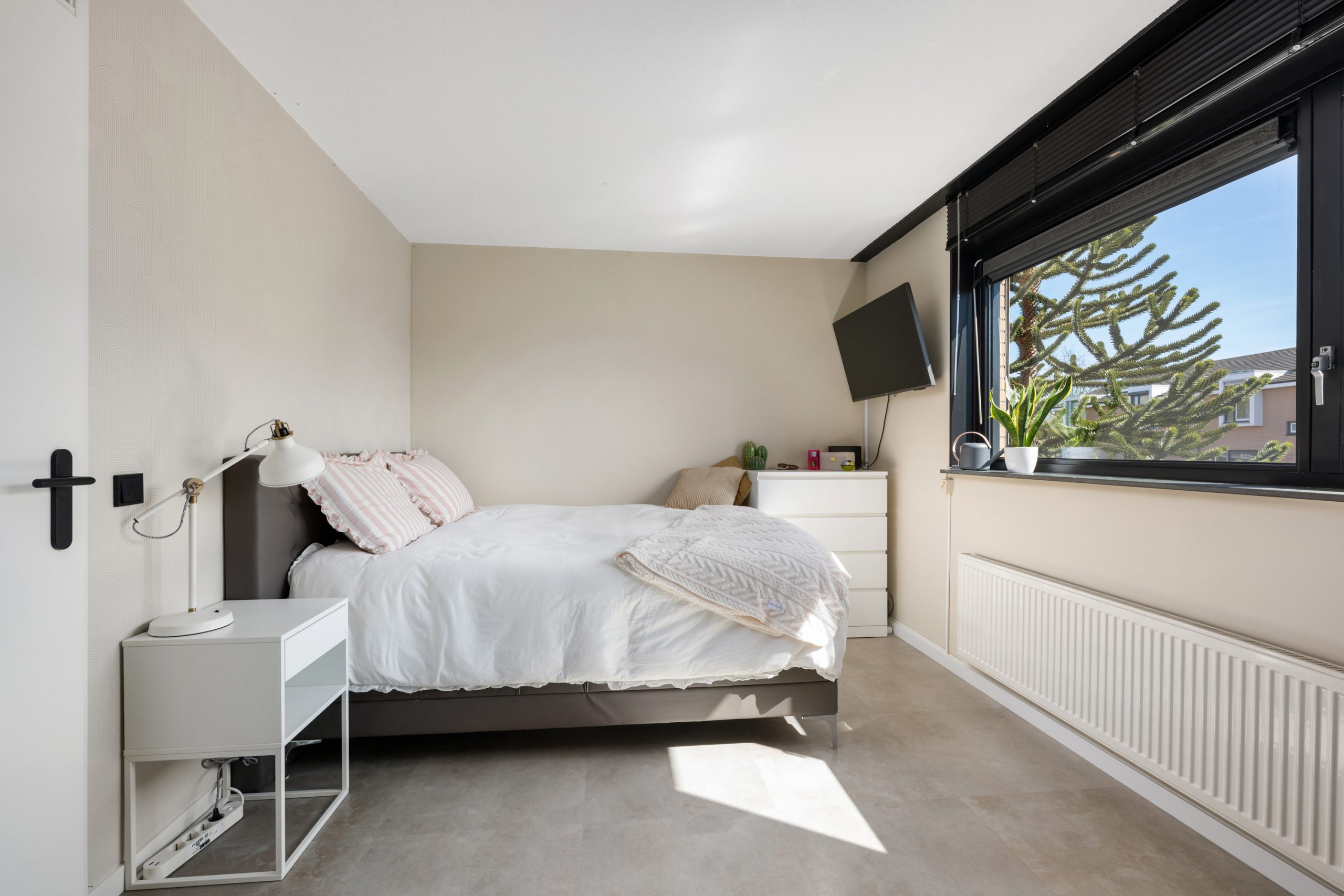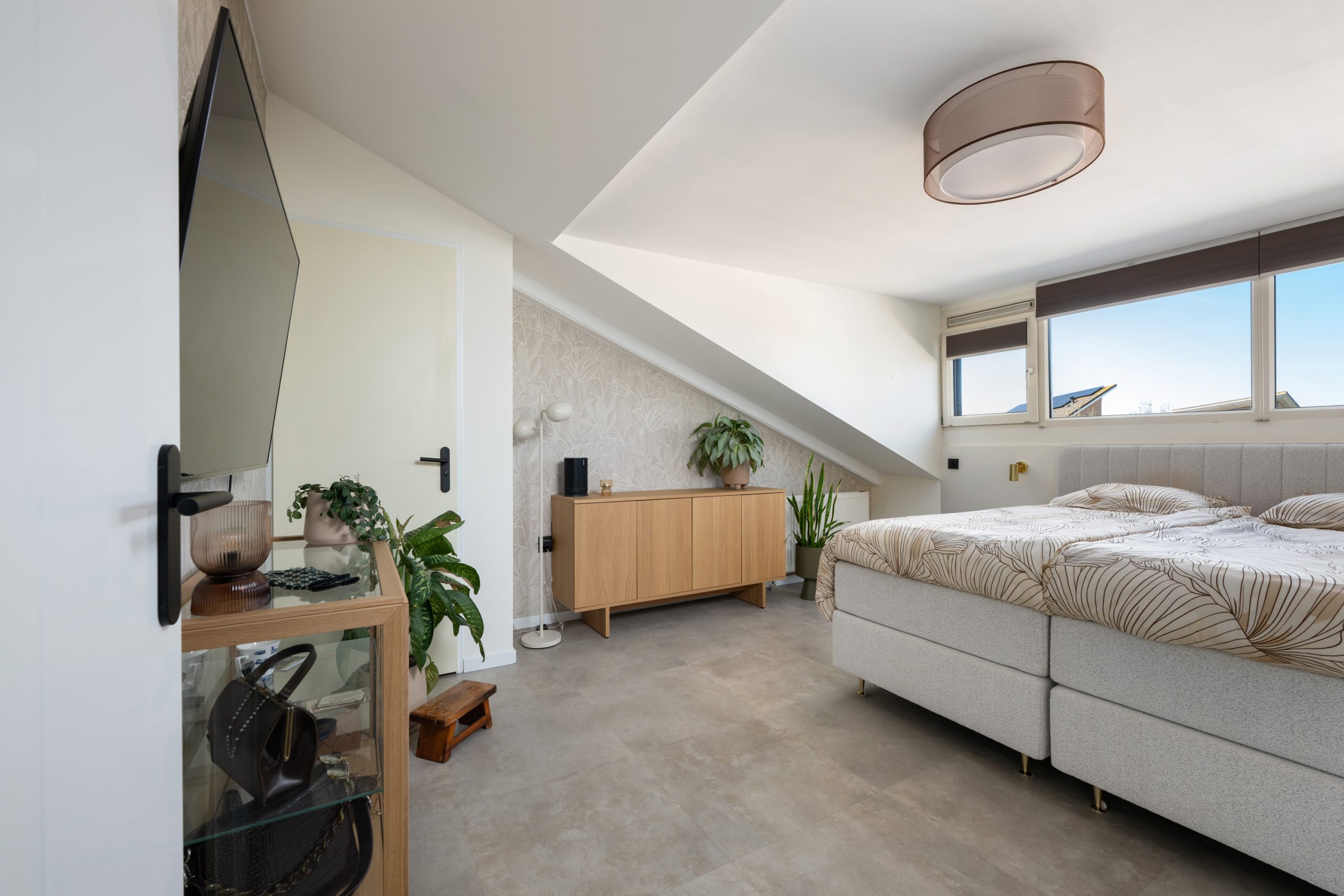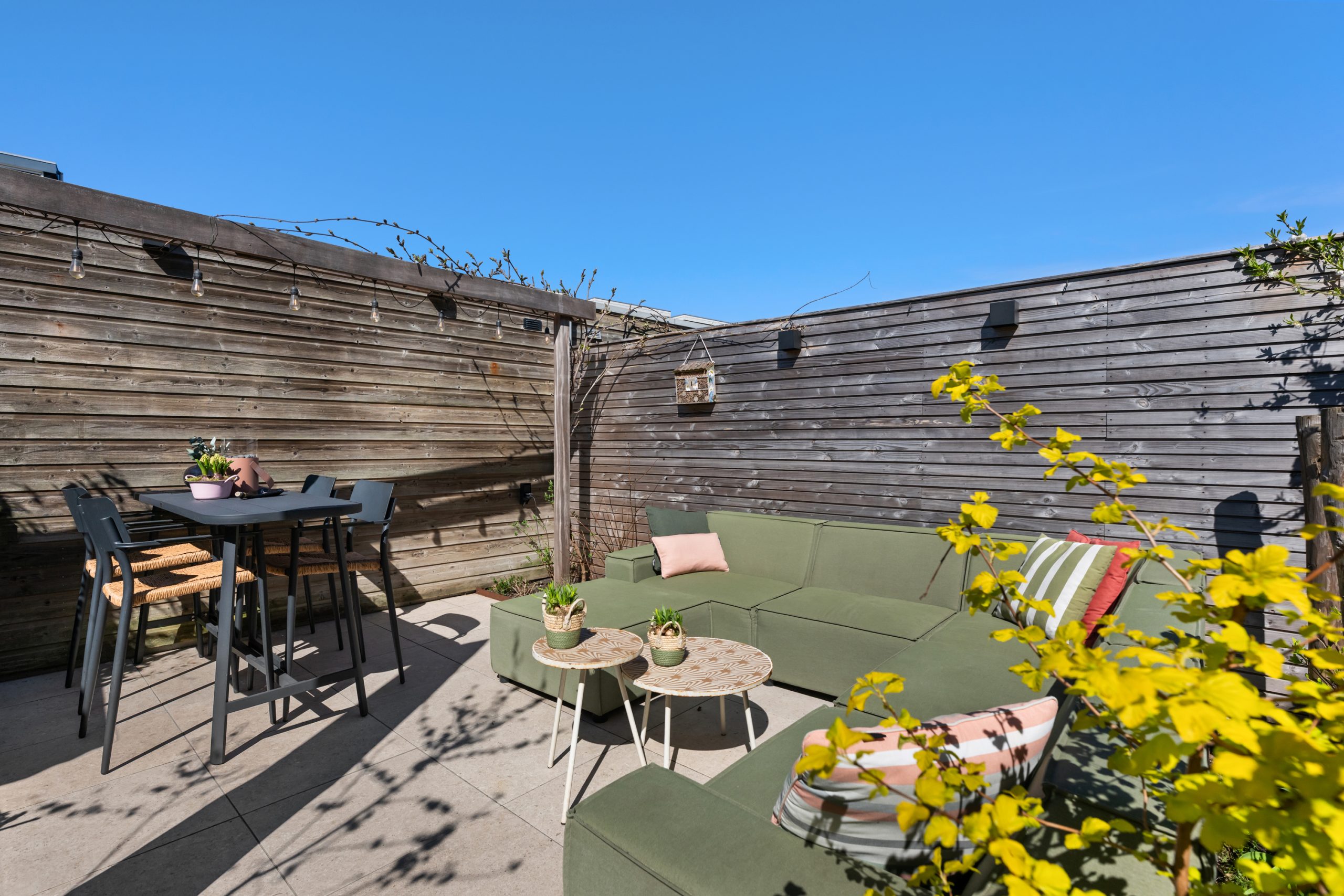 Via de brede schuifdeuren stap je de recent opnieuw aangelegde achtertuin binnen, gelegen op het zonnige noordwesten. De tuin is voorzien van onderhoudsvriendelijke keramische tegels en een strakke nieuwe schutting. Hier kun je tot laat in de avond genieten van de zon — de ideale plek voor een gezellige barbecue, diner met vrienden of een ontspannen borrel. De tuin beschikt daarnaast over een elektrisch zonnescherm, praktische berging en een achterom.
