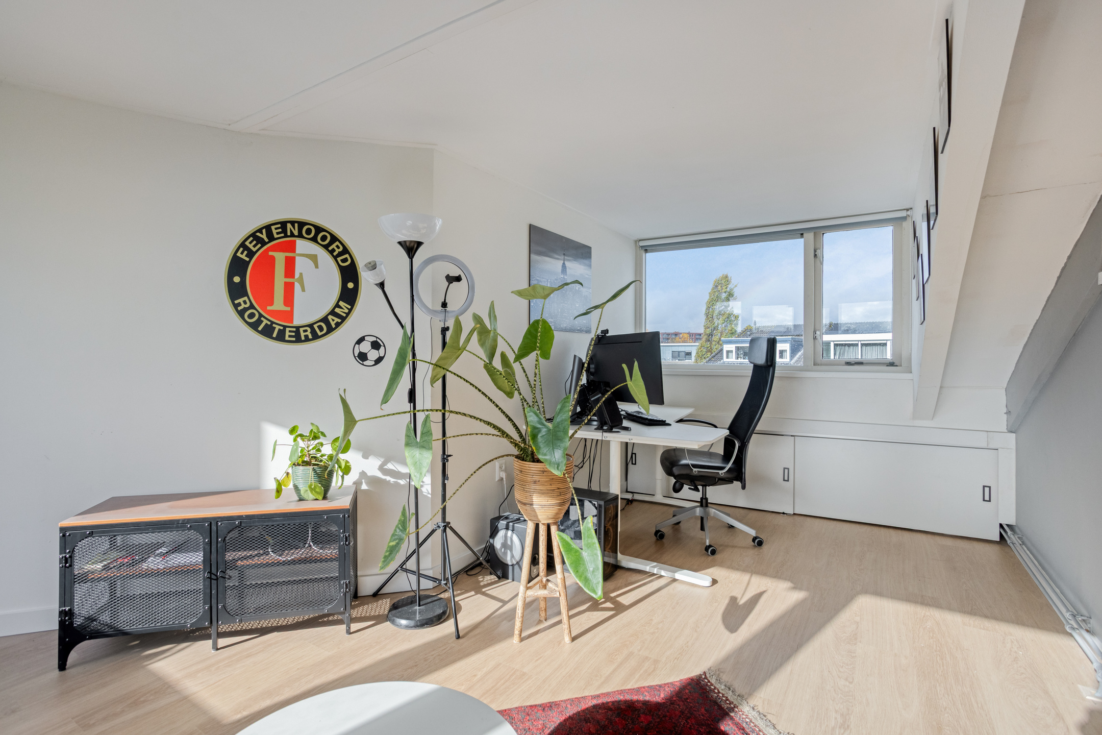 De vierde, ruime slaapkamer beschikt over knieschotten met extra bergruimte en biedt toegang tot het zonnige dakterras.