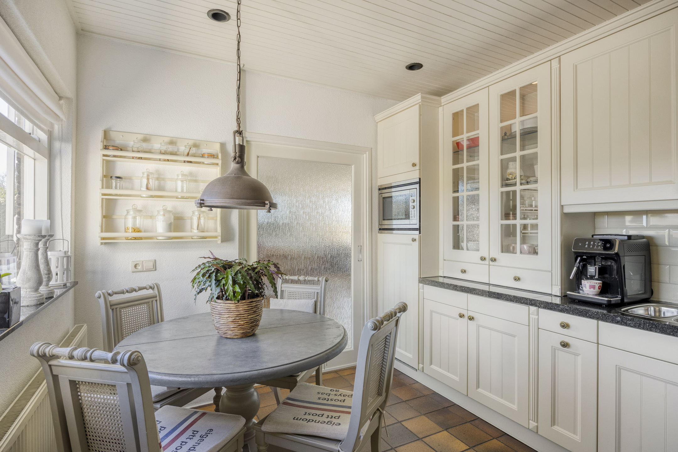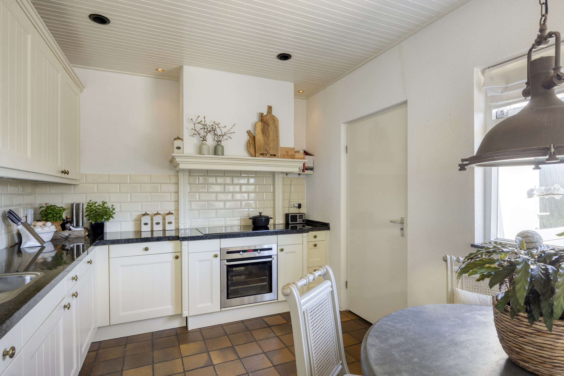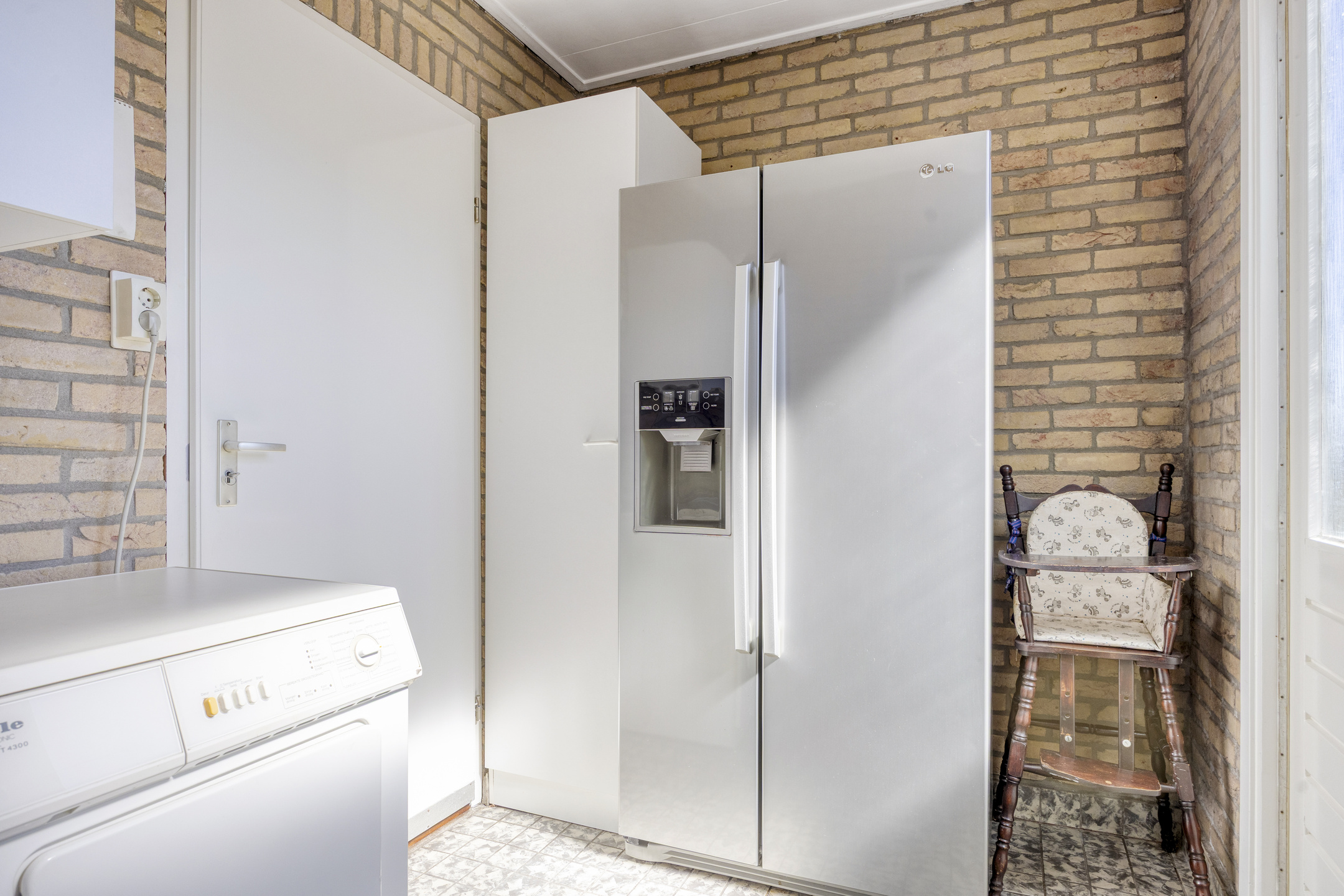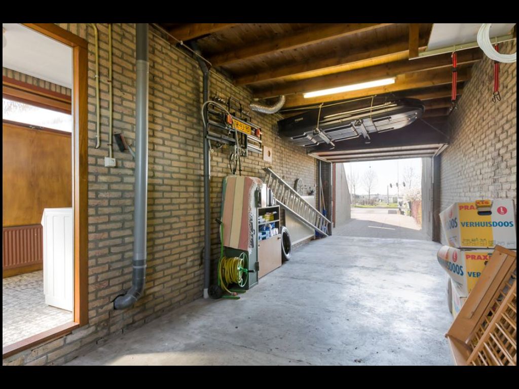 Aansluitend vind je de bijkeuken met aansluitingen voor wasmachine en droger en toegang tot de garage. Vanuit de garage is tevens een extra berging bereikbaar.