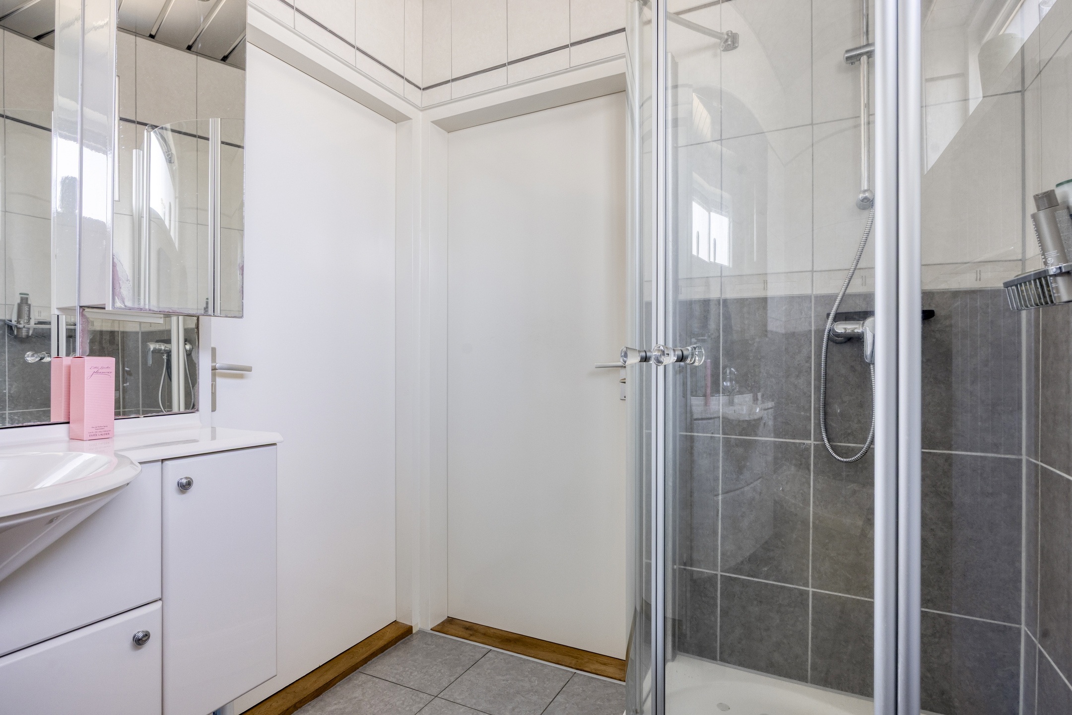 De tweede badkamer is voorzien van douche, toilet en wastafel.