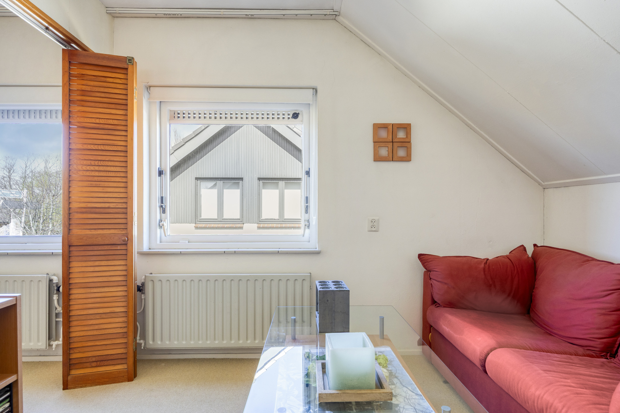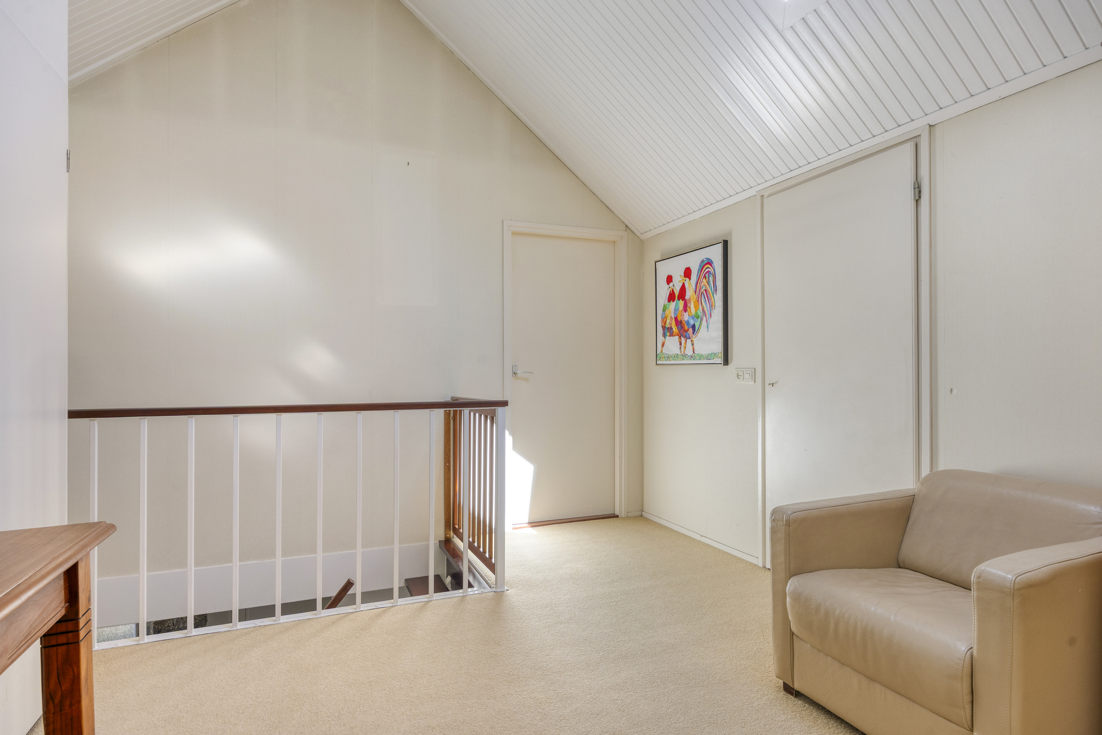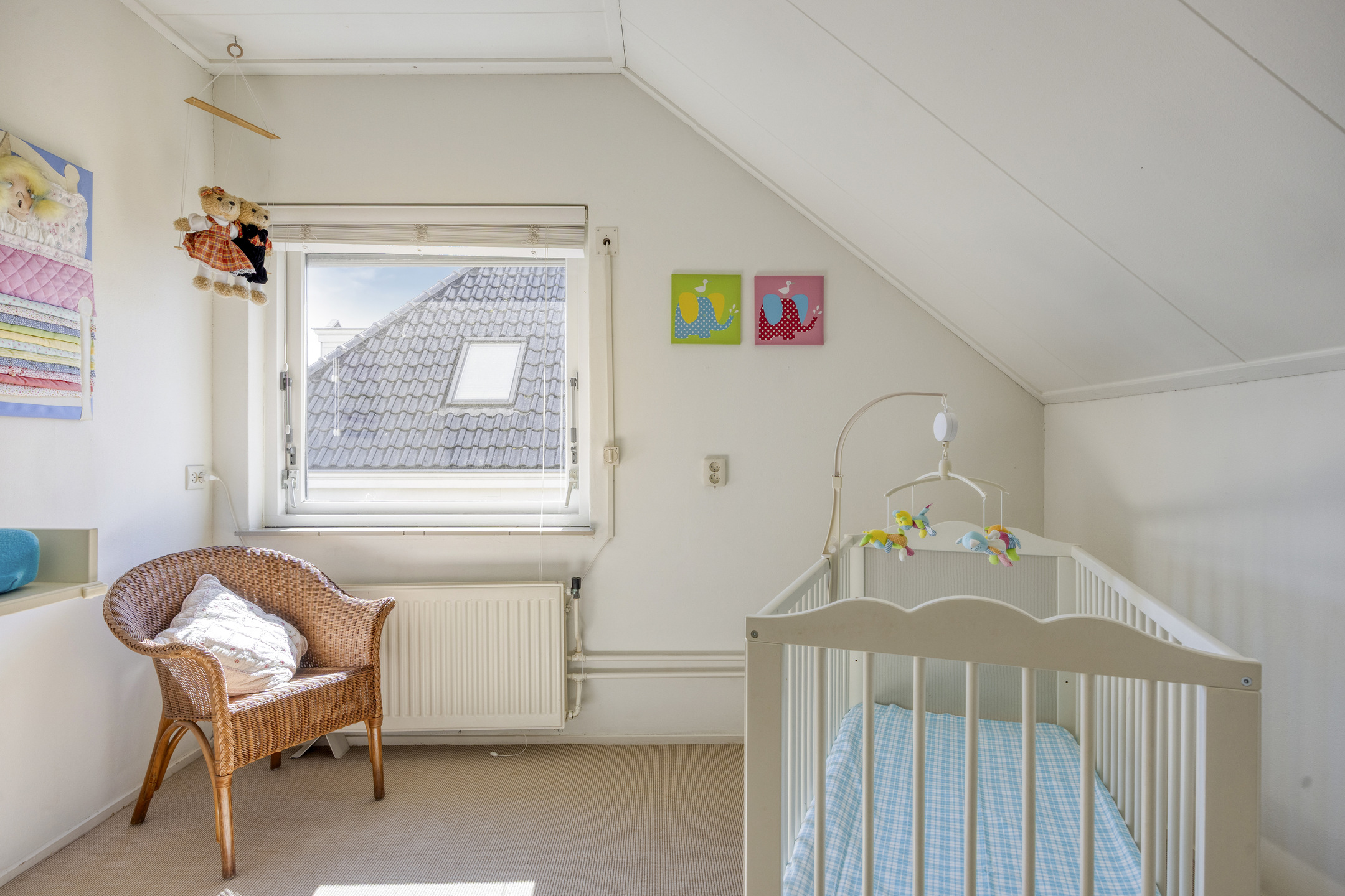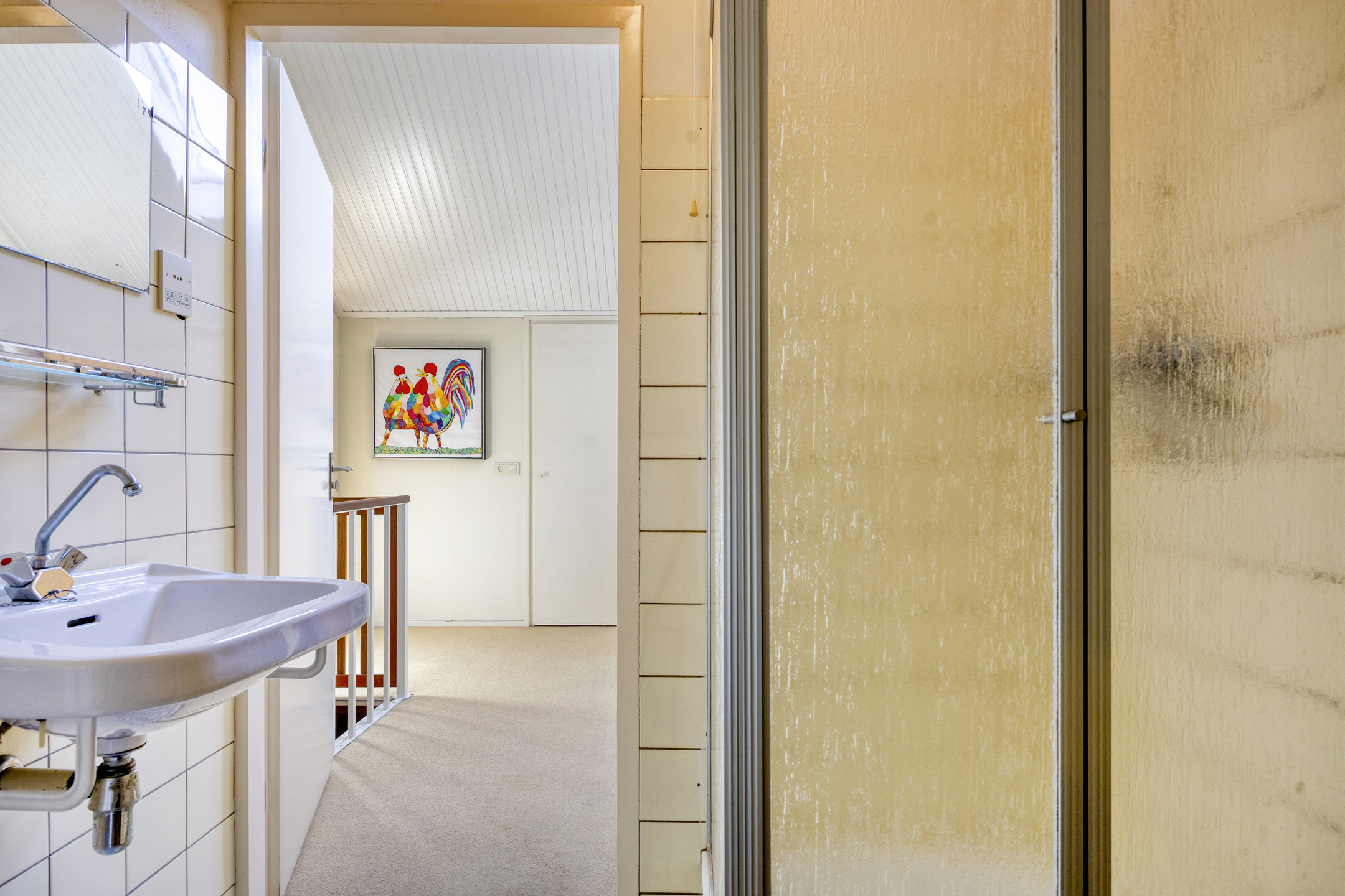 Overloop met dakraam, technische ruimte met cv-ketel (2023) en extra bergruimte.
