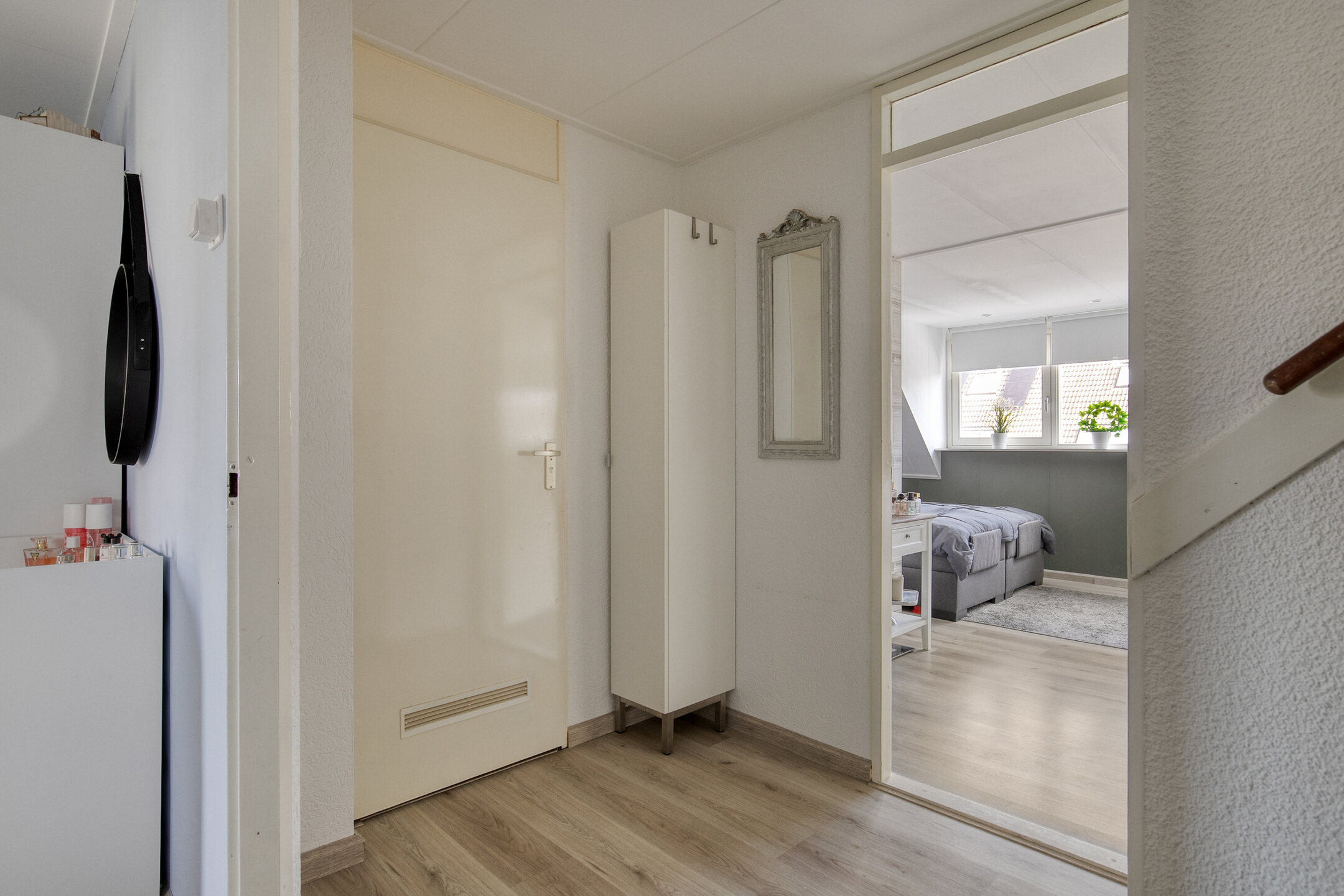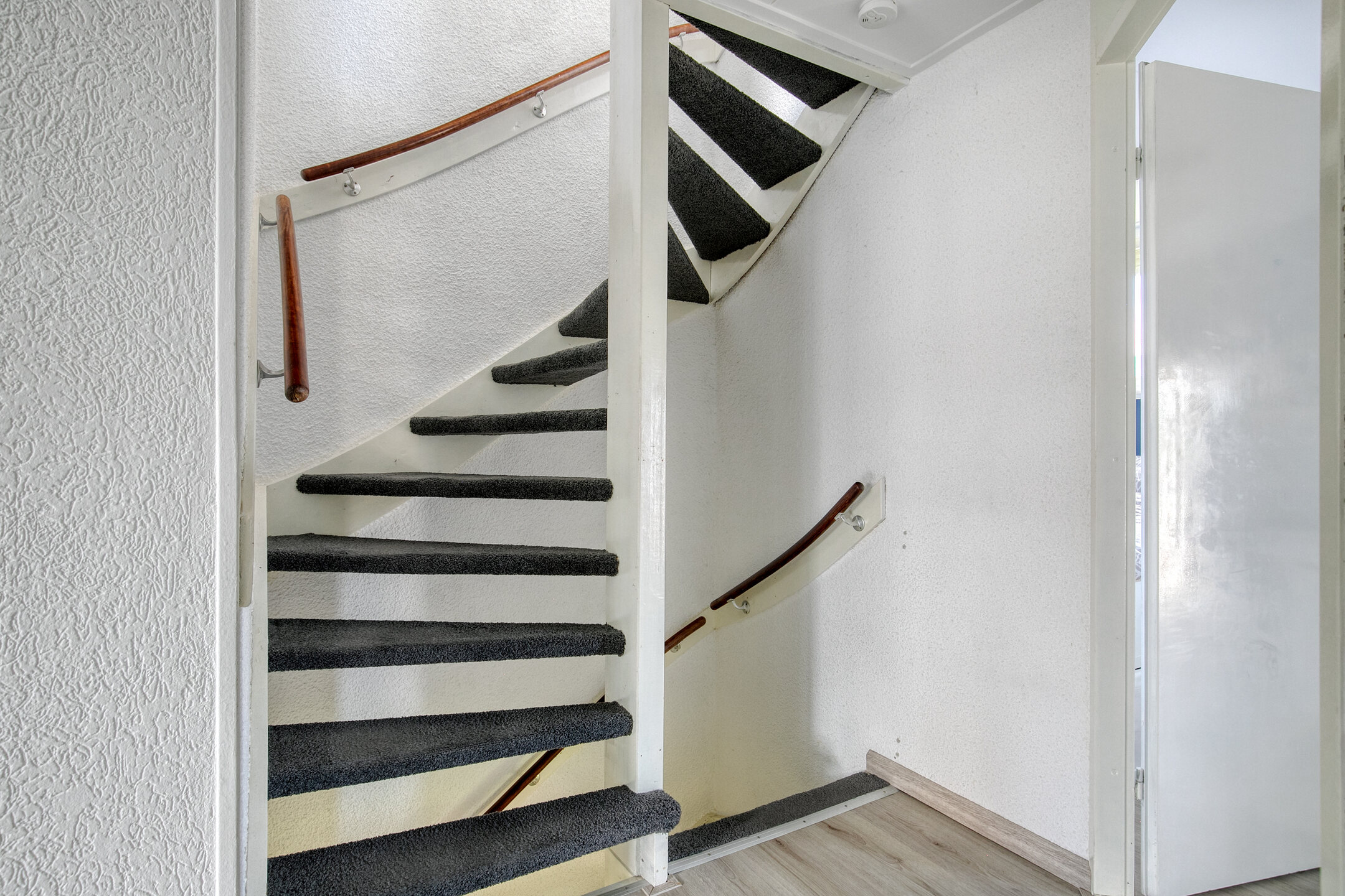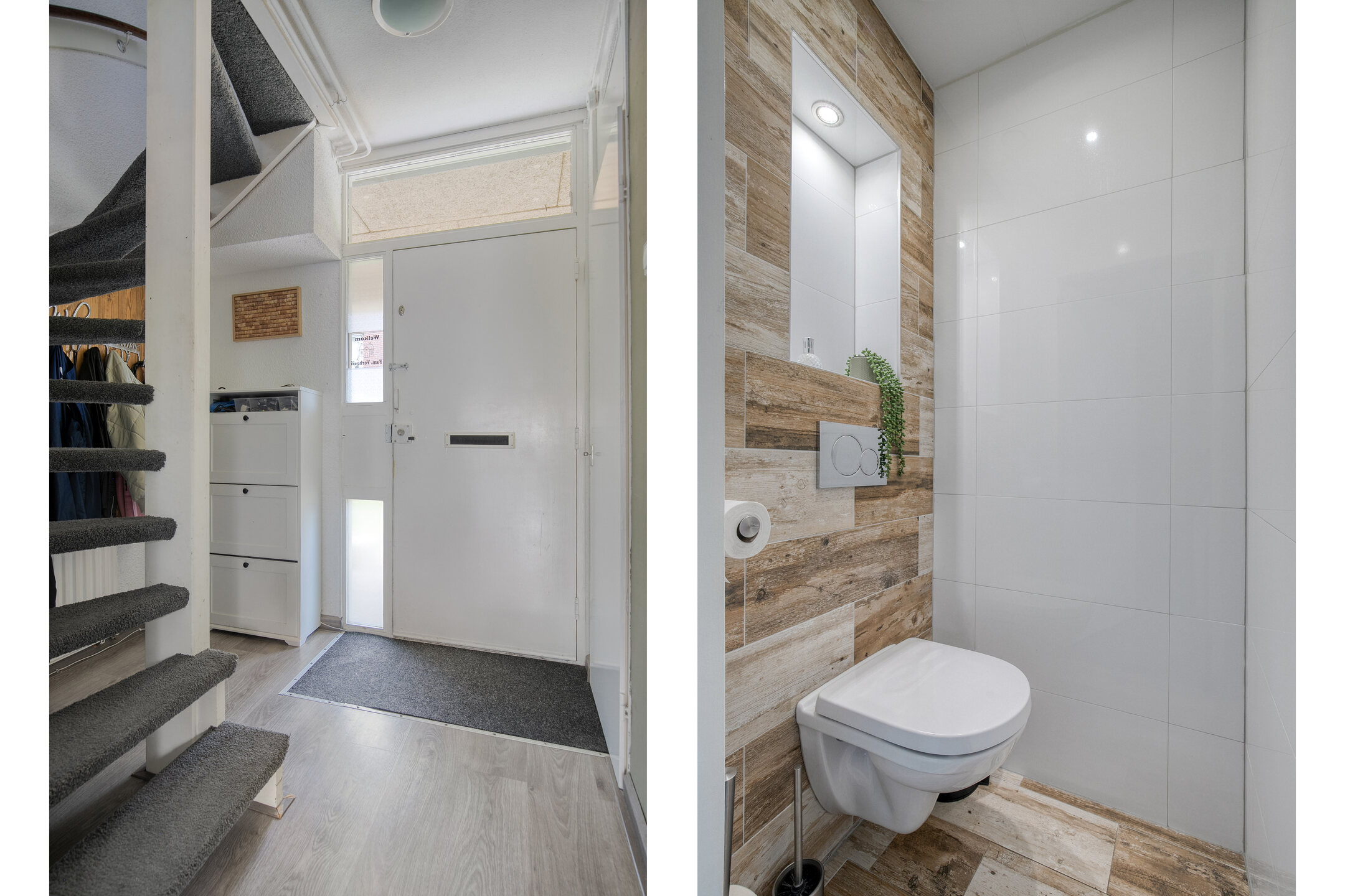 Entree, hal met meterkast, toilet en trapopgang naar de eerste verdieping. Vanuit de hal is er toegang tot de woonkamer.
