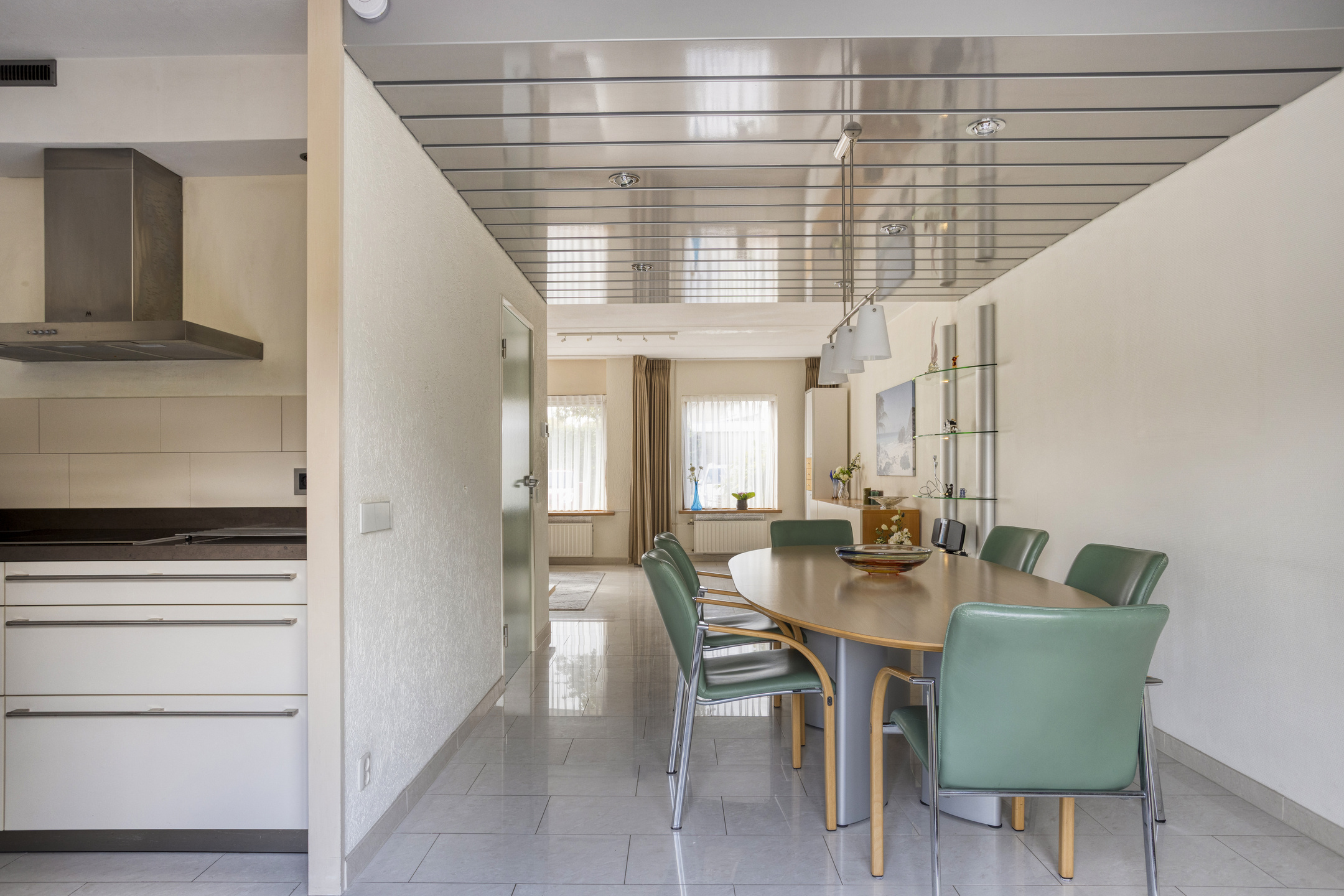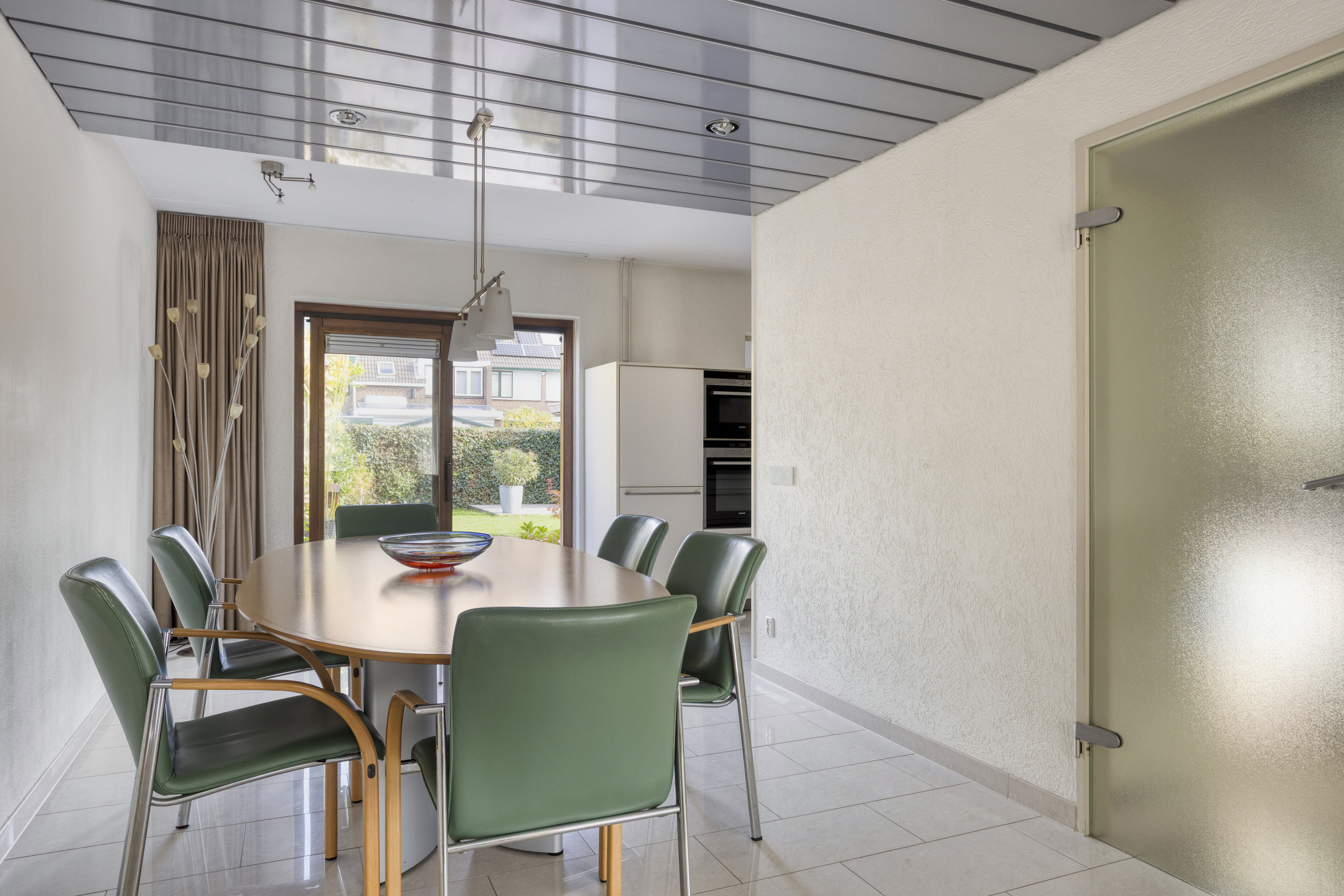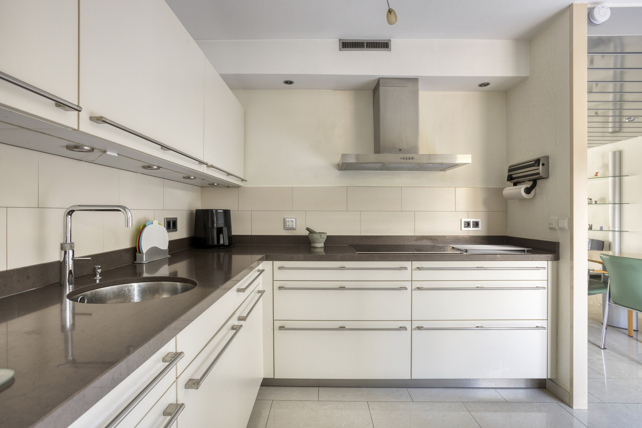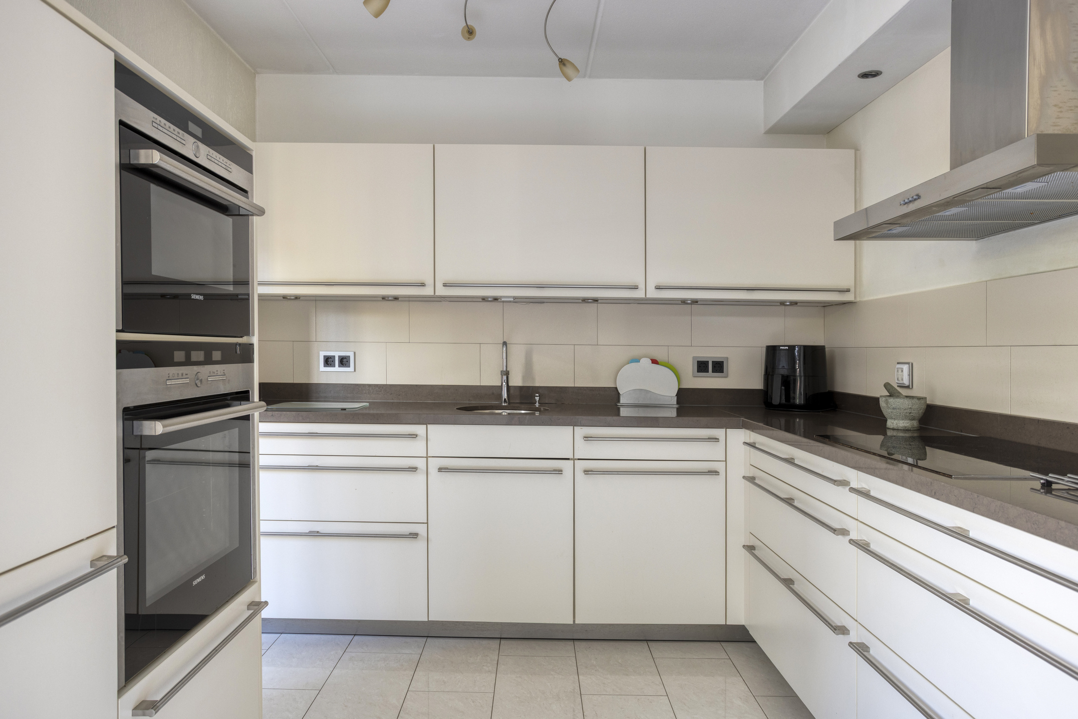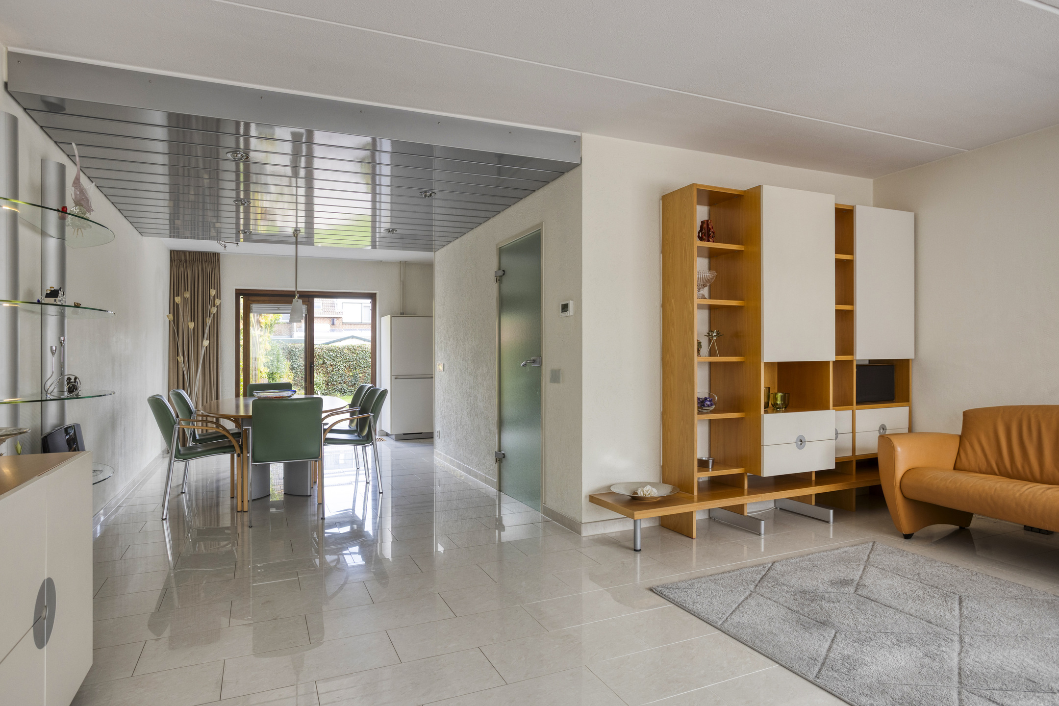 De royale woonkamer is heerlijk licht dankzij de grote raampartijen. De ruimte is voorzien van een mooie plavuizen vloer met vloerverwarming en beschikt over een zonnescreen. Aan de achterzijde van de woning bevindt zich de luxe Siematic keuken in L-opstelling met stenen aanrechtblad, uitgerust met diverse Siemens inbouwapparatuur, waaronder een combi-oven, oven, koelkast, inductiekookplaat, afzuigkap en een Quooker. Via de schuifpui bereik je de zonnige achtertuin, gelegen op het noordoosten. Achterin de tuin vind je een sfeervolle overkapping met berging. Aan de garage bevindt zich bovendien nog een extra berging voor het stallen van fietsen.