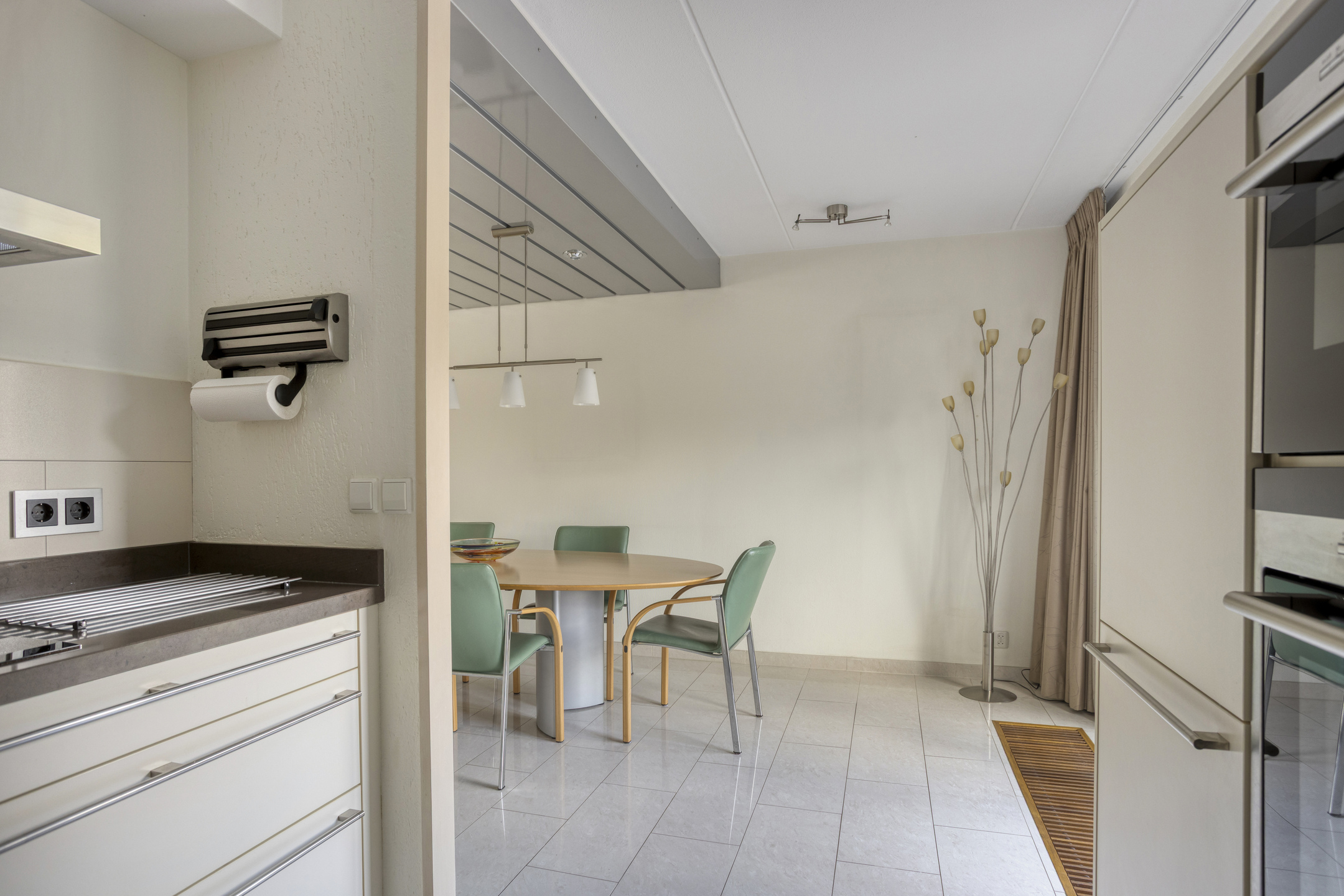 Vanuit de keuken is er toegang tot de bijkeuken, met aansluitingen voor wasmachine en droger, en de opstelplaats van de cv-ketel. Vanuit hier is de inpandige garage bereikbaar.