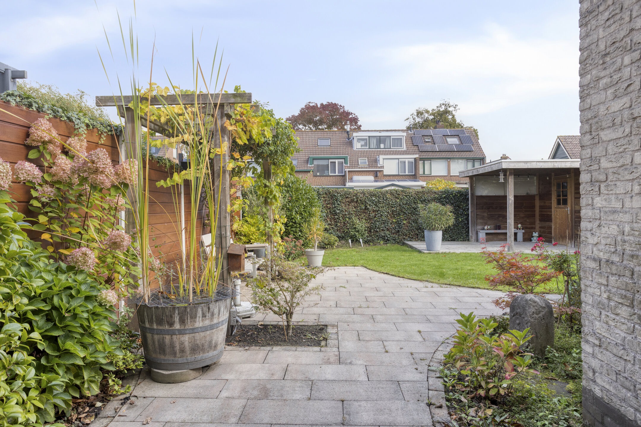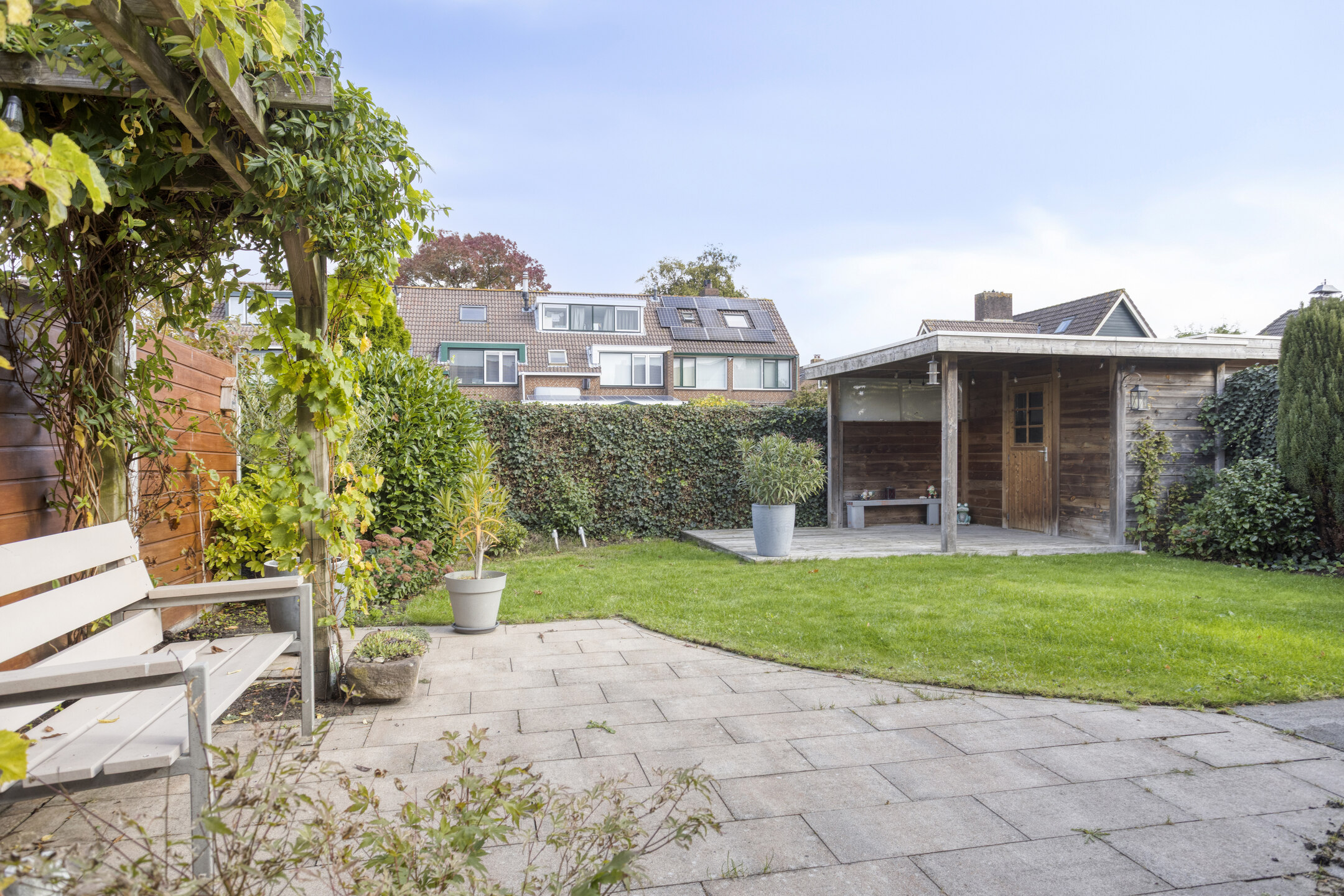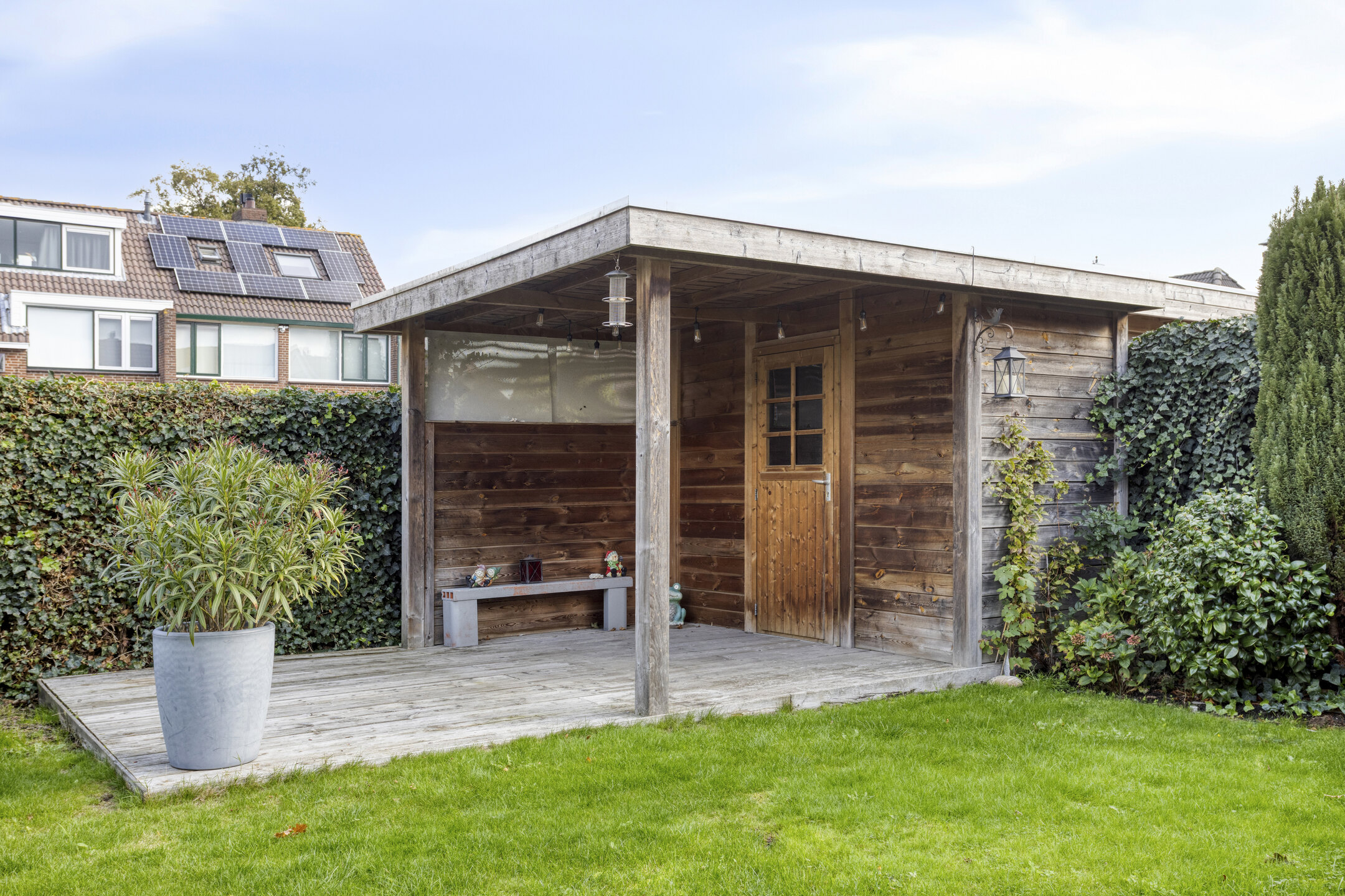 - Fraai aangelegde zonnige tuin met overkapping en berging