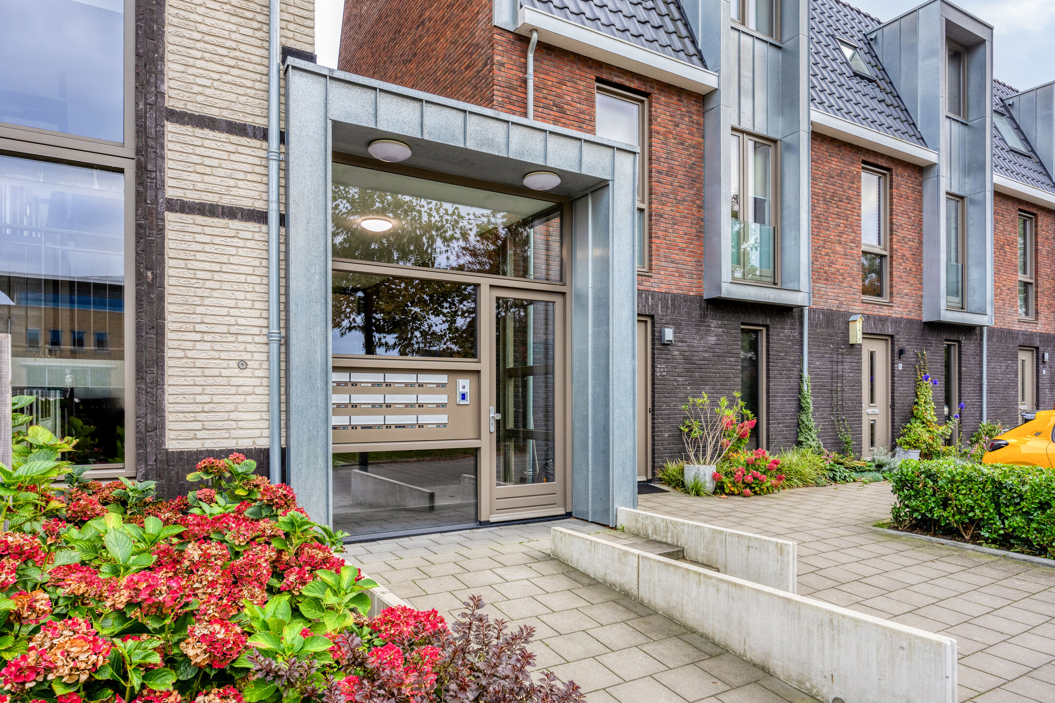 Verzorgde afgesloten entree met toegang tot het trappenhuis, de lift, het binnenterrein met parkeerplaatsen en bergingen.