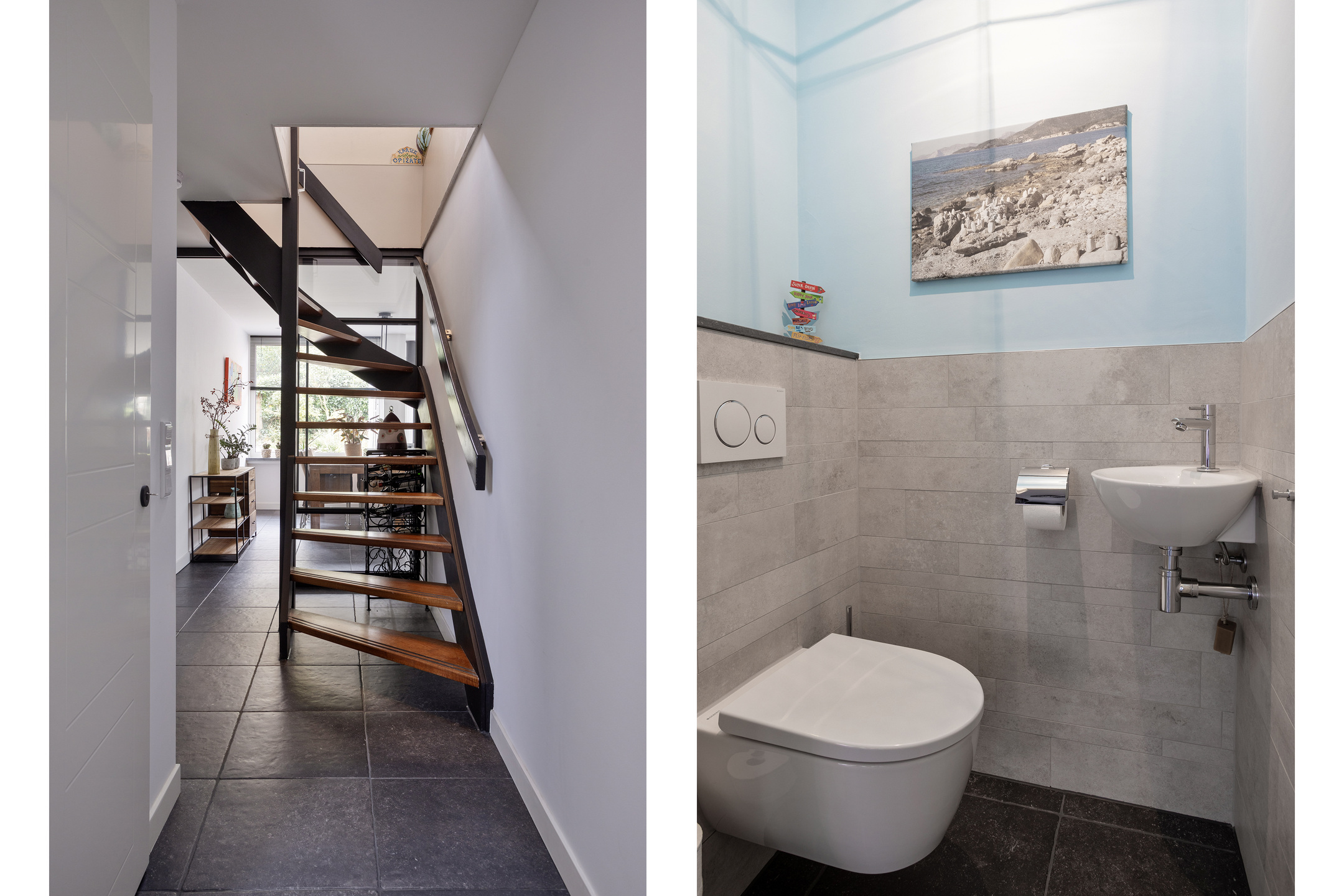 Entree/hal met toilet, aparte wasruimte met aansluitingen voor wasmachine en vloerverwarming, trapopgang naar de eerste verdieping en toegang tot alle vertrekken.