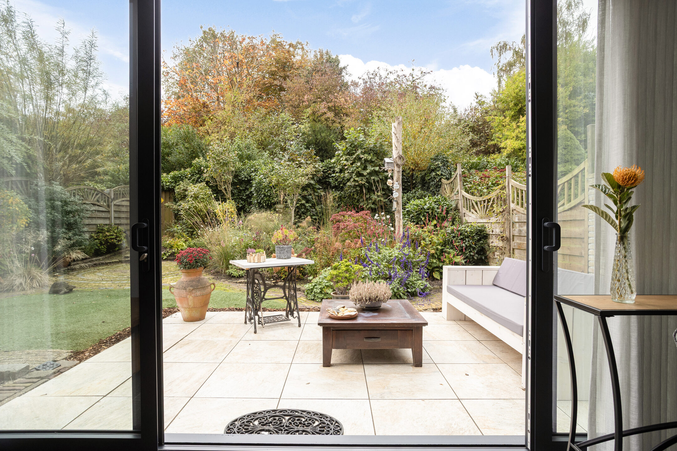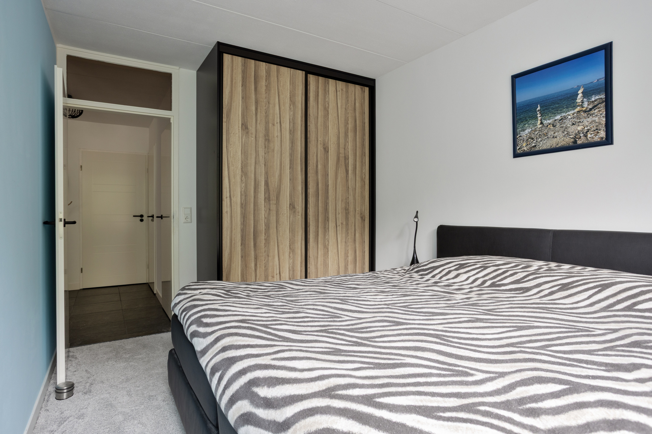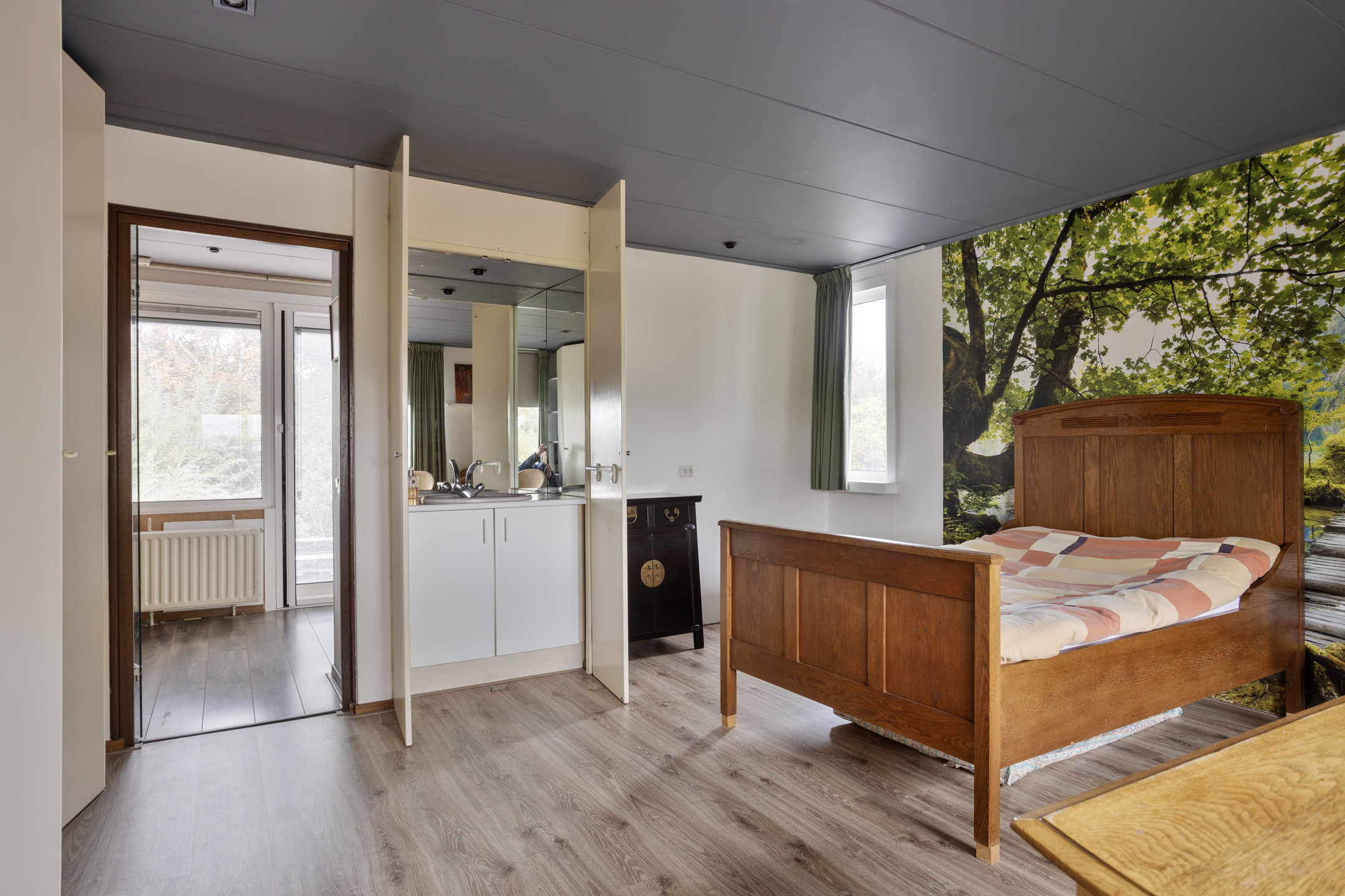 De hoofdslaapkamer bevindt zich aan de achterzijde en beschikt over vaste kasten en uitzicht op de tuin.