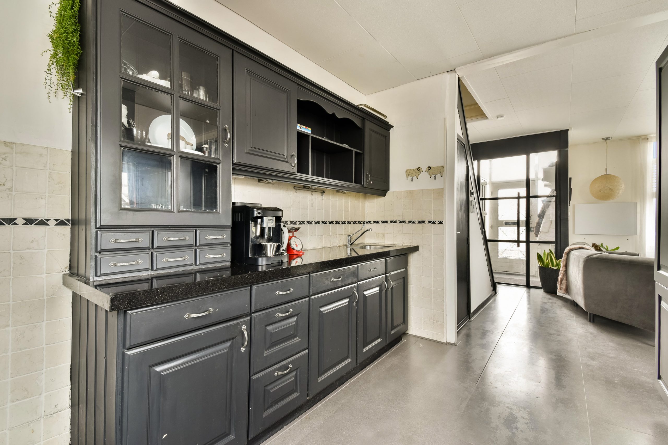 Vanuit de hal heb je toegang tot de woonkeuken met aansluitend de woonkamer, de toiletruimte en via de schuifpui tot het geweldige en zonnige dakterras (ZW). De grote eetkeuken is voorzien van een kookeiland, diverse luxe inbouwapparatuur en volop opbergmogelijkheden.
