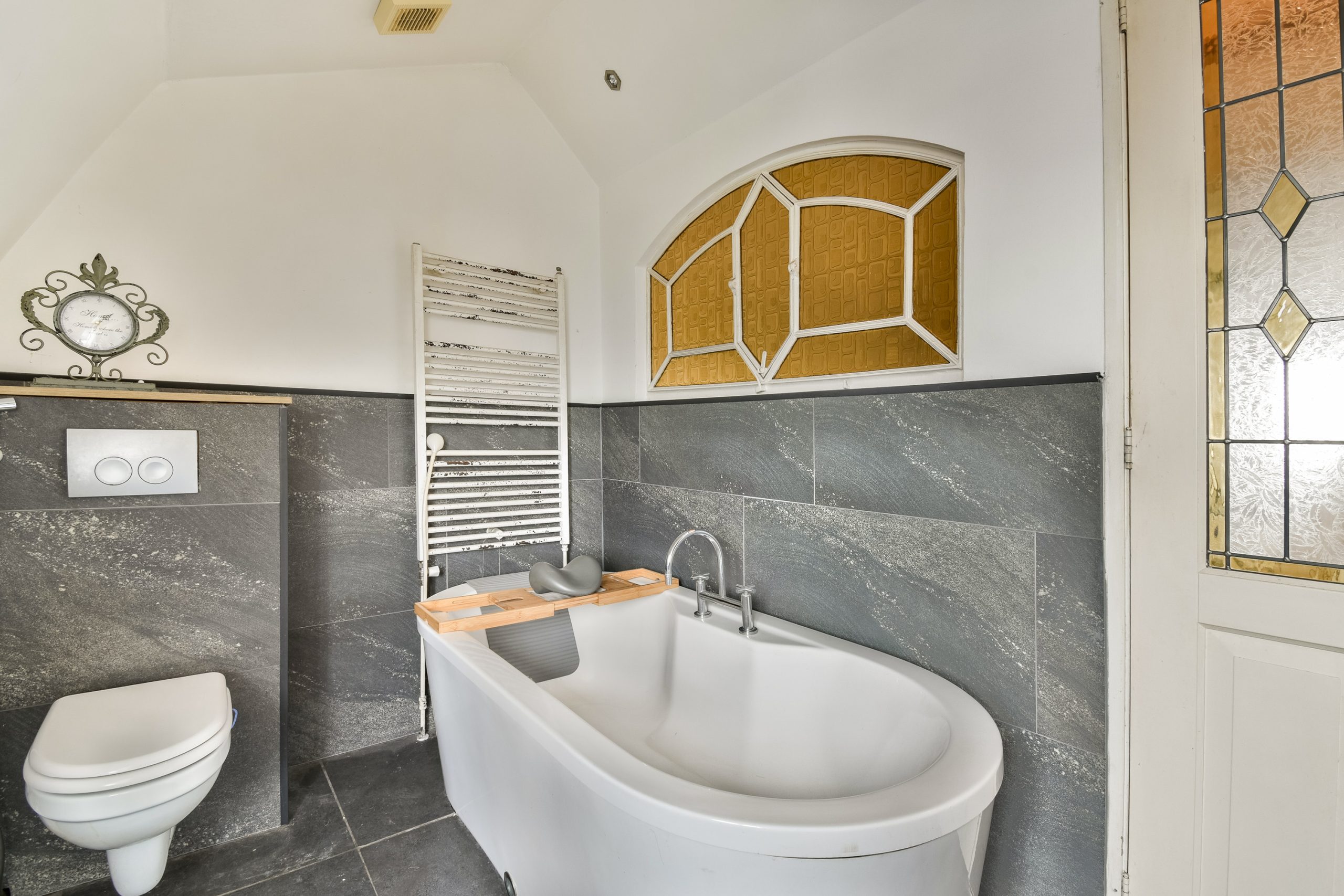 Op deze etage vind je een overloop met toegang tot de vliering, twee slaapkamers en een ruime badkamer. De badkamer is voorzien van een dakkapel, wastafel, separate douche, ligbad en een tweede toilet.