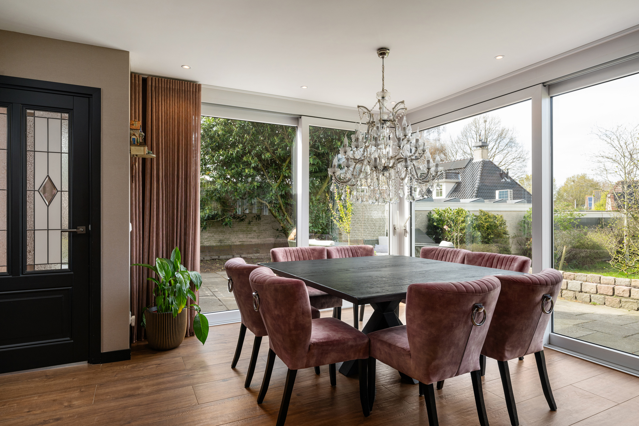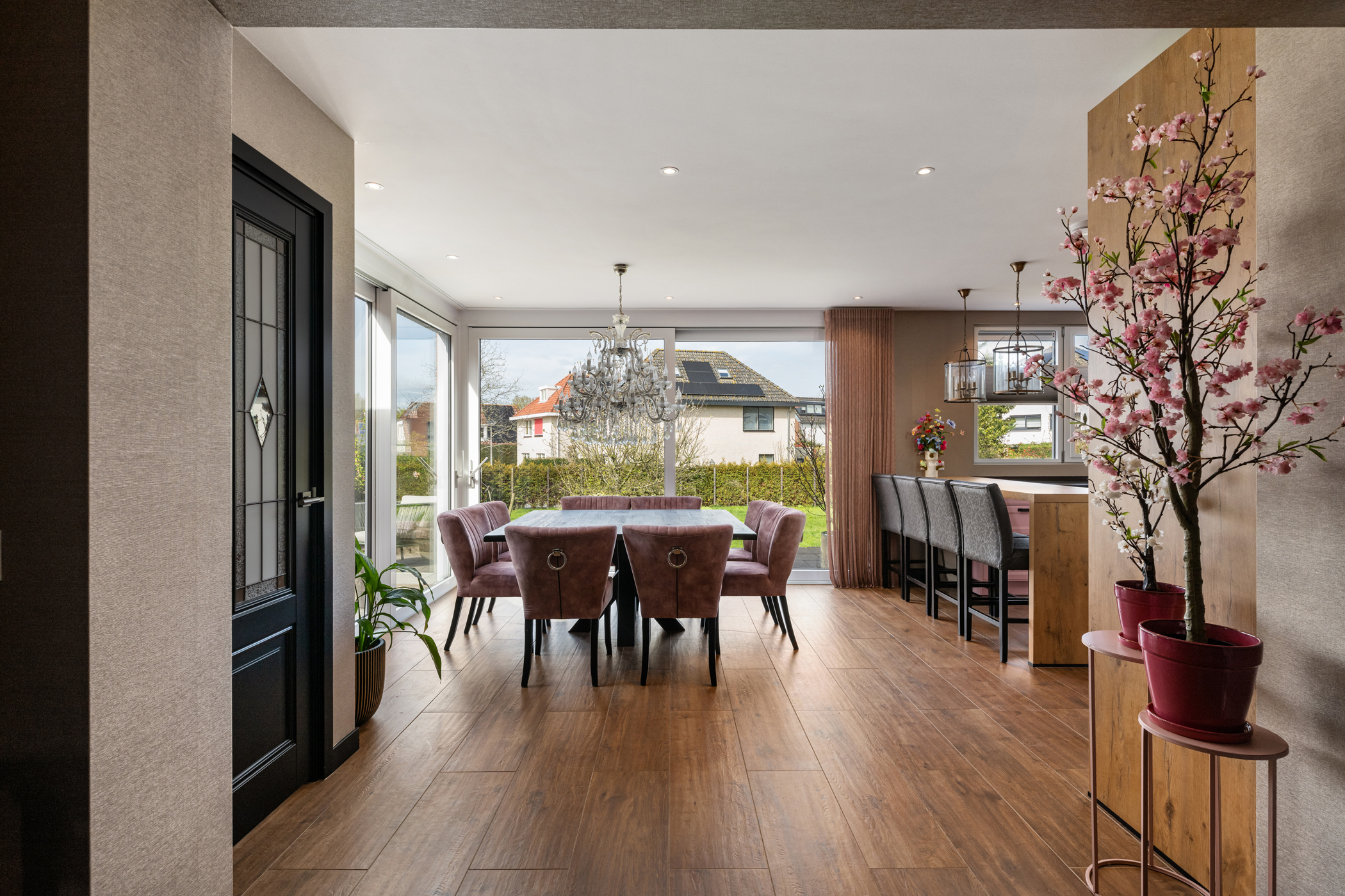 De royale woonkamer aan de voorzijde is ingedeeld in een sfeervolle zit- en eetkamer, met veel lichtinval en een warme uitstraling. Aan de achterzijde bevindt zich de zeer ruime woonkeuken, uitgevoerd met hoogwaardige inbouwapparatuur, waaronder een groot gasfornuis, twee koelkasten, twee vaatwassers, twee combi-ovens, twee stoomovens en een Quooker. Ideaal voor liefhebbers van koken en gastvrijheid.