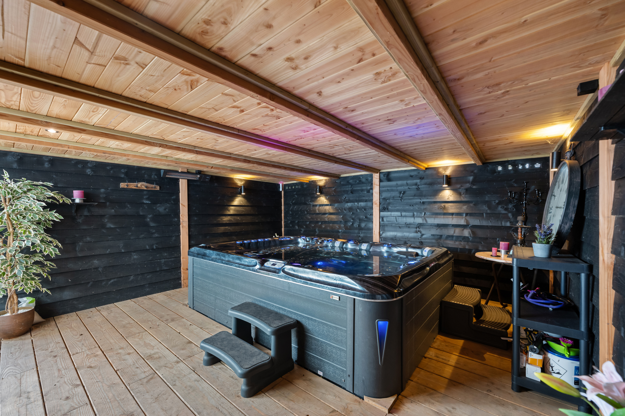 De tuin beschikt over een overkapping met jacuzzi en biedt volop mogelijkheden voor verdere invulling, zoals het realiseren van een zwembad. Daarnaast is de tuin afsluitbaar middels een hekwerk, wat bijdraagt aan het gevoel van veiligheid en privacy.