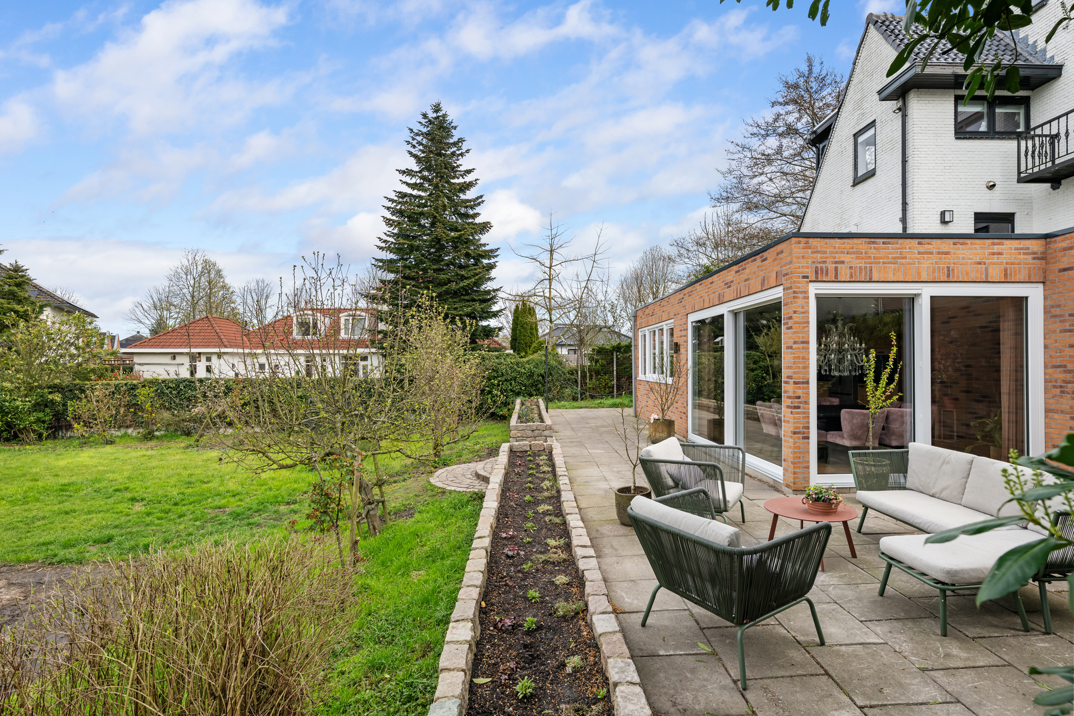 De zeer royale tuin biedt een oase van rust en privacy. Dankzij de gunstige ligging is er op elk moment van de dag zon te vinden.