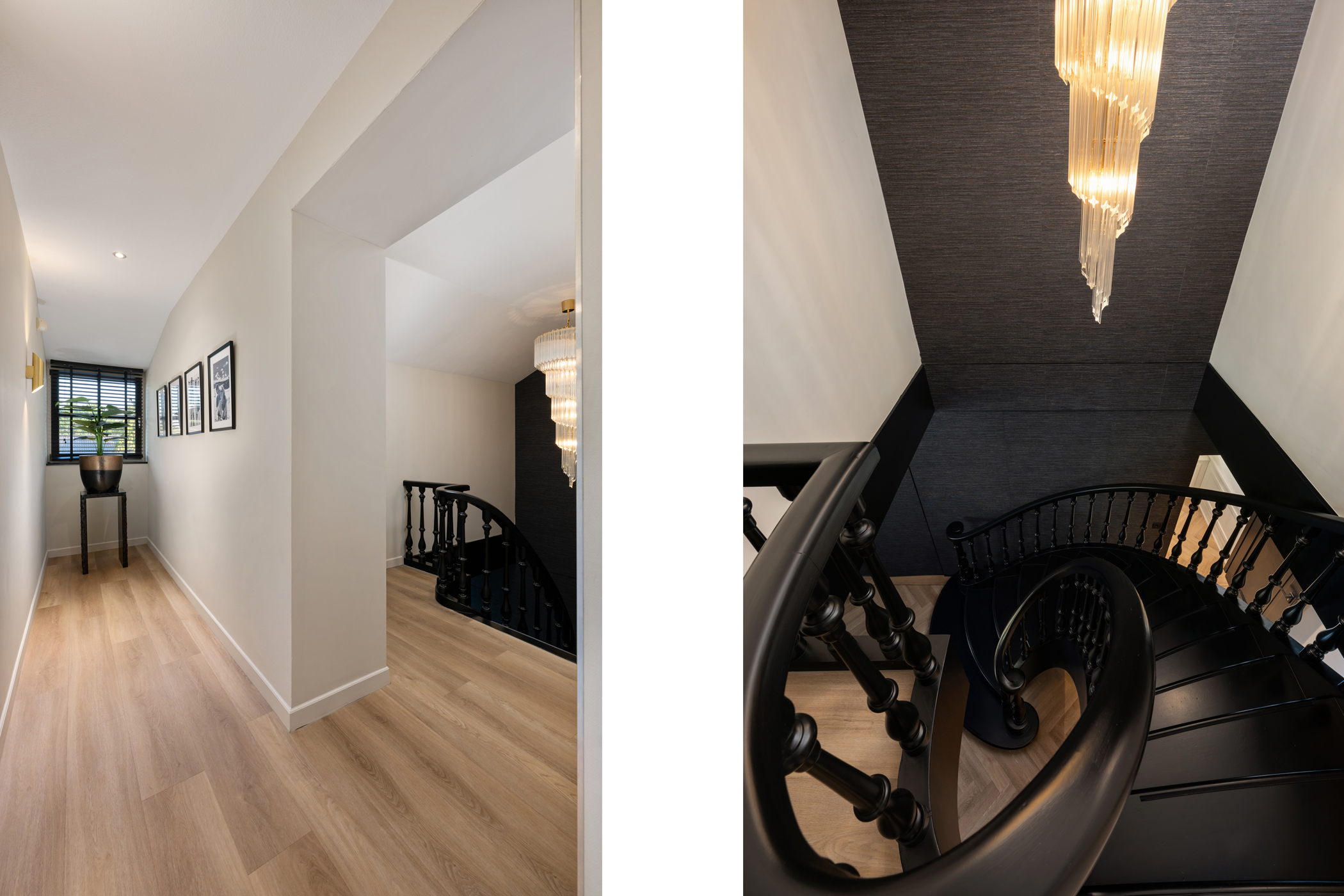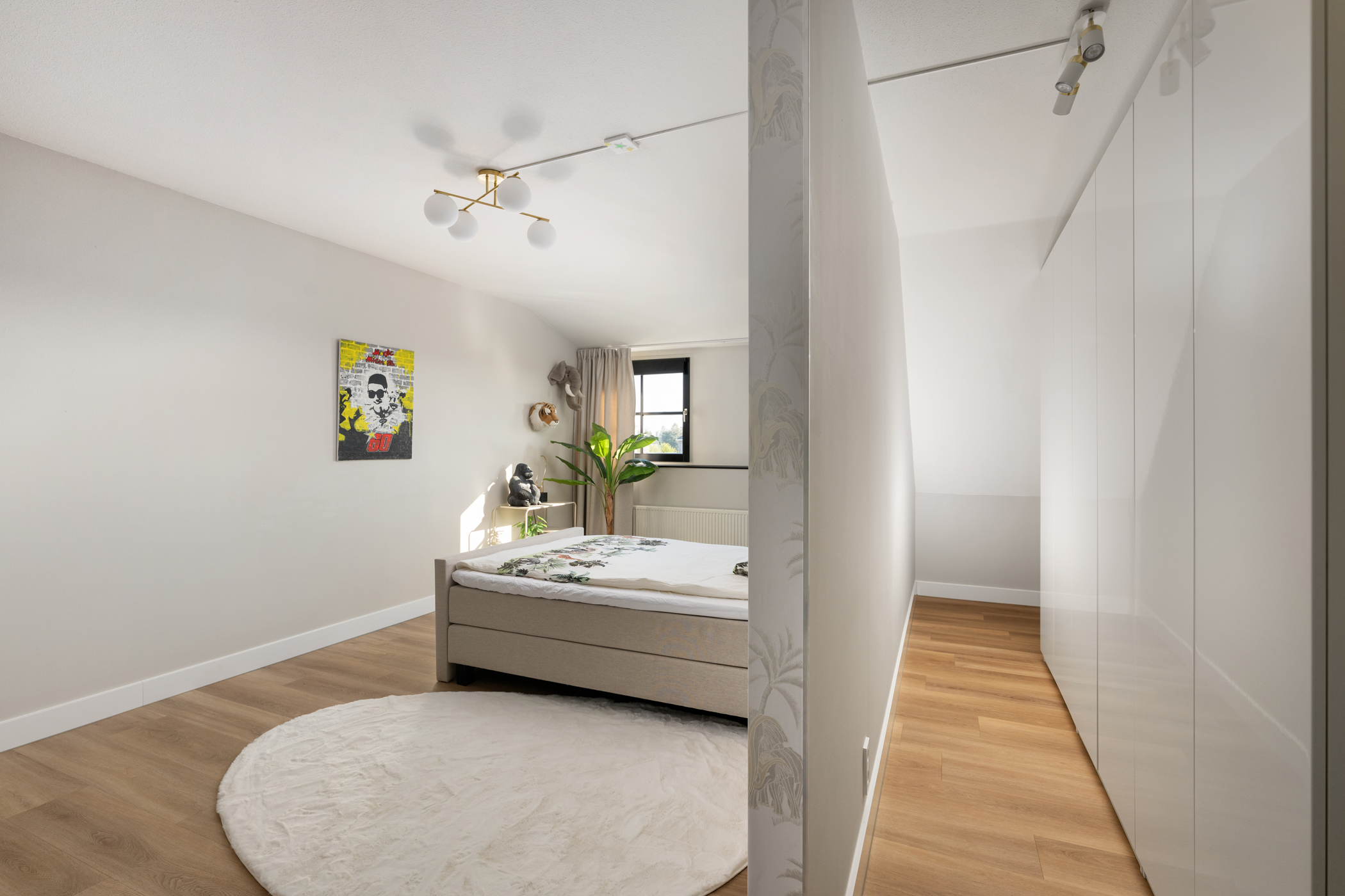 Ruime overloop met toegang tot de berging en alle overige vertrekken.