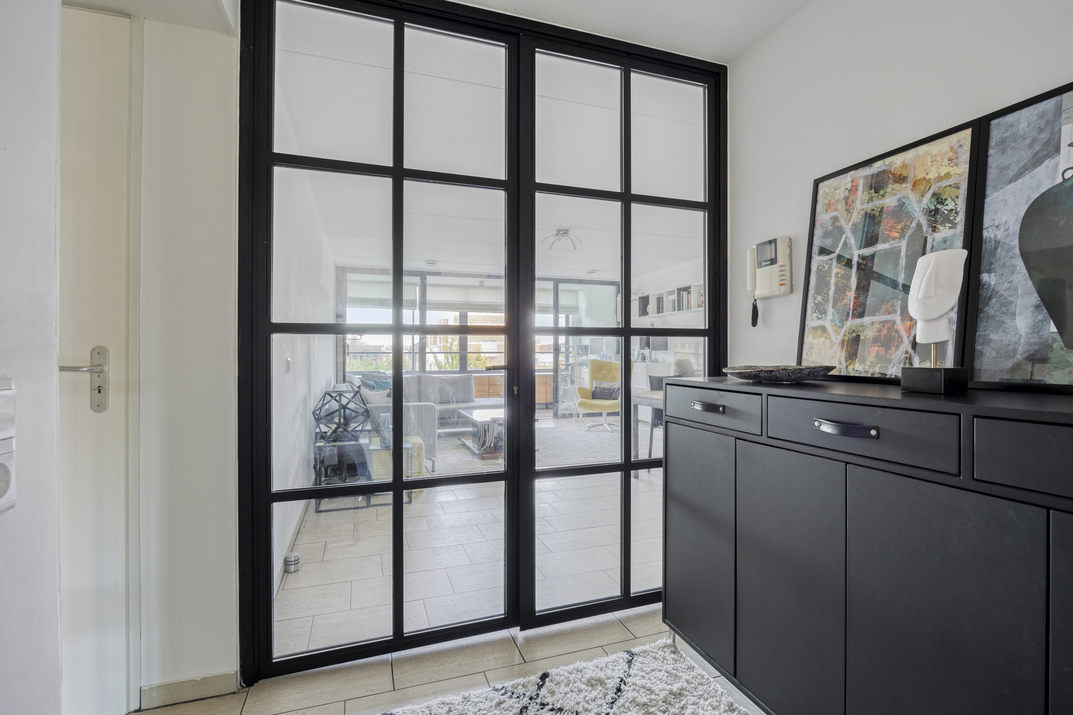 Afgesloten, keurige entree met bellentableau, intercom, brievenbussen, lift en trappenhuis. Vanuit hier toegang tot de parkeergarage en bergingen.