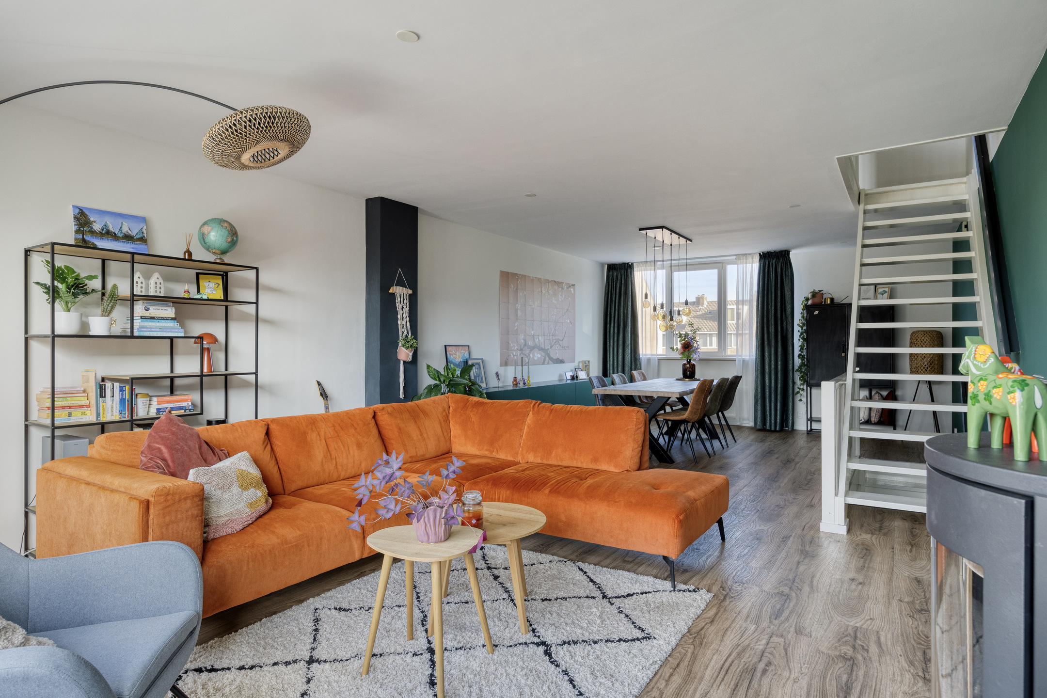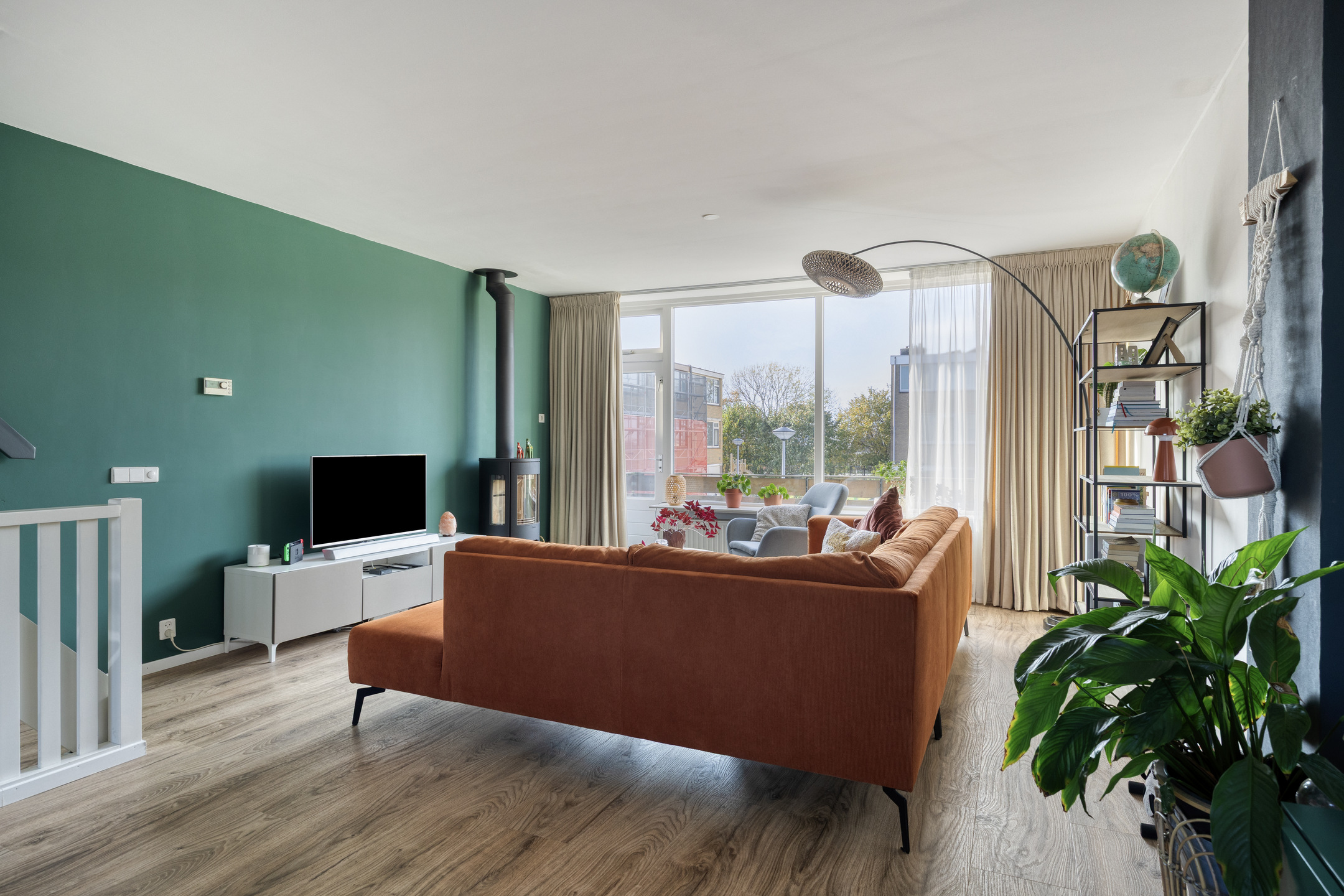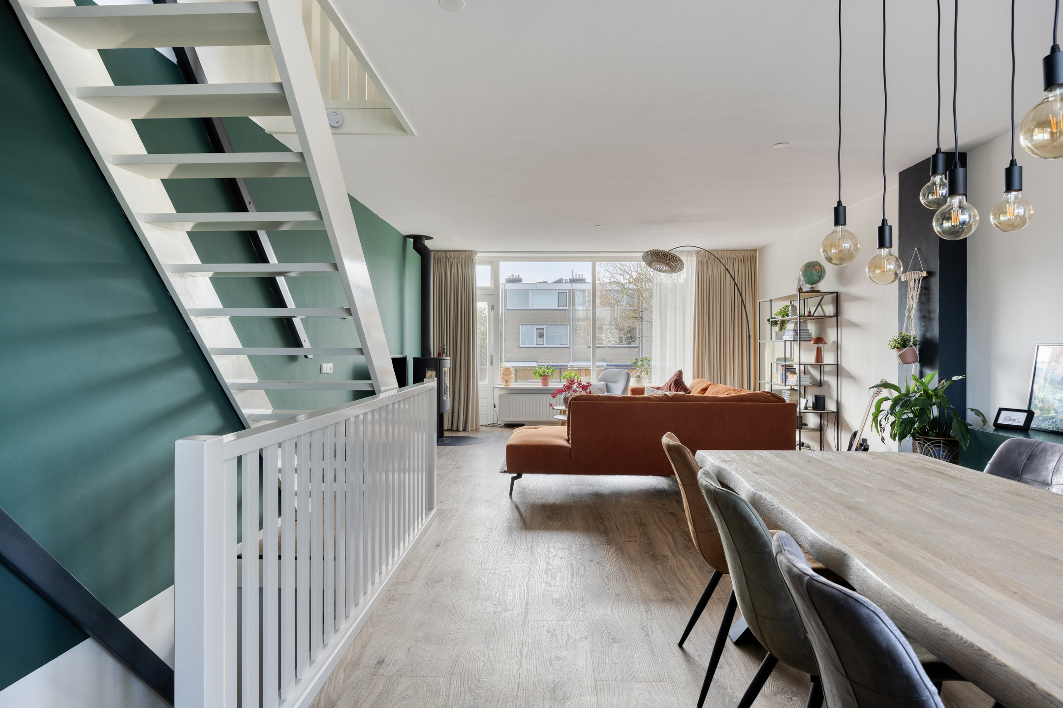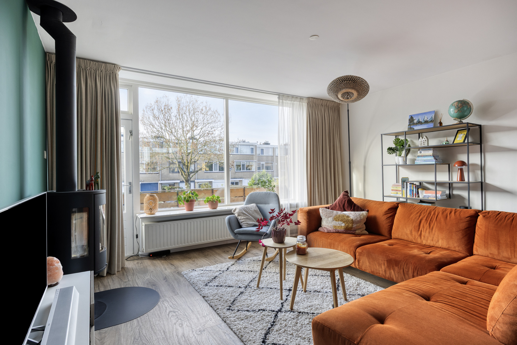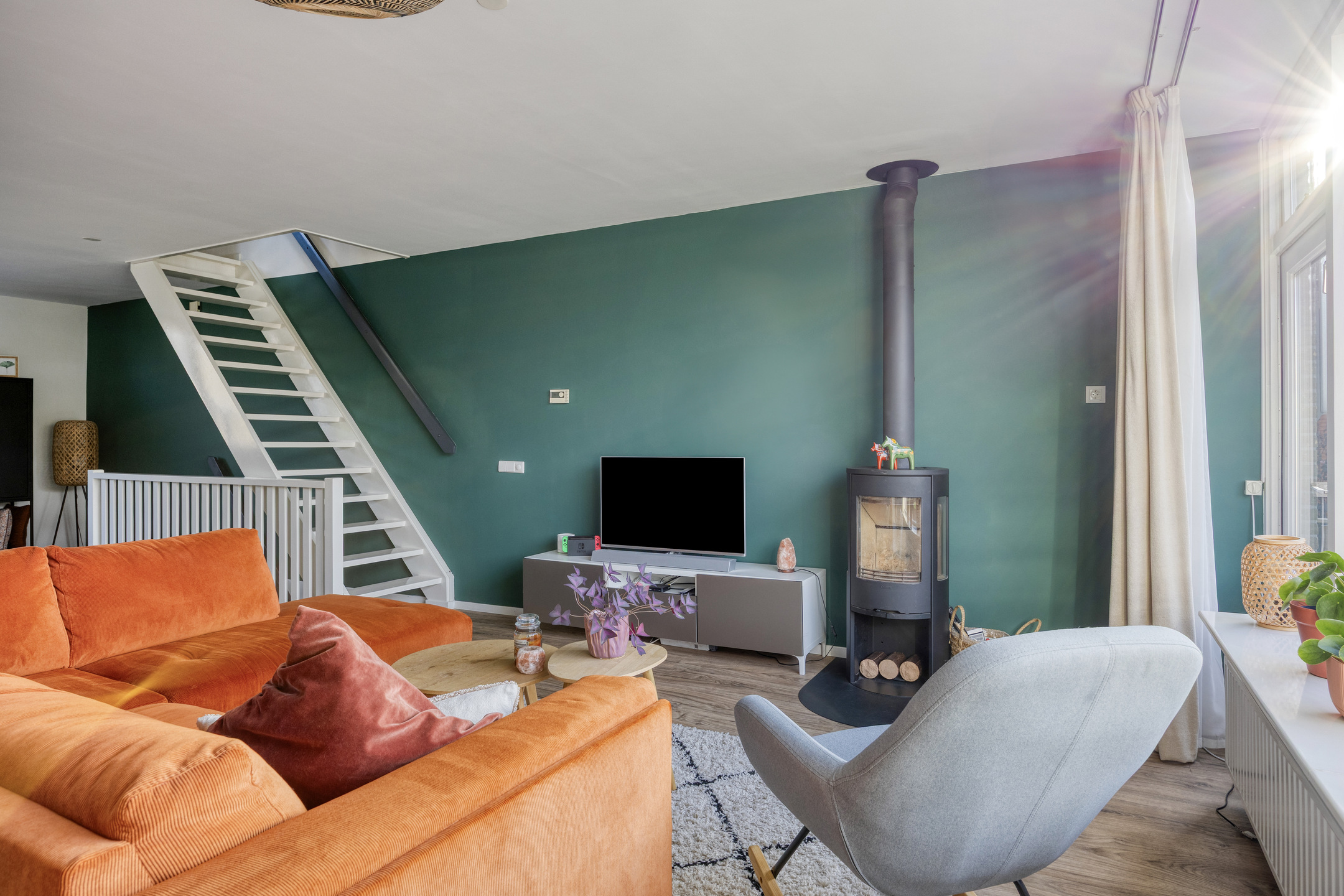- Ruime woonkamer met houtkachel