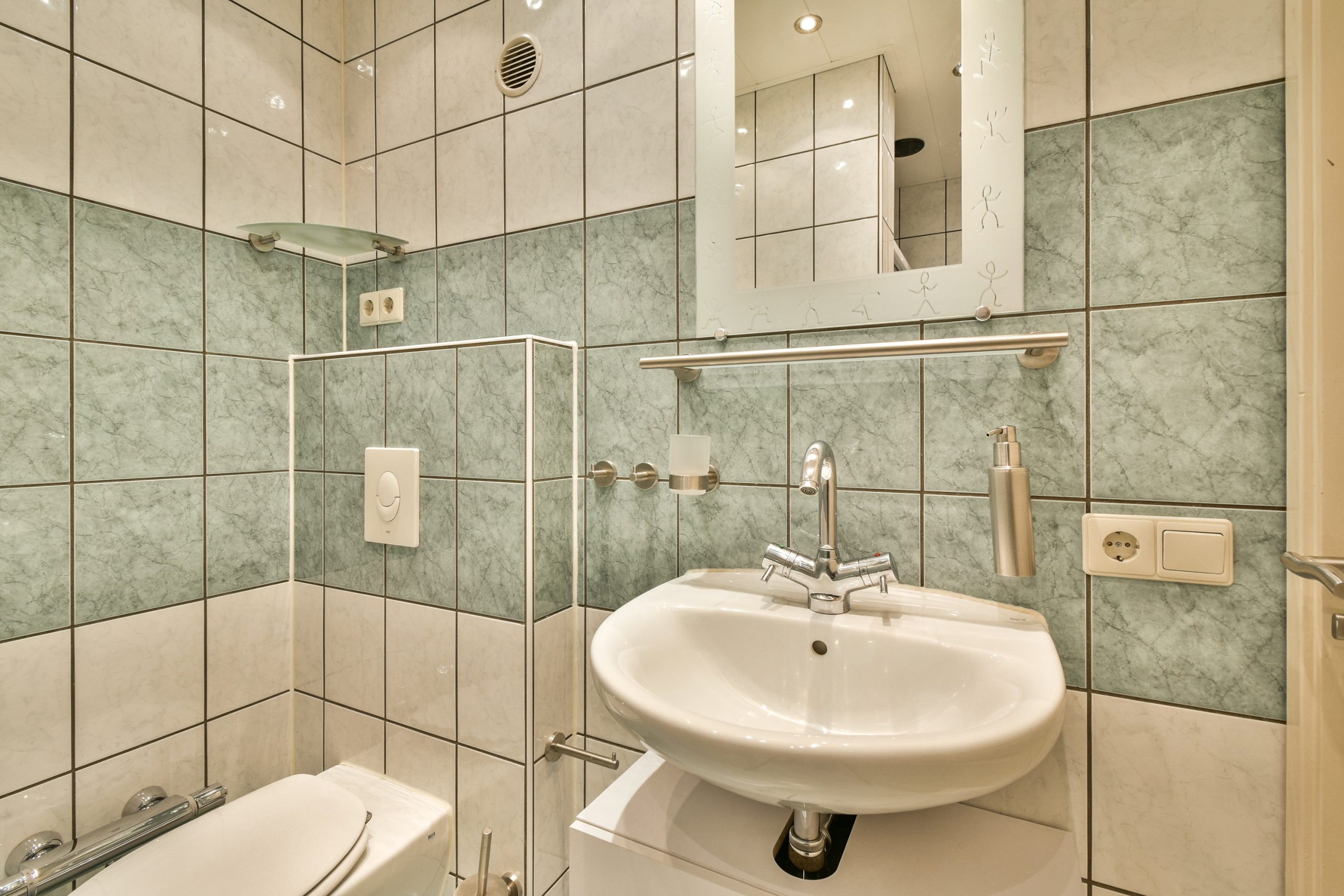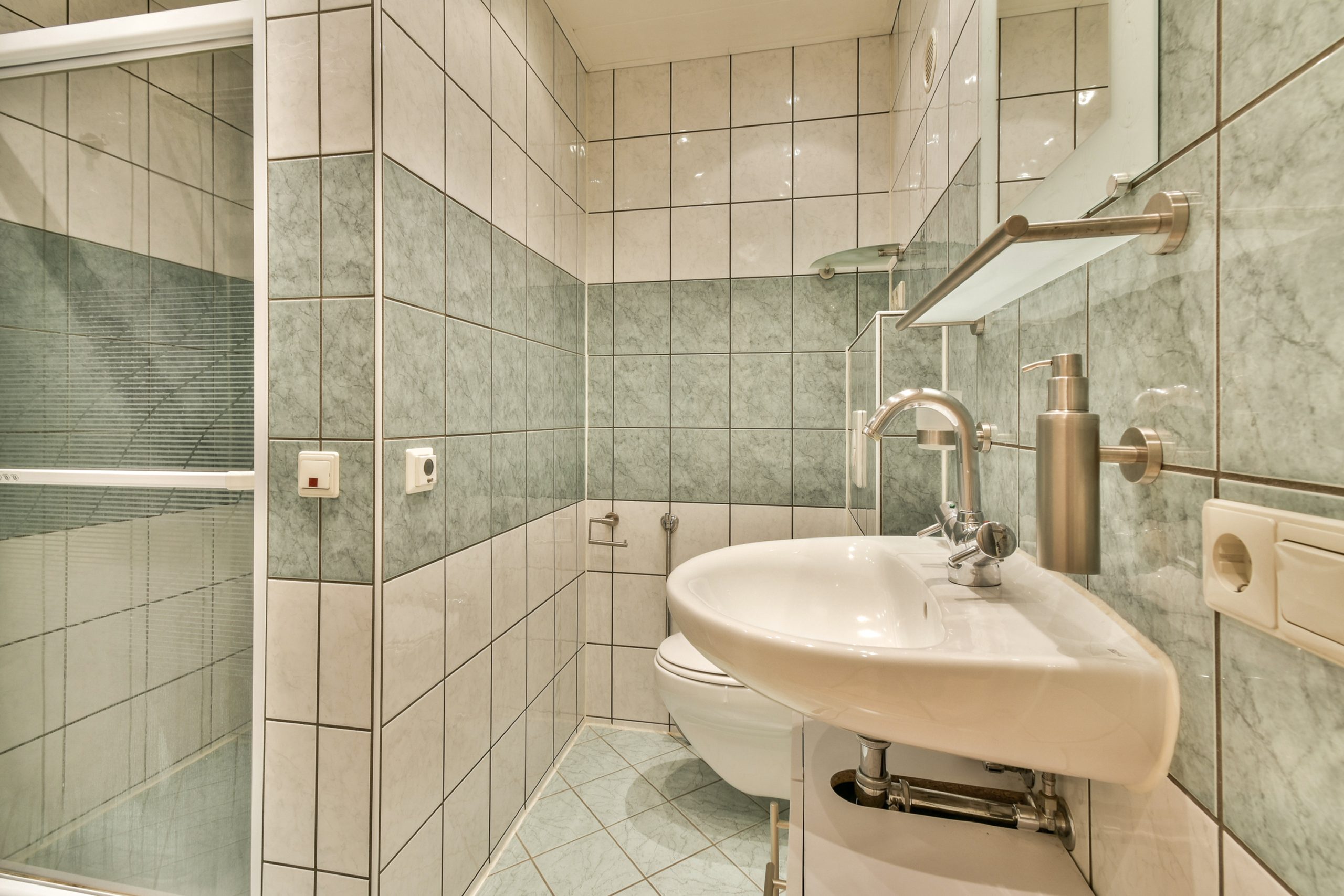 De badkamer is voorzien van elektrische vloerverwarming, een douche, toilet en wastafel. Daarnaast is er een separate wasruimte met aansluitingen voor wasmachine en droger.
