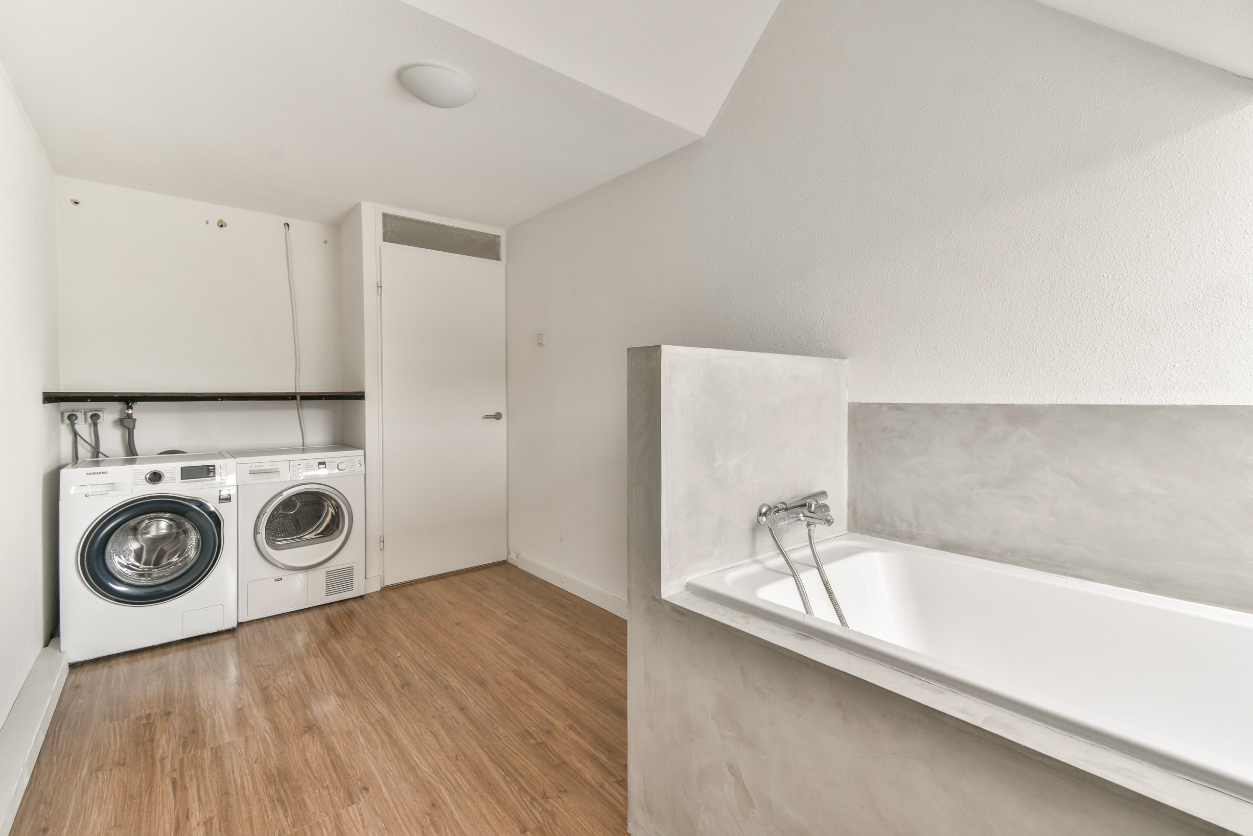 Slaapkamer 3: momenteel in gebruik als wasruimte met aansluitingen voor wasmachine en droger en tevens voorzien van een ligbad.