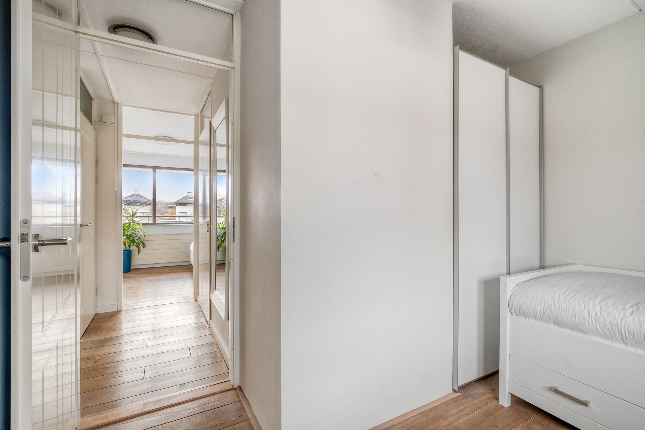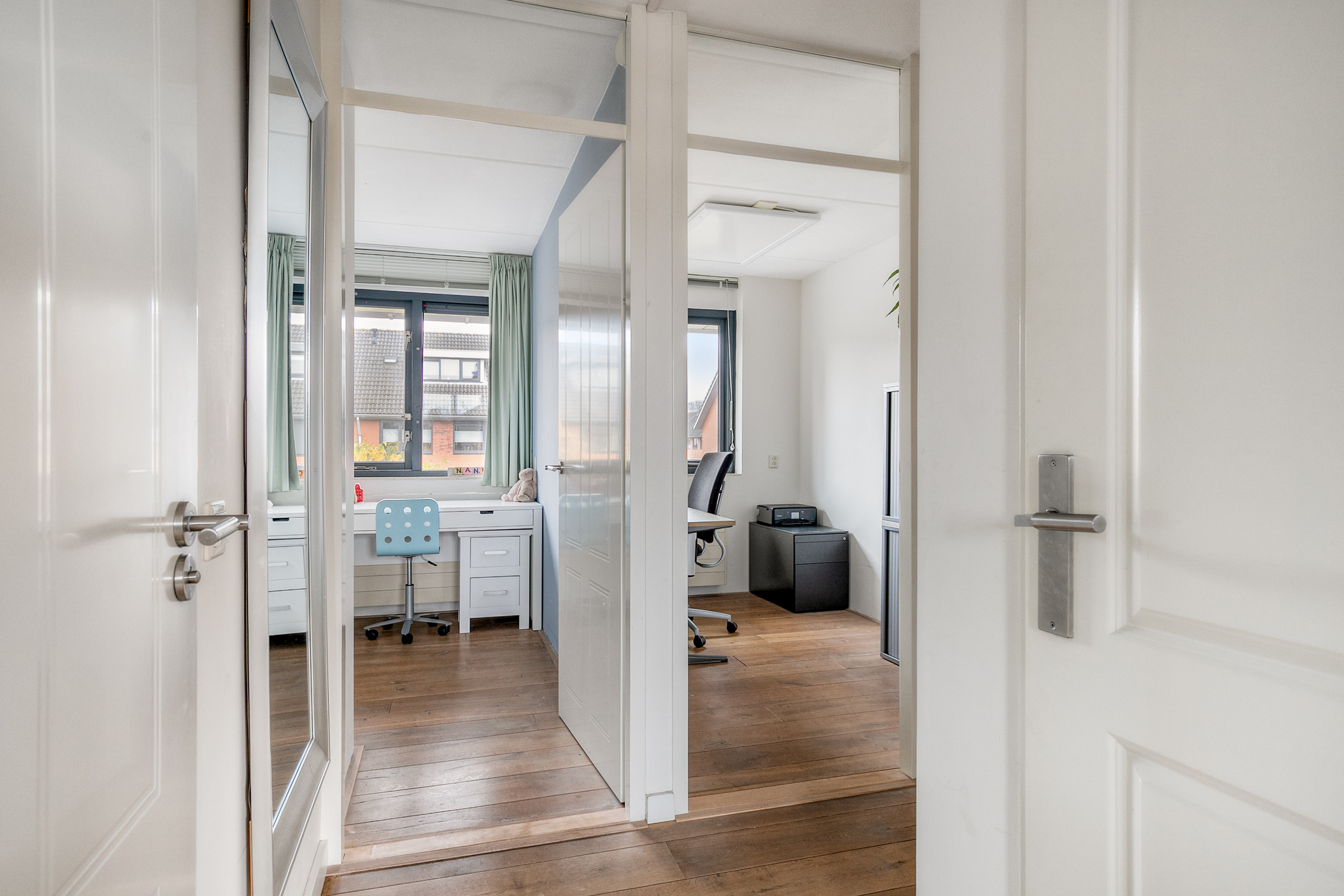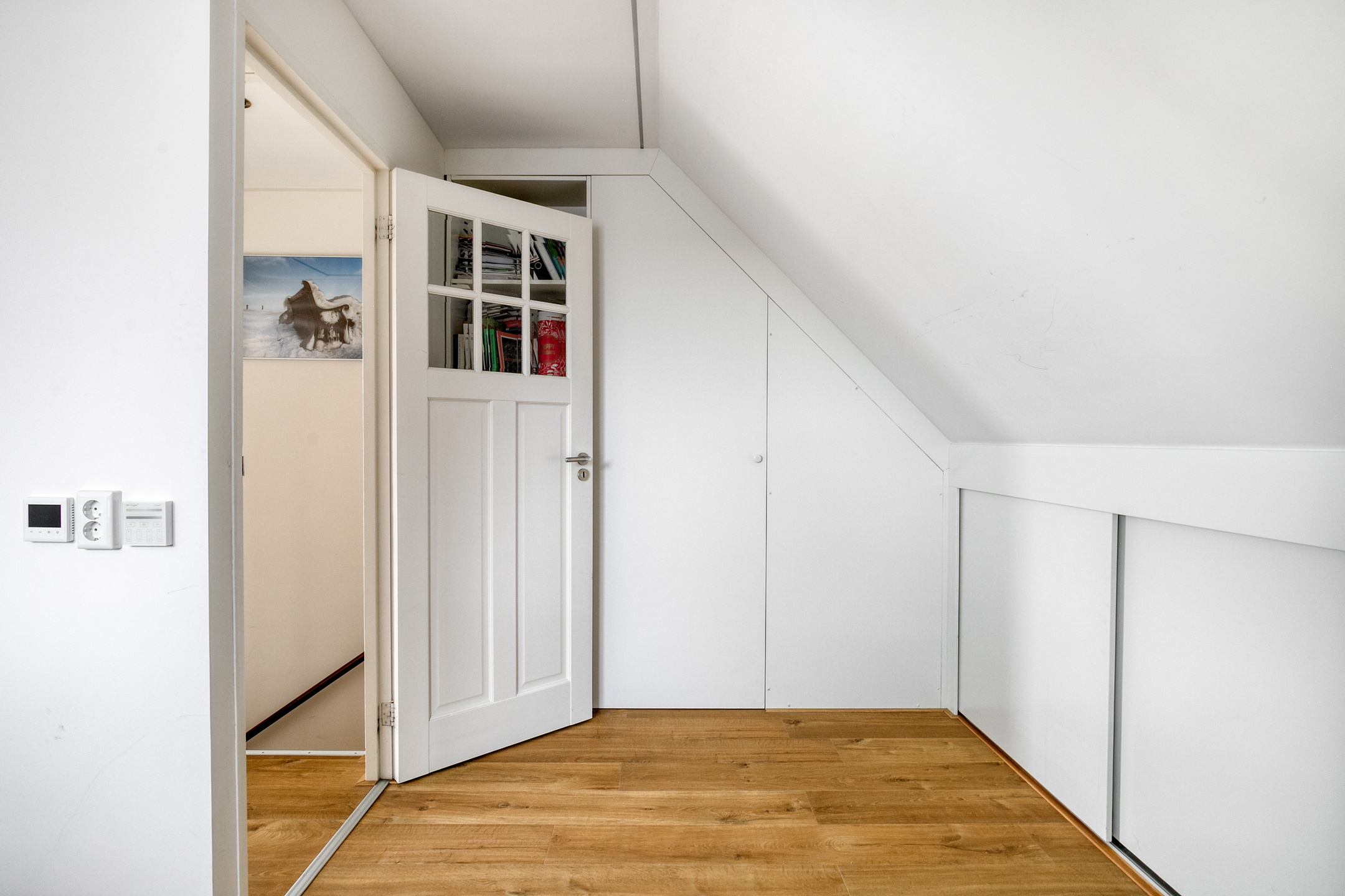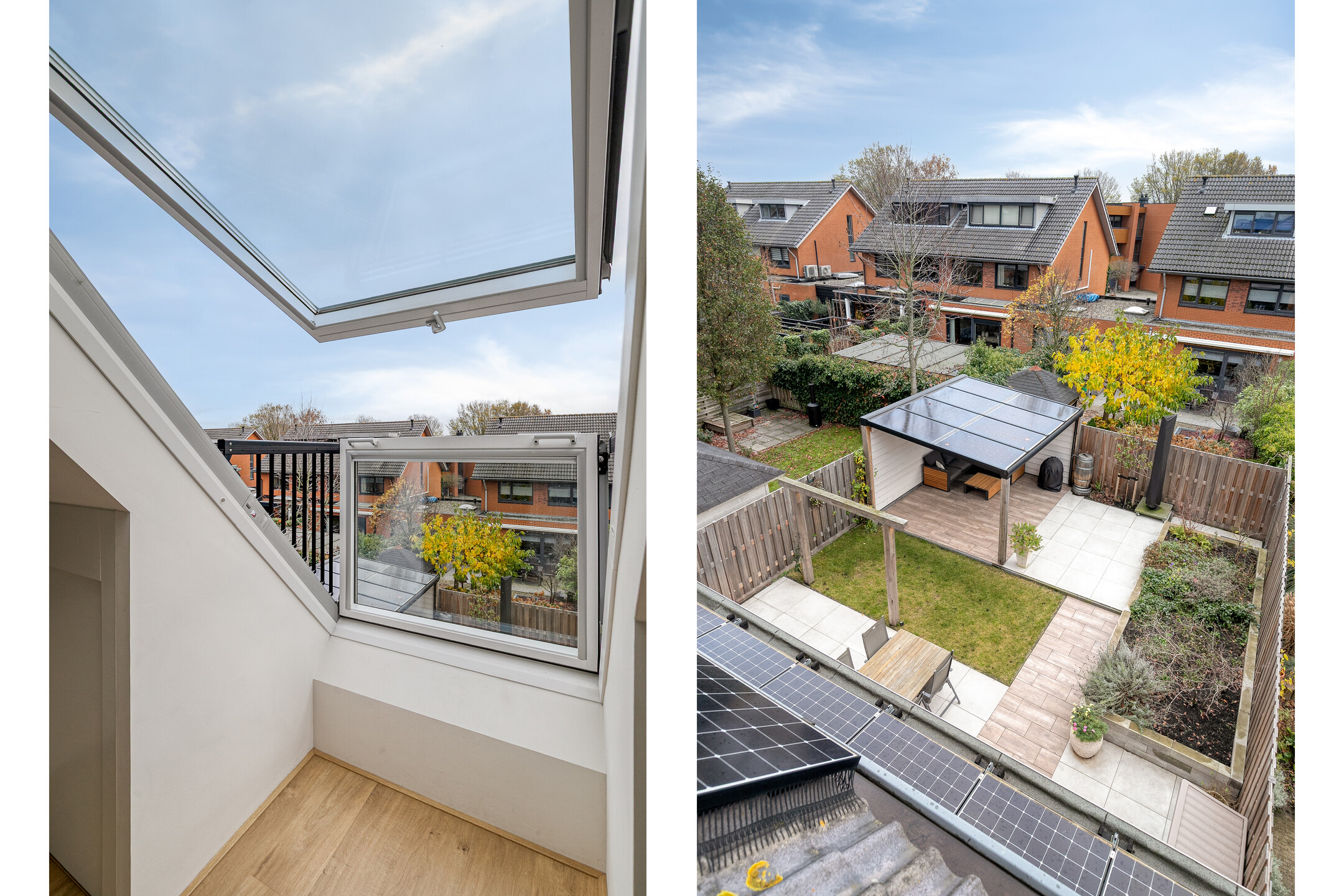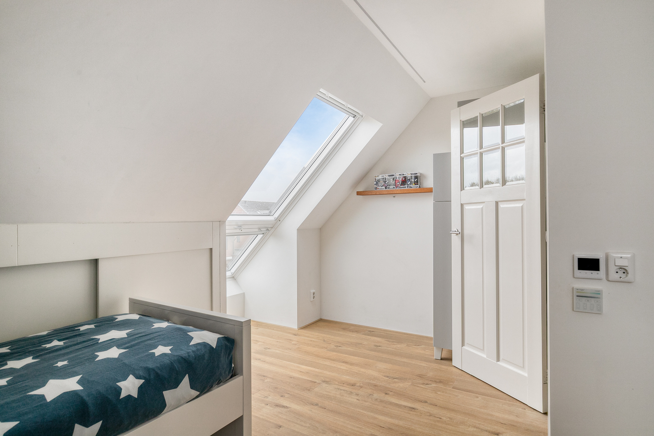 De verdieping is uitgebreid met een dakkapel, waardoor er extra ruimte en daglicht is ontstaan.