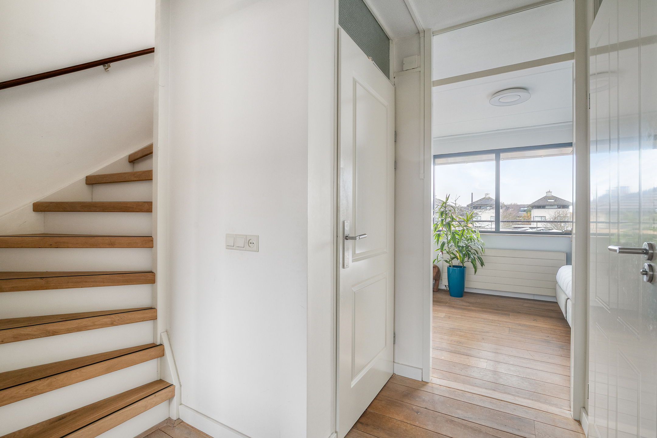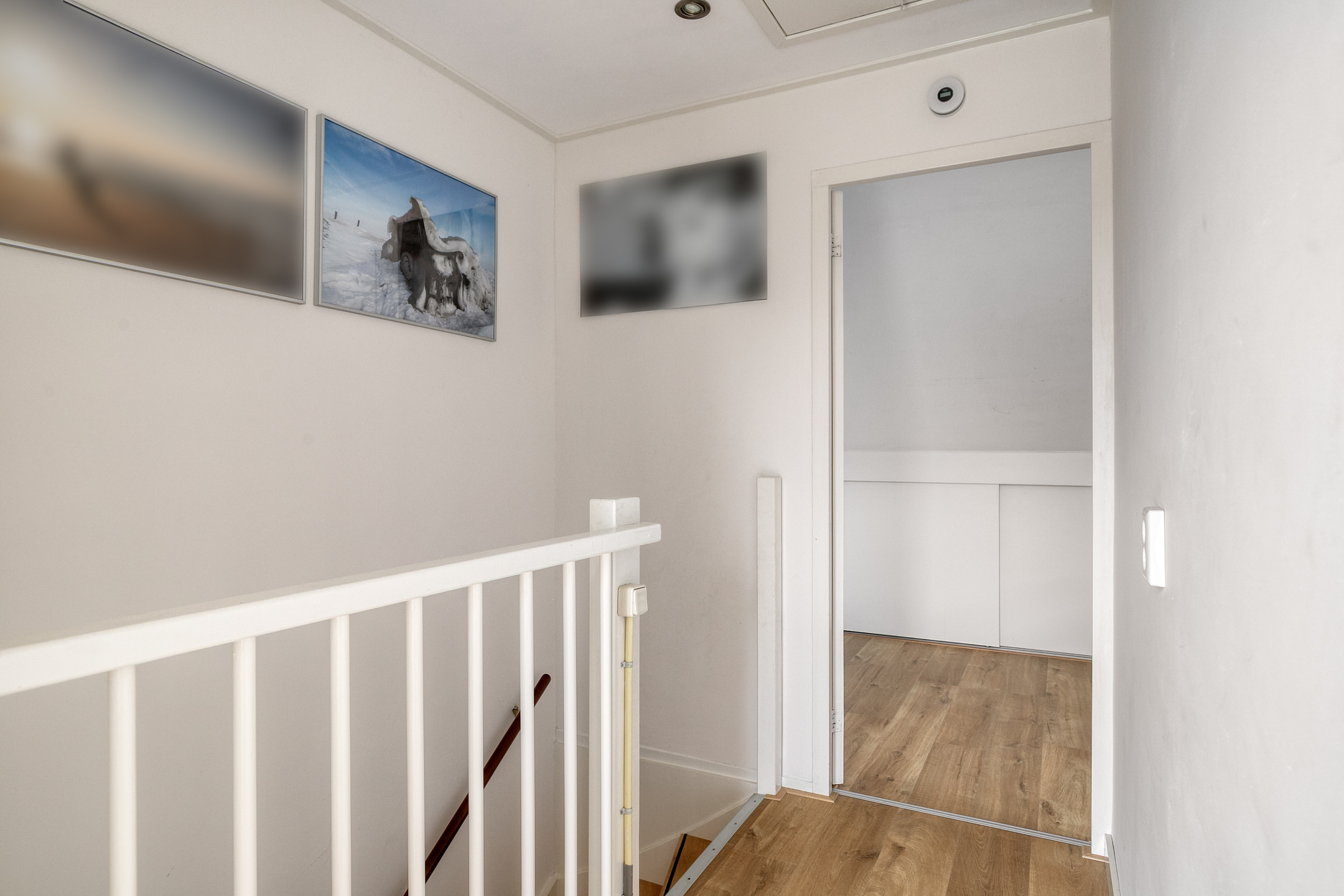 Ruime overloop met vlizotrap, welke toegang geeft tot de praktische bergzolder.