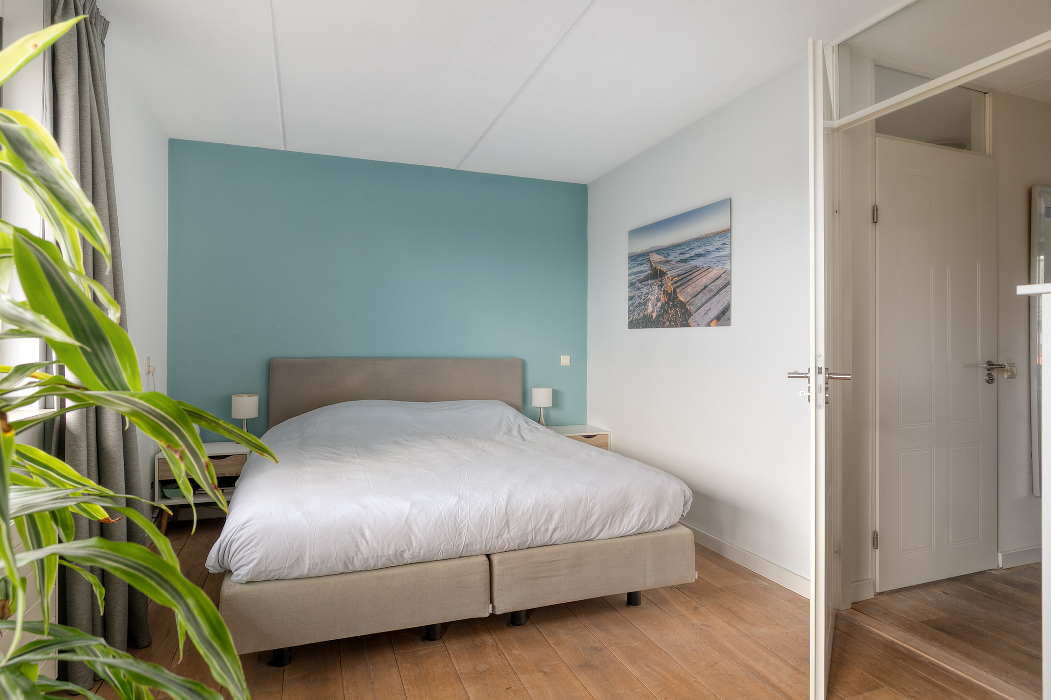 Masterbedroom (ca. 3.08 x 5.38 m) aan de voorzijde, met toegang tot het balkon.