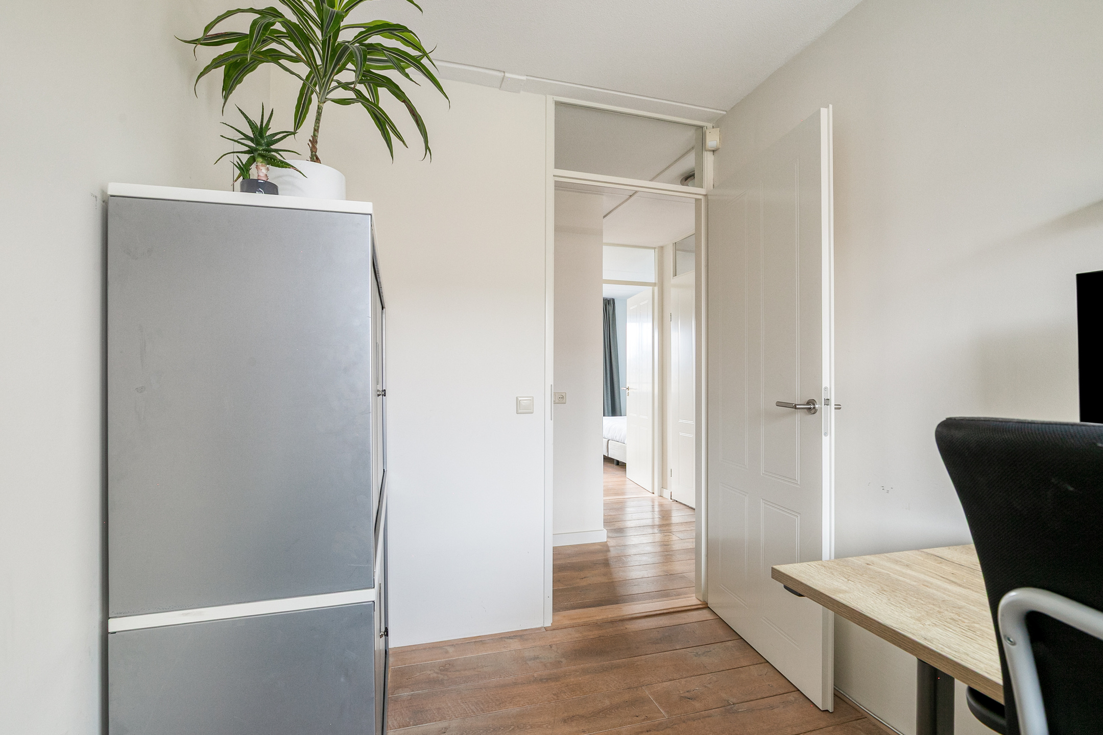 Slaapkamer 4, gelegen aan de voorzijde, is voorzien van een vaste kast met de cv-installatie en biedt veel bergruimte.