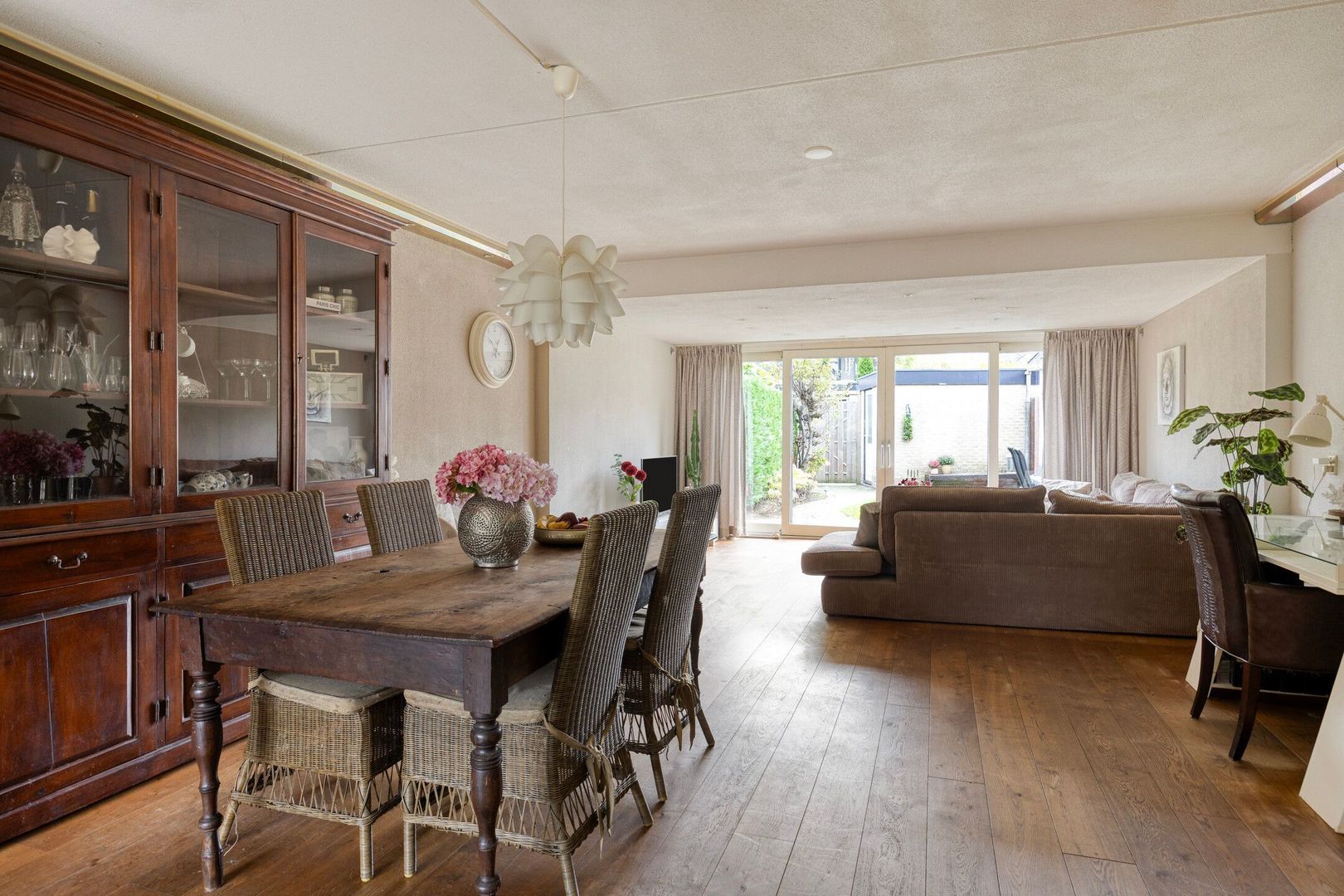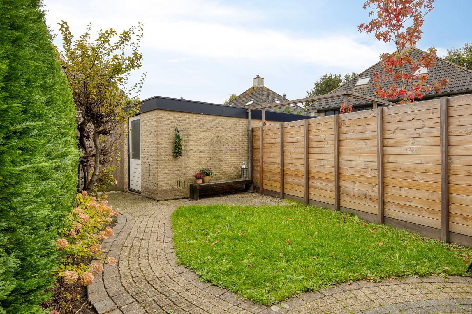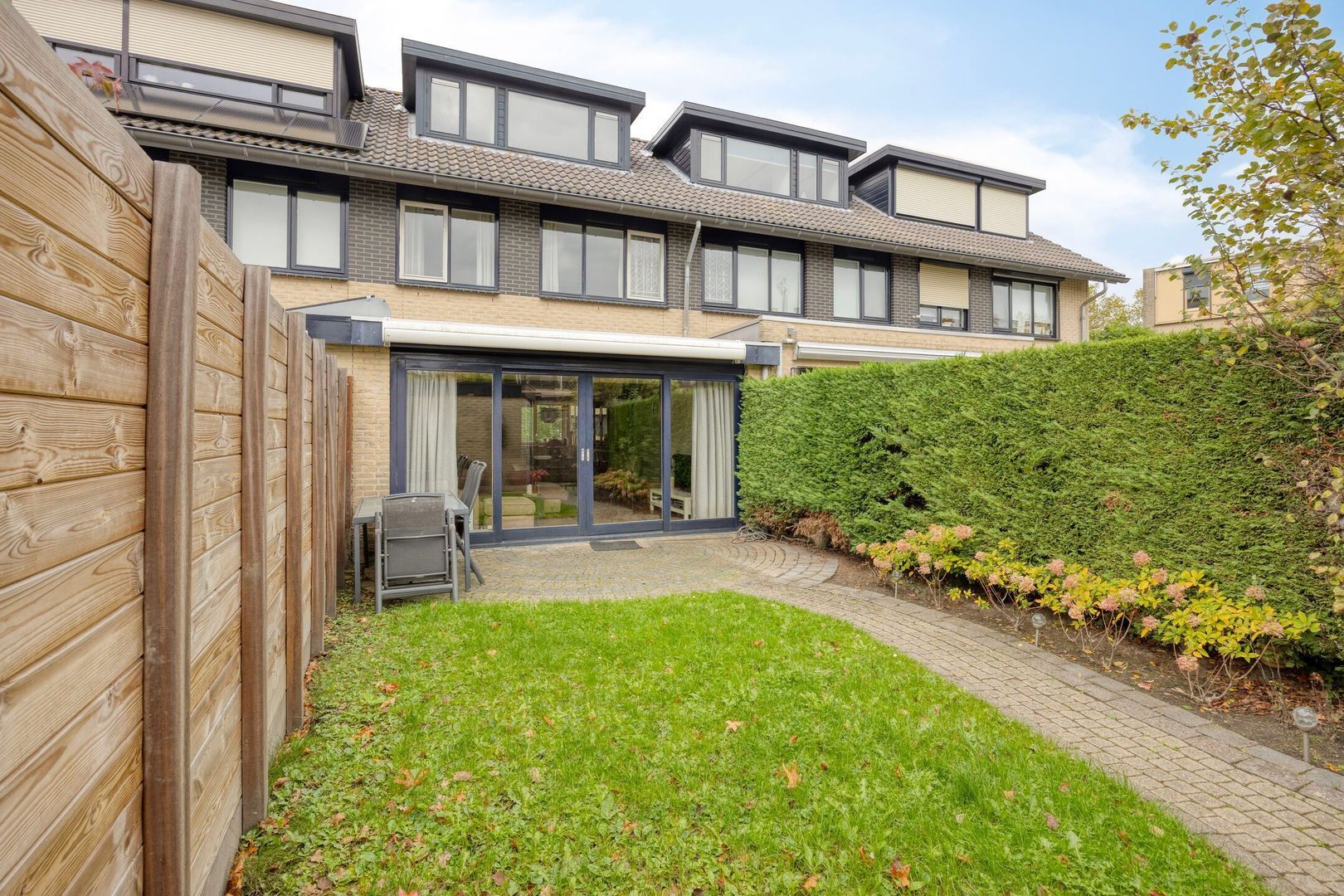 Via de schuifpui in de woonkamer stap je de zonnige achtertuin in, welke is gelegen op het zuidoosten. De tuin beschikt over een stenen berging, ideaal voor fietsen en tuingereedschap en een elektrisch zonnescherm.