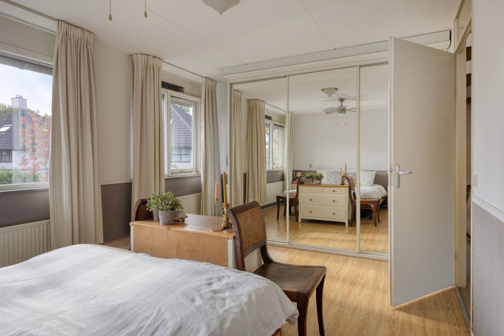 Slaapkamer 2, gelegen aan de achterzijde (ca. 3.46 x 4.82 m) en voorzien van vaste kasten.