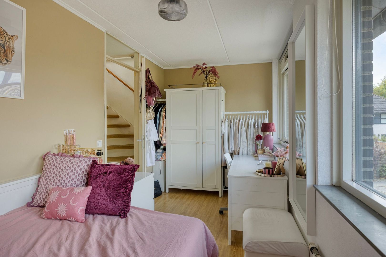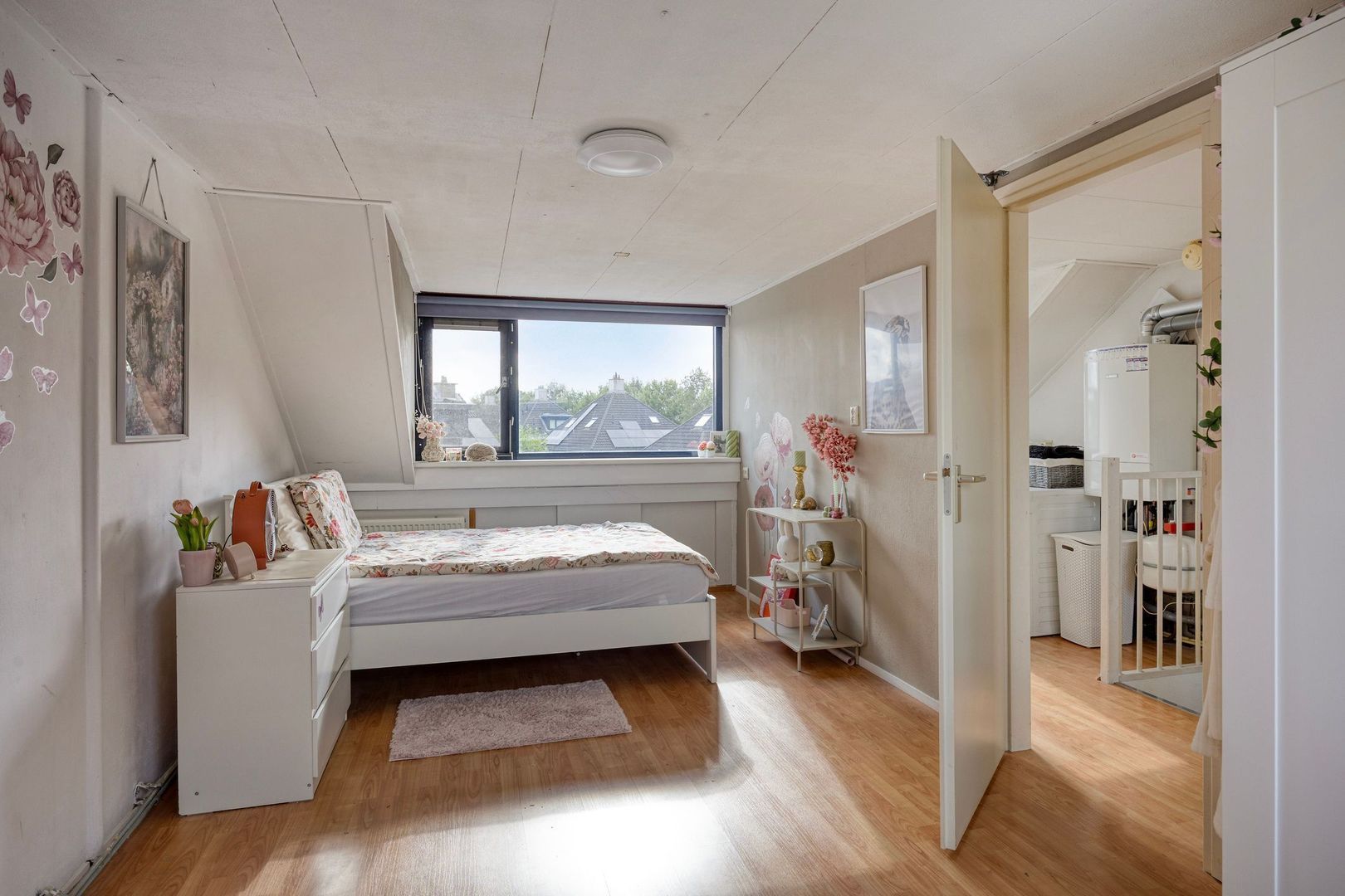 De ruime zolderkamer is voorzien van dakkapellen aan beide zijden, waardoor hier eenvoudig twee volwaardige slaapkamers kunnen worden gecreëerd. Achter de knieschotten bevindt zich extra bergruimte.