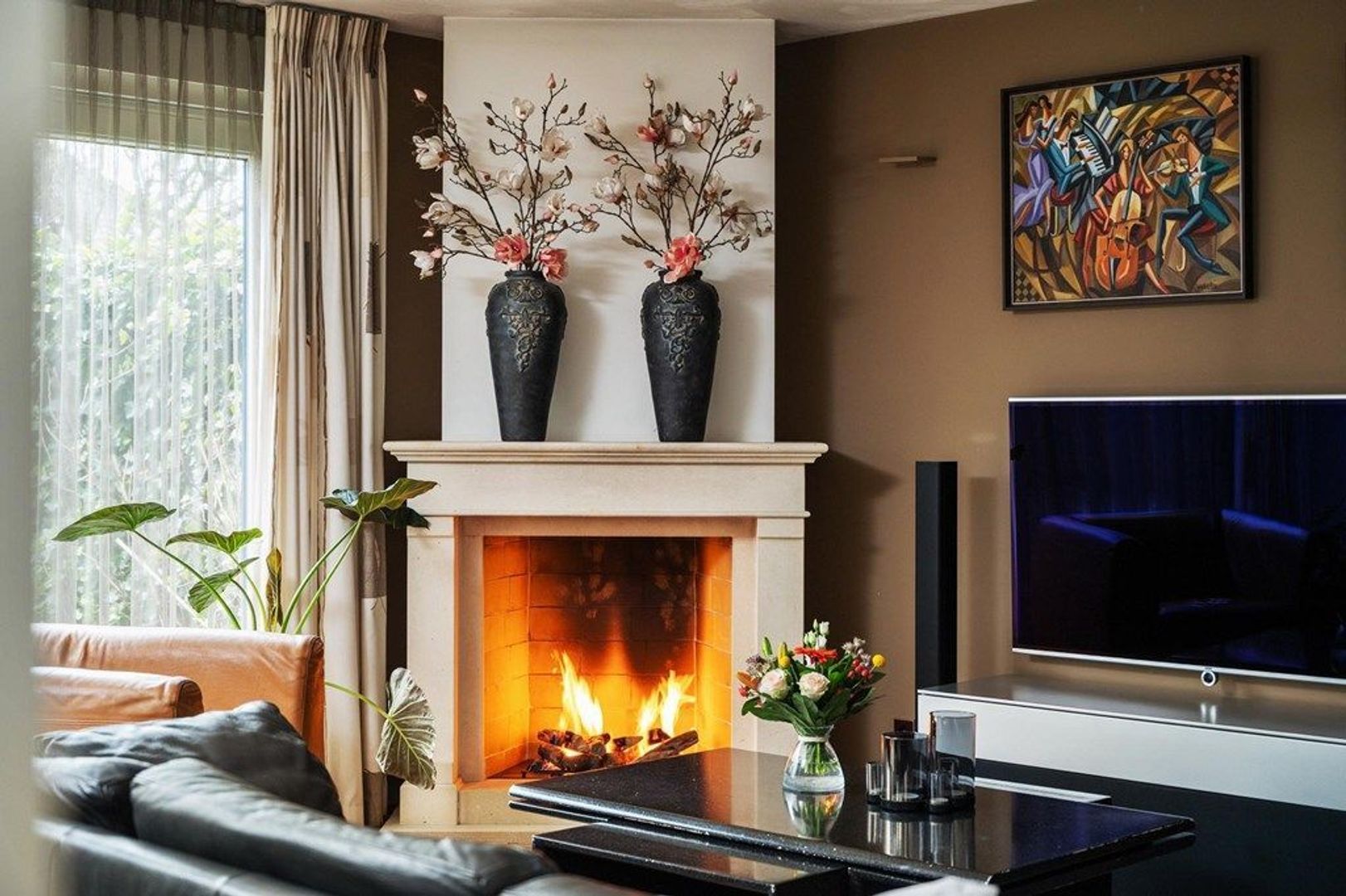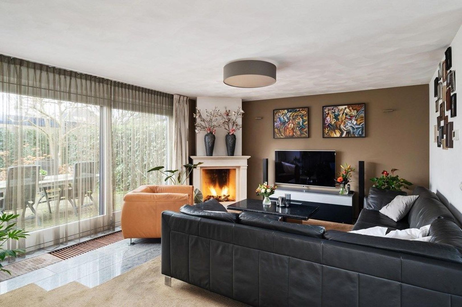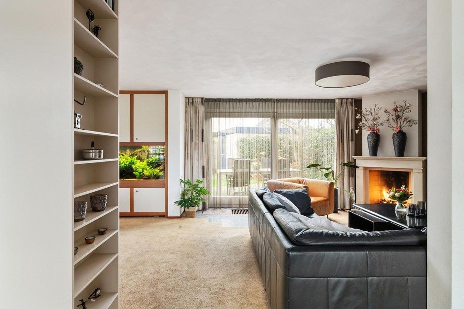 Het zitgedeelte is sfeervol en heeft een mooie schouw met gashaard. De grote schuifpui zorgt voor veel natuurlijk lichtinval en geeft toegang tot de achtertuin.