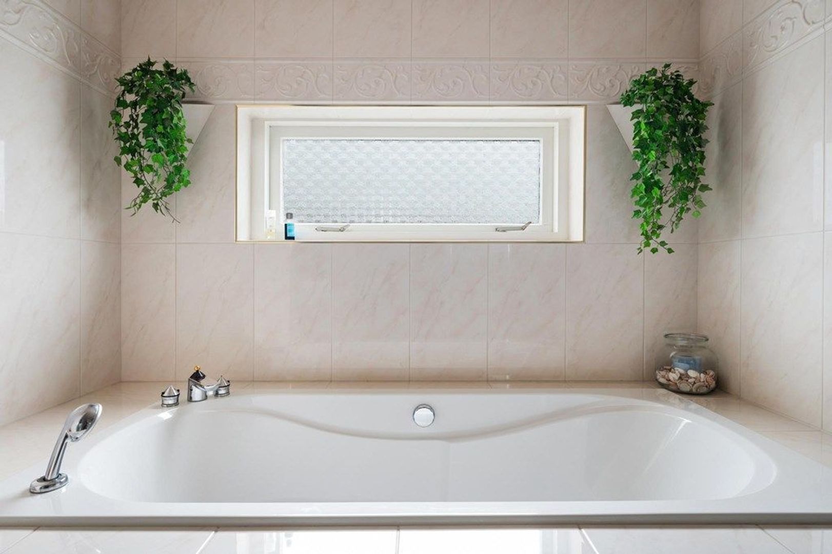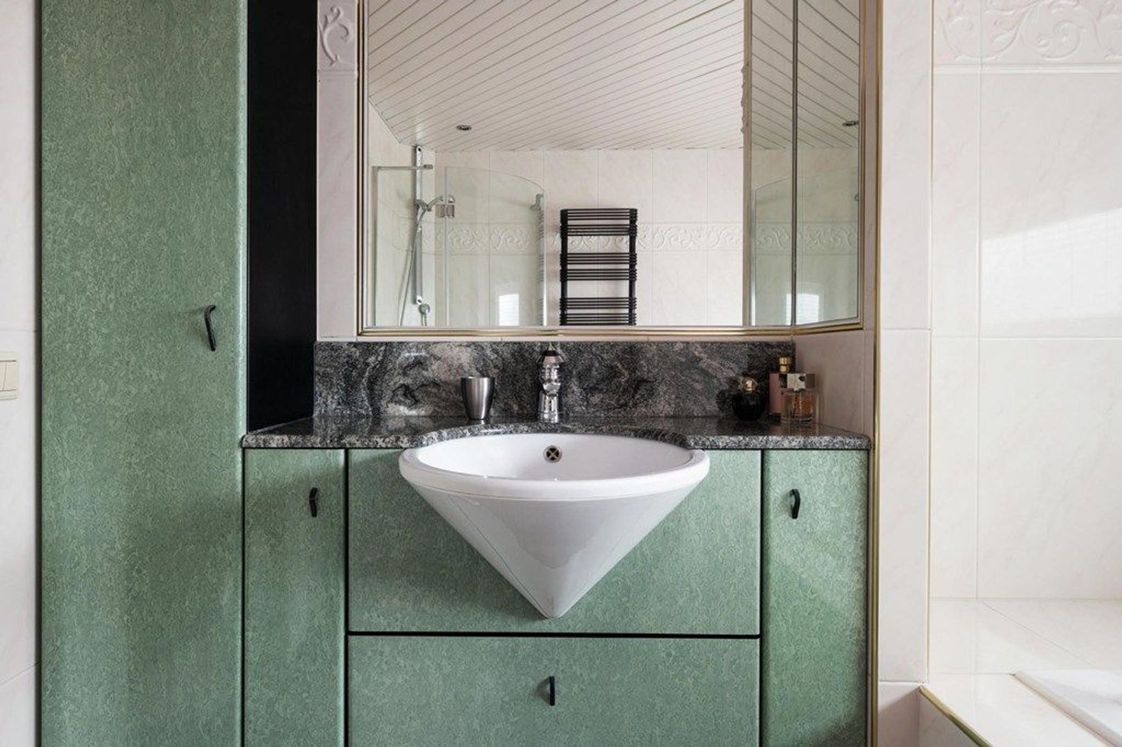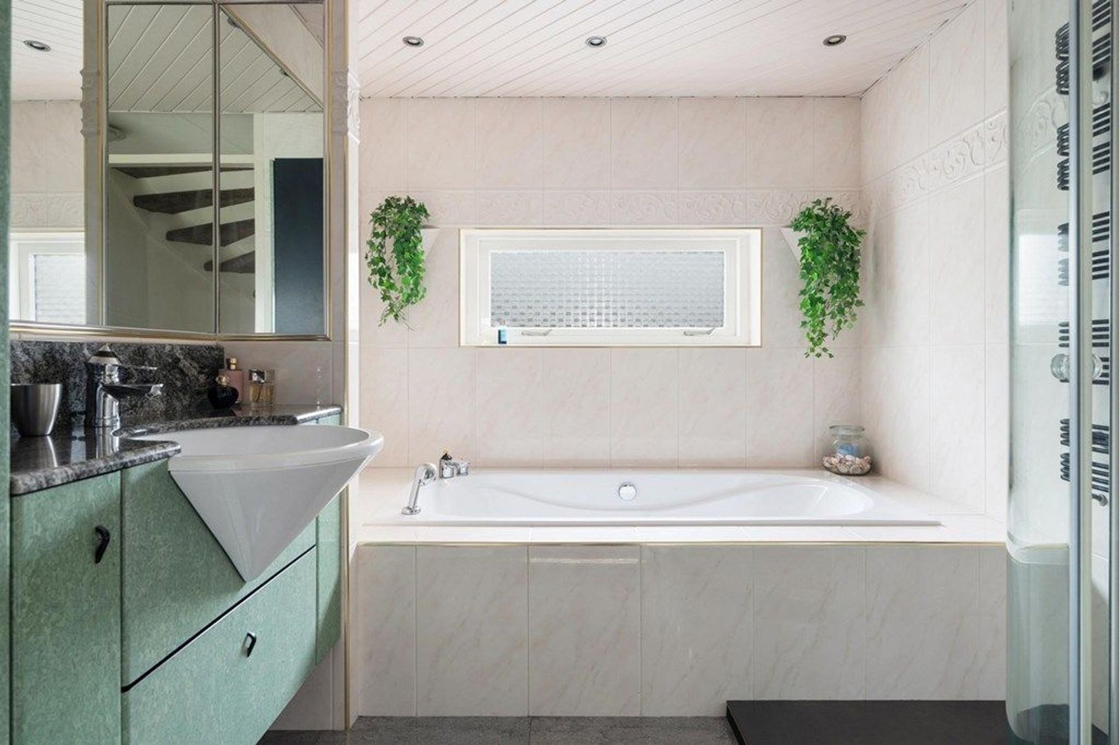 De badkamer is voorzien van ligbad, douche, wastafel met meubel en handdoekradiator.