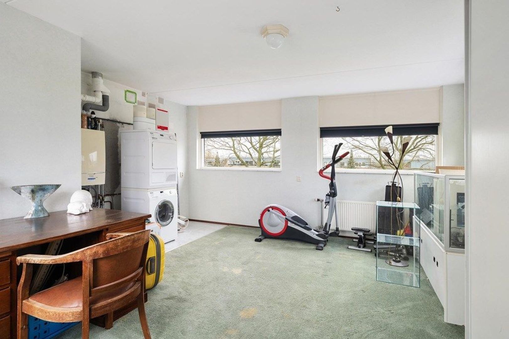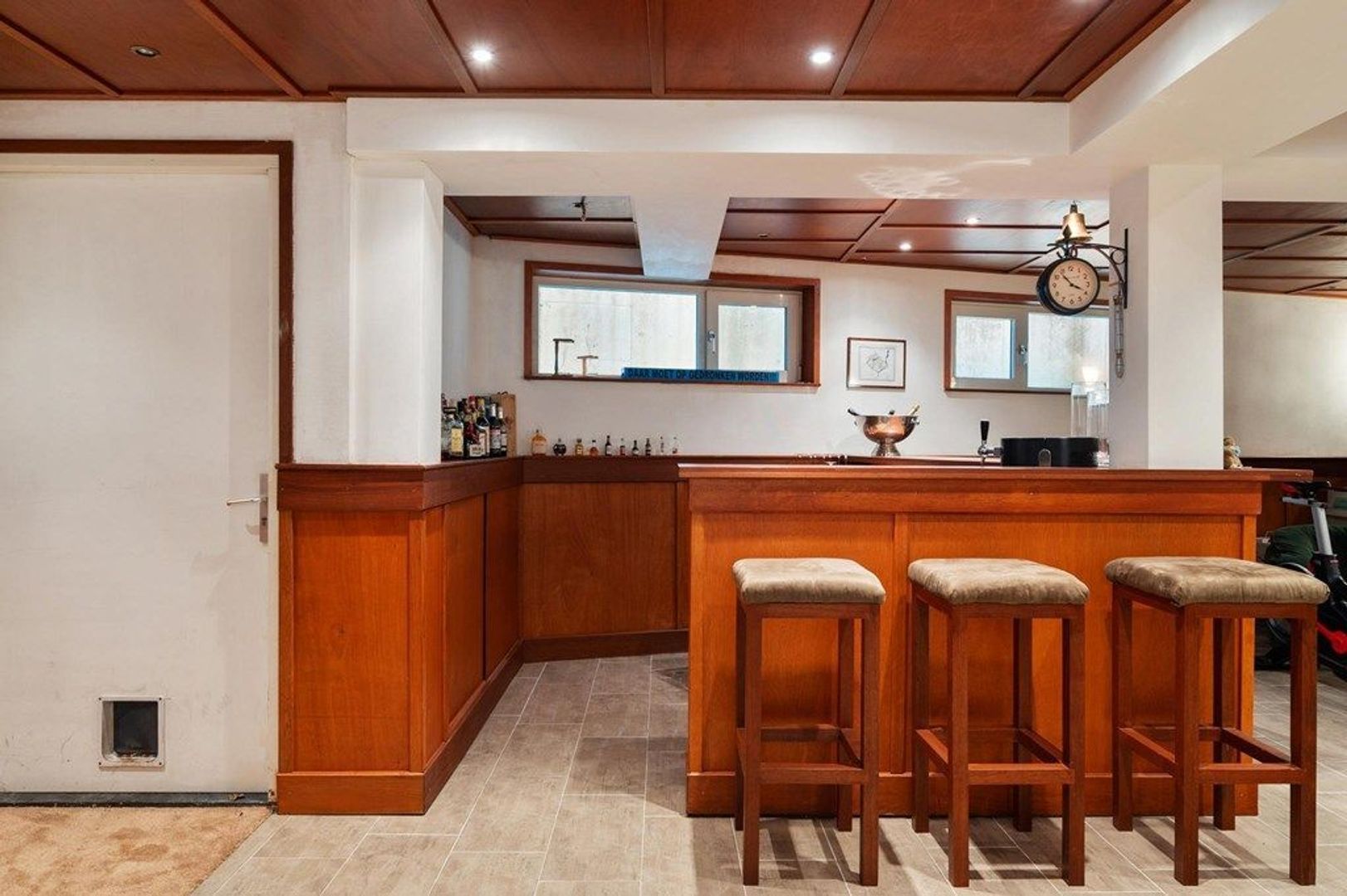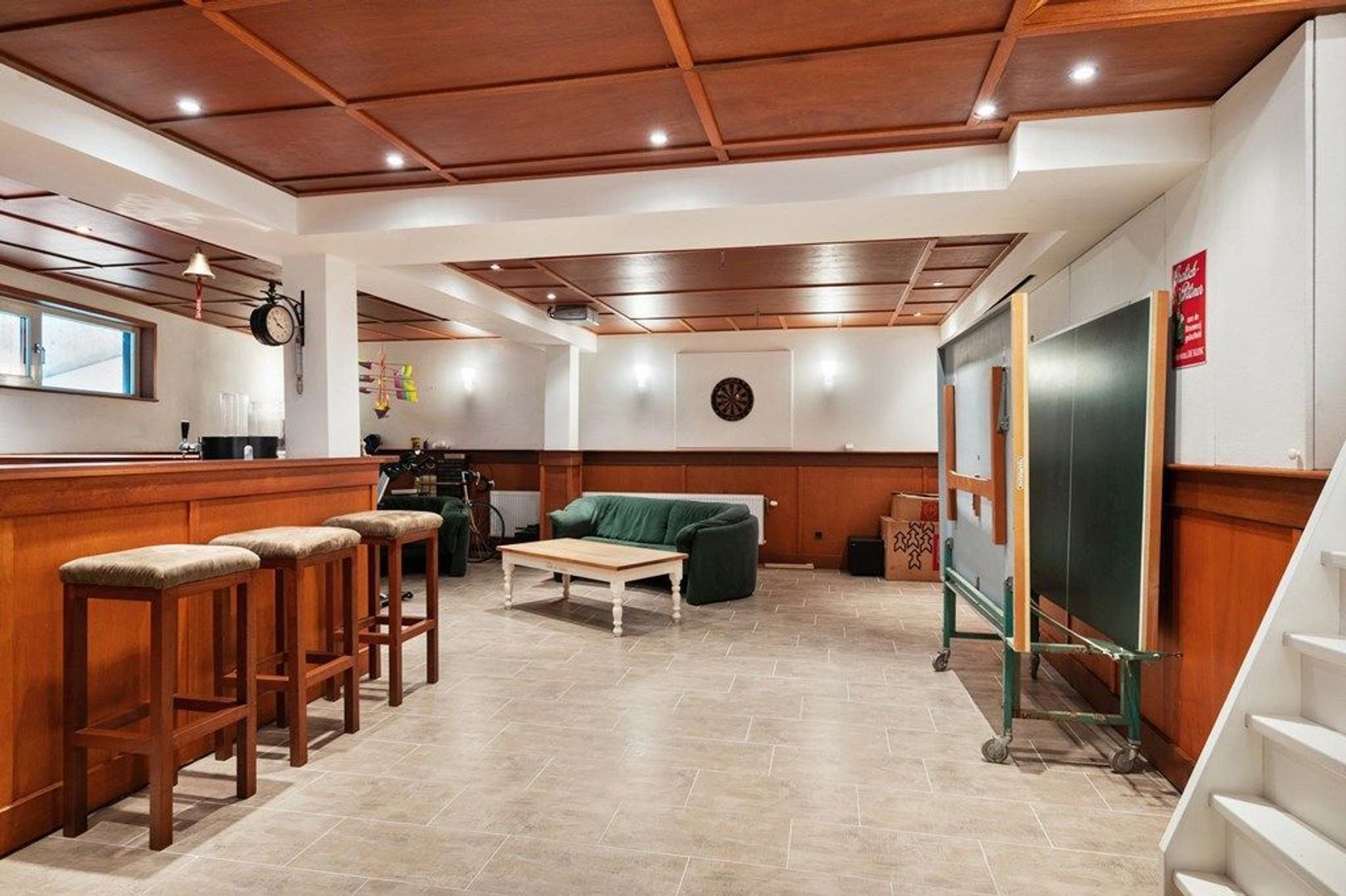 De riante kelder (ca. 58 m2) biedt diverse mogelijkheden zoals een chillruimte, bioscoop, hobbyruimte en ga zo maar door. Naast diverse opbergkasten is er ook een bar.