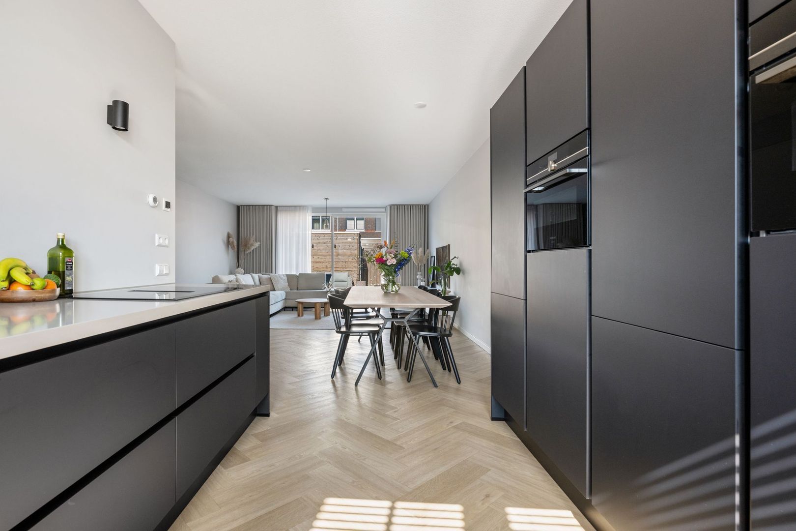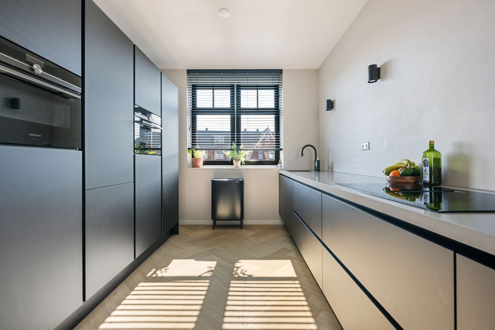 De keuken heeft extra werkruimte door middel van een extra breed aanrechtblad, en is voorzien van een spoelbak met Quooker, inductie kookplaat met geïntrigeerde afzuiging, apothekerskast, kastenwand, stoomoven, combi-oven, koelkast, vriezer, en een vaatwasmachine. De gehele keuken is voorzien van Siemens apparatuur