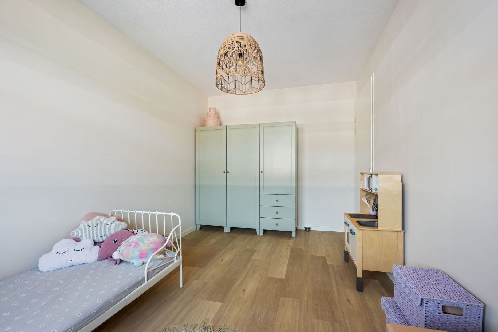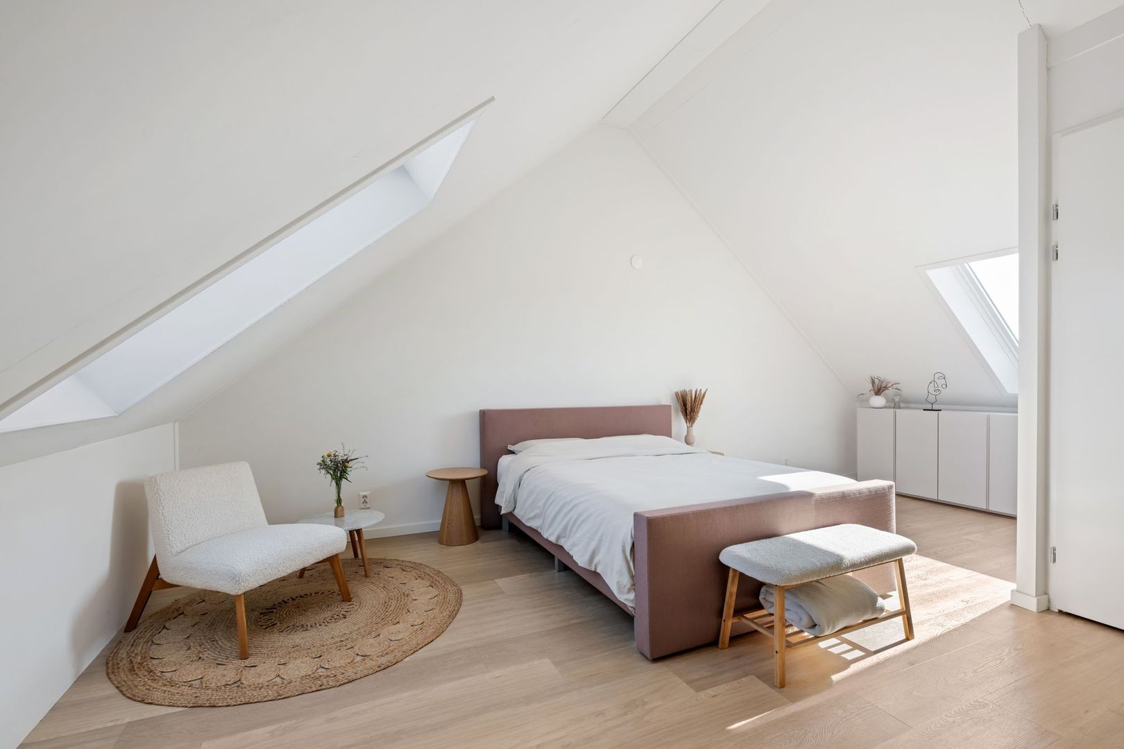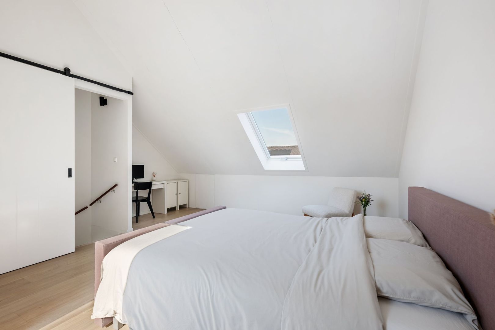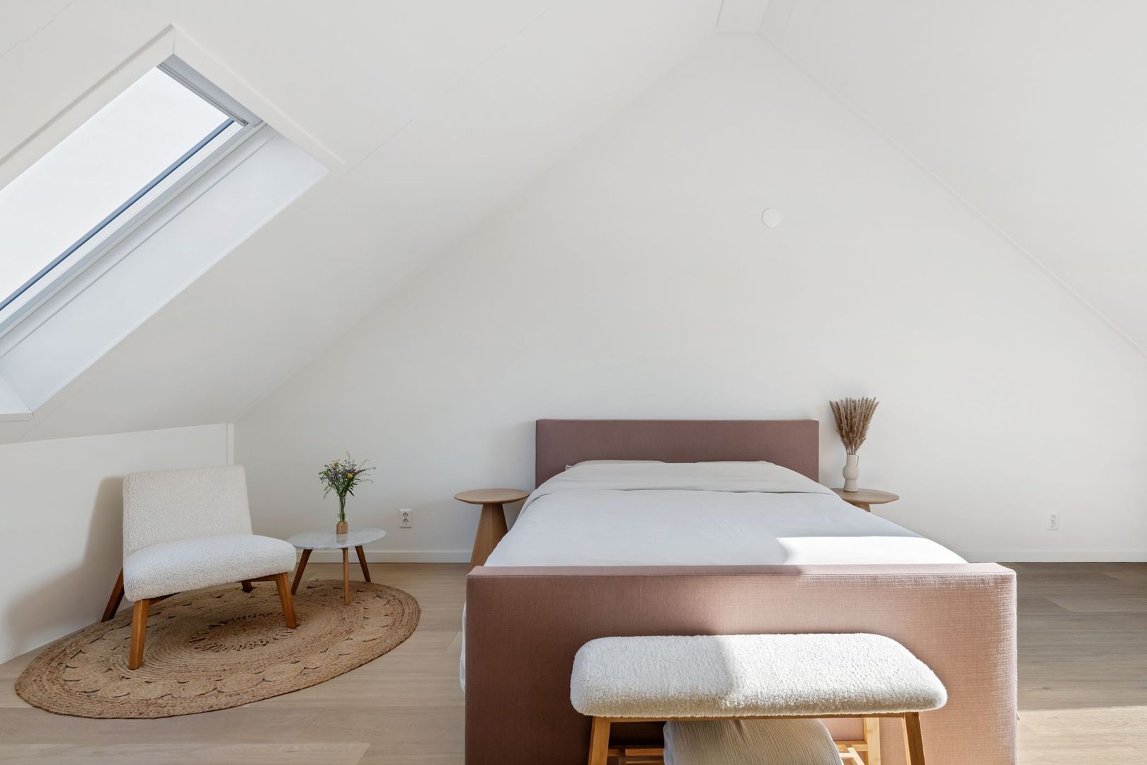 Ruime slaapkamer gerealiseerd met een schuifdeur. De slaapkamer is voorzien van knieschotten en dakramen. De slaapkamer geeft ook toegang tot de technische ruimte is tevens de opstelplaats voor de wasmachine en droger. De 2e verdieping is voor zien van een mooie pvc vloer.