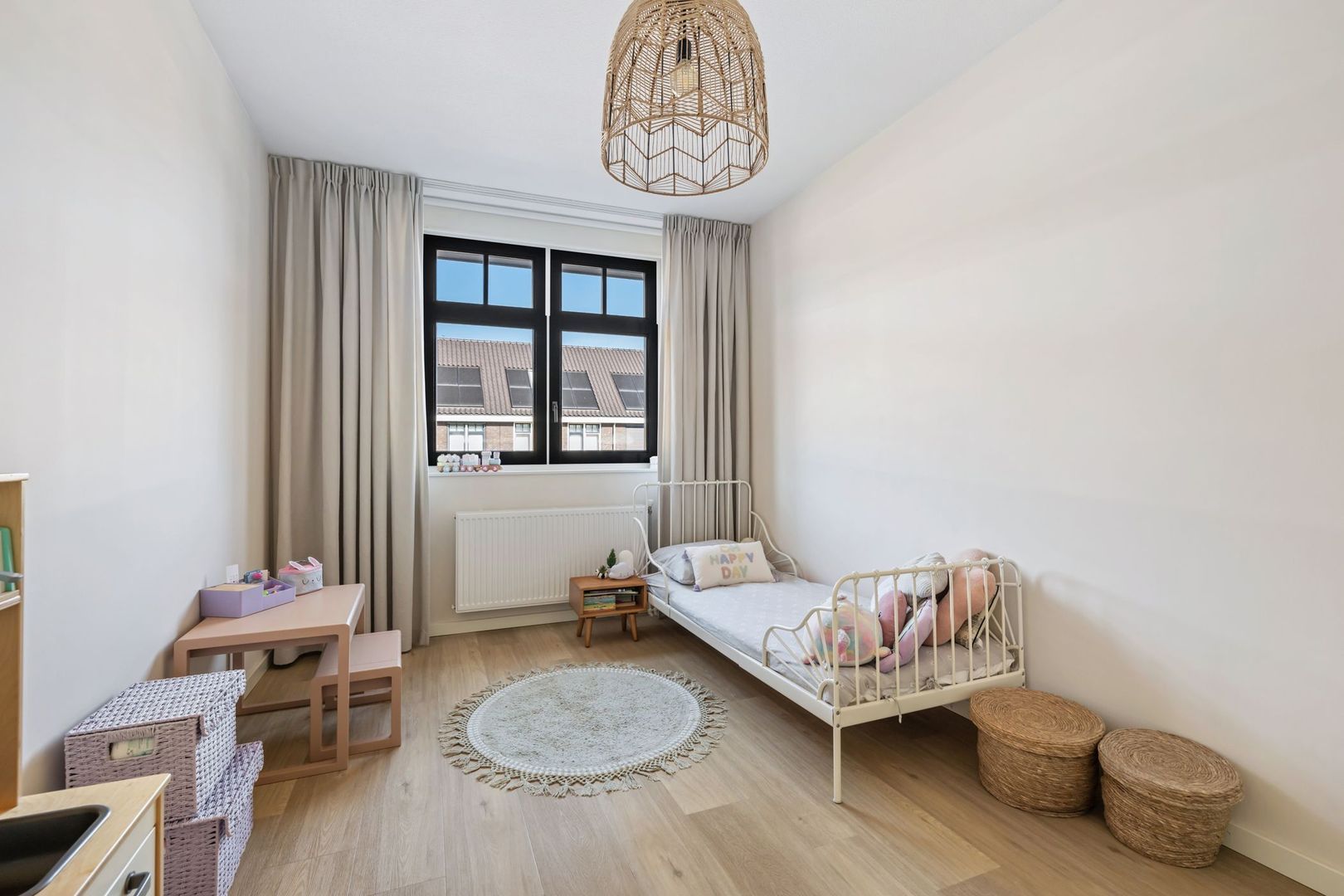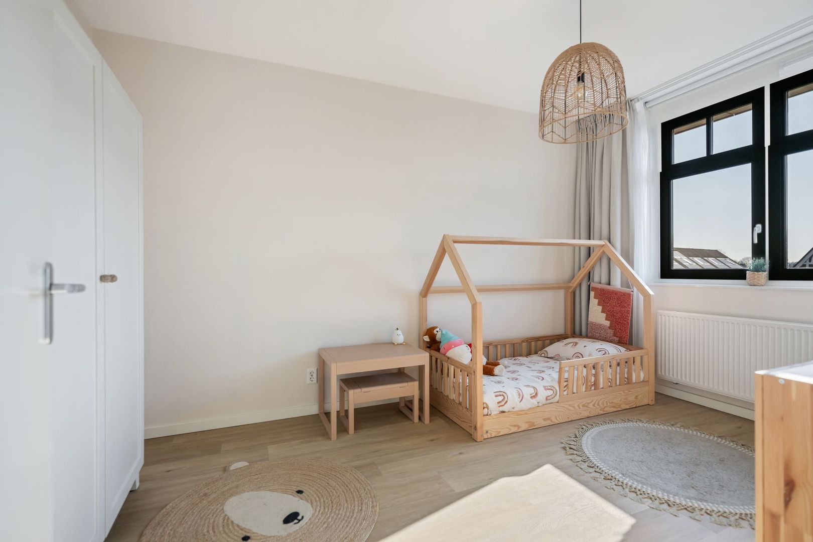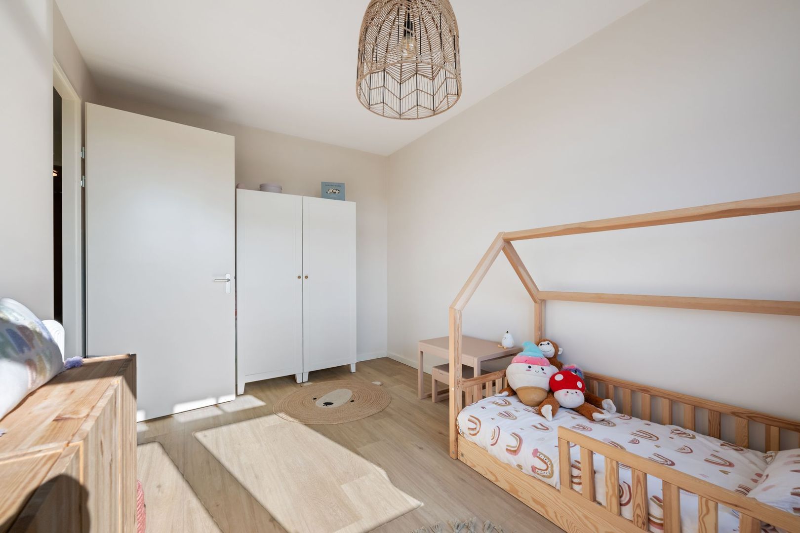 Slaapkamer 1 gelegen aan de achterzijde van de woning. Deze is voorzien van een grote raampartij met draai/kiep ramen.