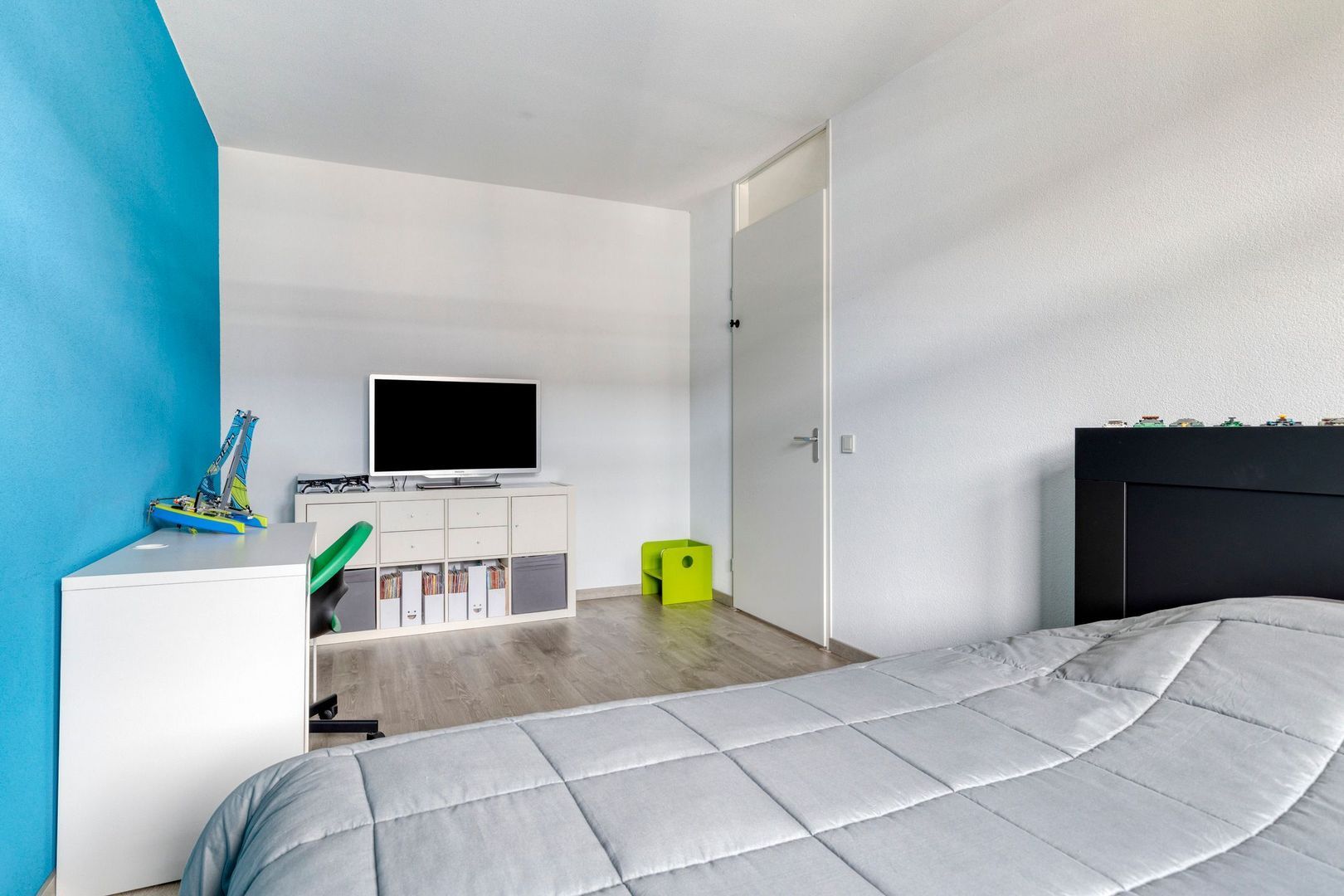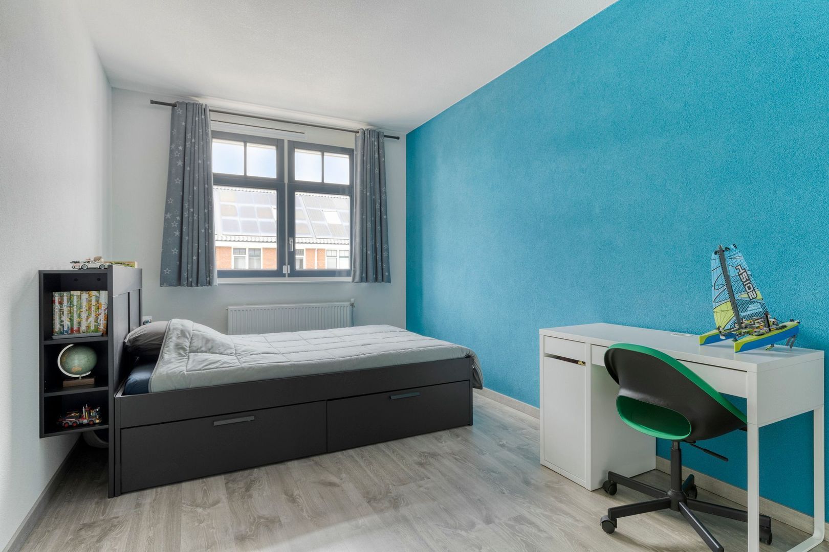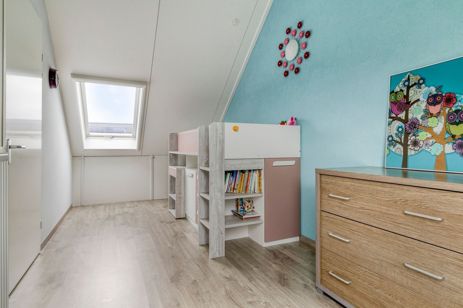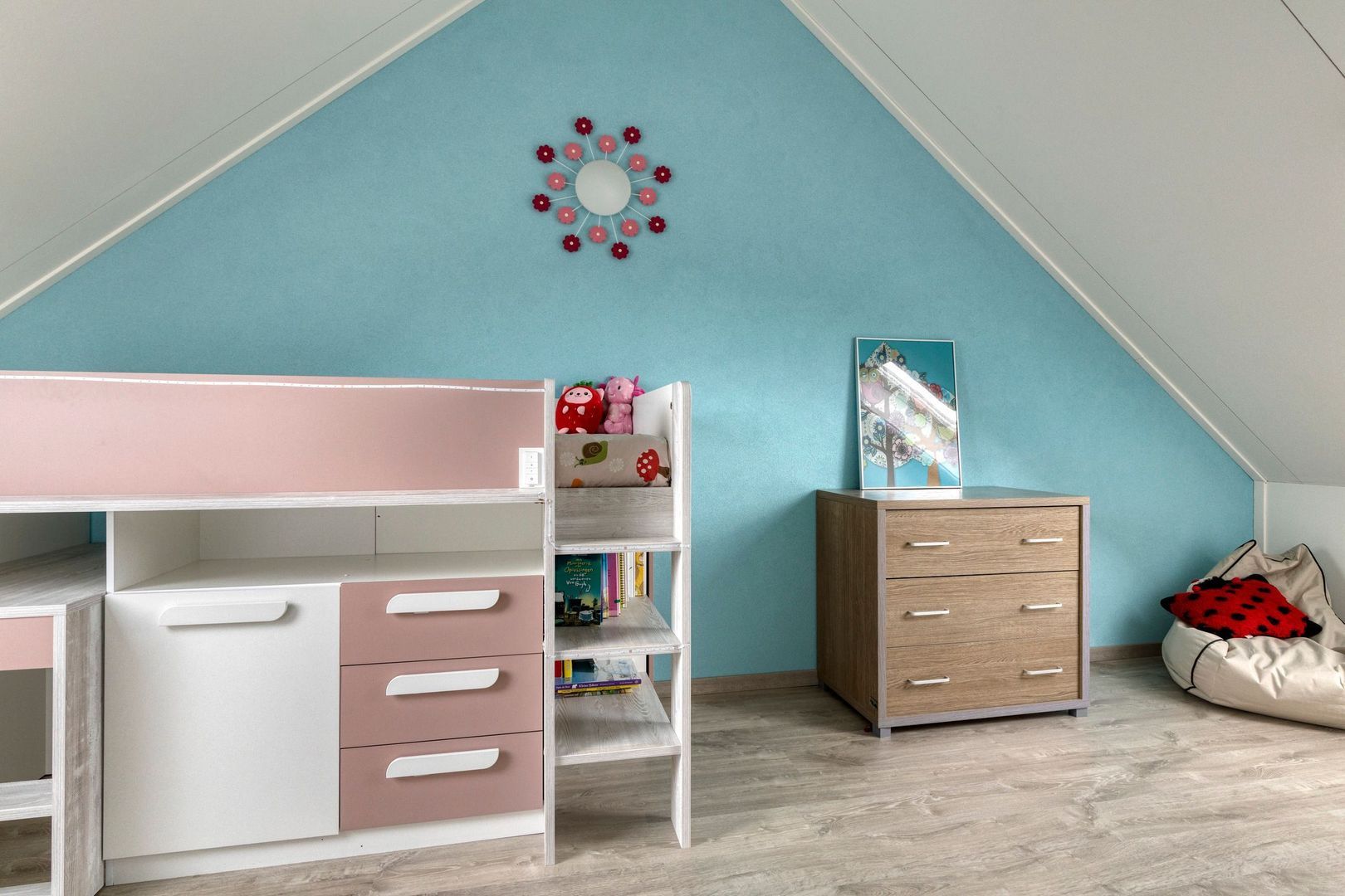 Op de tweede verdieping biedt de overloop toegang tot de vierde slaapkamer en een aparte wasruimte. De overloop is voorzien van een extra dakraam, wat de ruimte prettig licht maakt. Zowel de voorzolder als de slaapkamer beschikken over knieschotten over de gehele lengte, wat zorgt voor veel extra bergruimte. In de technische ruimte is plek voor de wasmachine en droger. Dankzij de zeven zonnepanelen is de woning bovendien energiezuinig.