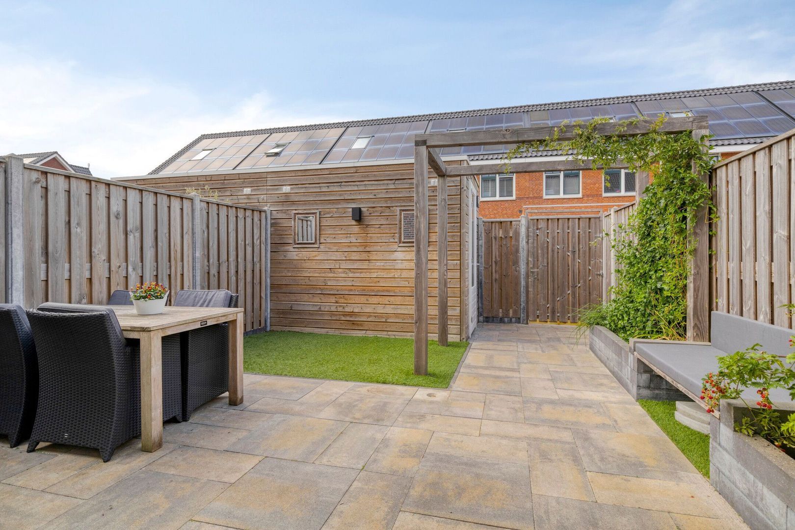 De woning beschikt over een verzorgde voor- en achtertuin. De achtertuin is gelegen op het noordwesten, biedt volop zon en is fraai aangelegd met diverse borders. Verder is er een berging aanwezig en een achterom, wat praktisch is voor fietsen en tuinbenodigdheden.