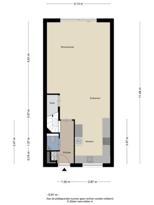 De woning is conform de Branchebrede Meetinstructie (BBMI) opgemeten. De Meetinstructie is bedoeld om een meer eenduidige manier van meten toe te passen voor het geven van een indicatie van de gebruiksoppervlakte. De Meetinstructie sluit verschillen in meetuitkomsten niet volledig uit, door bijvoorbeeld interpretatieverschillen, afrondingen of beperkingen bij het uitvoeren van de meting.