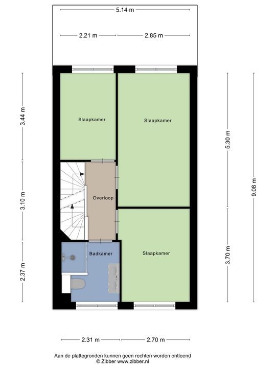 Slaapkamers 2 (ca. 3.44 x 2.21 m) aan de achterzijde.