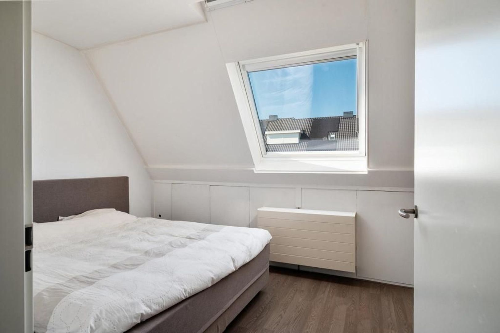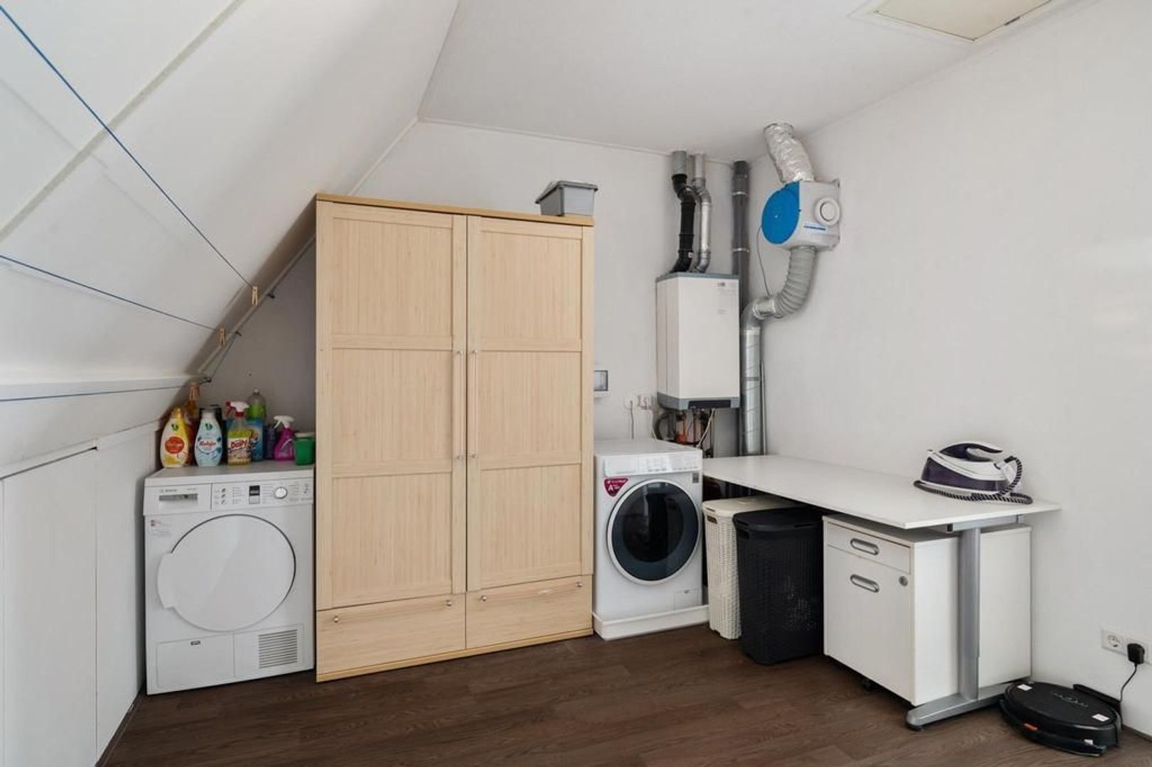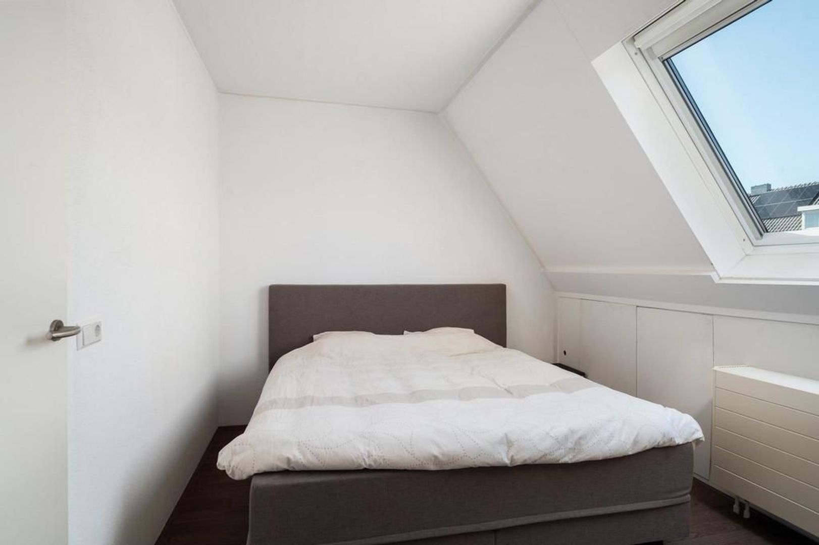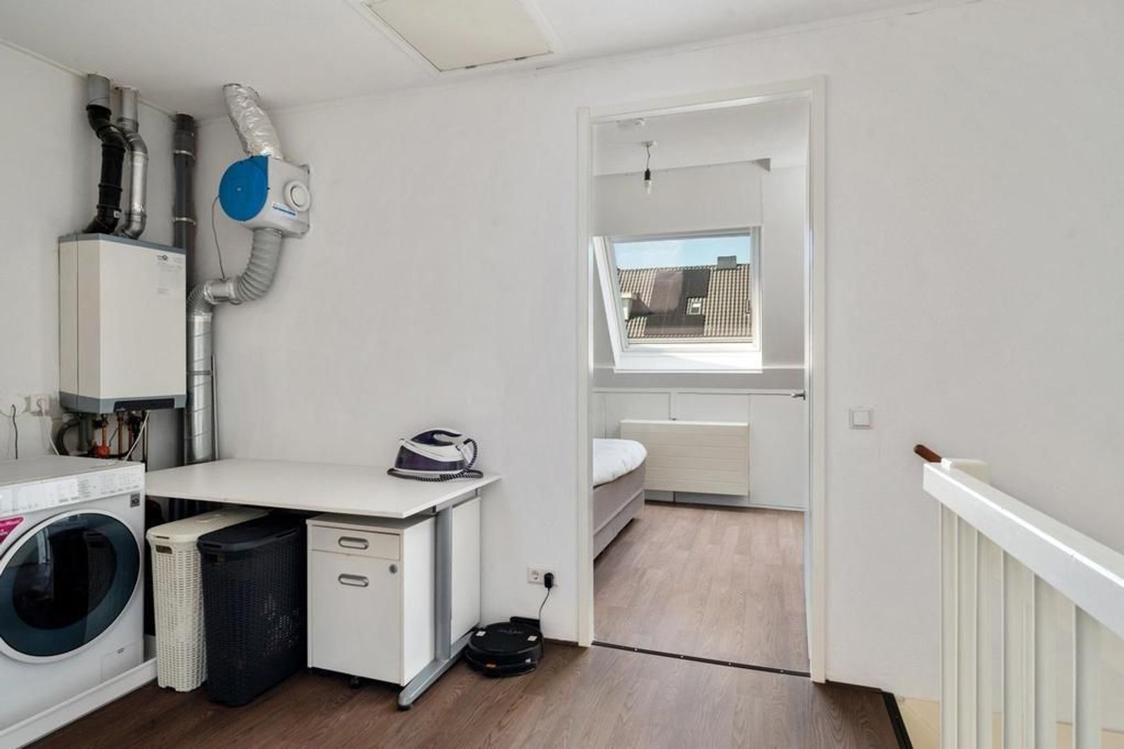 Overloop met wasruimte, opbergruimte achter knieschotten en toegang tot een slaapkamer. Slaapkamer 3(ca. 4.85 x 2.62m)