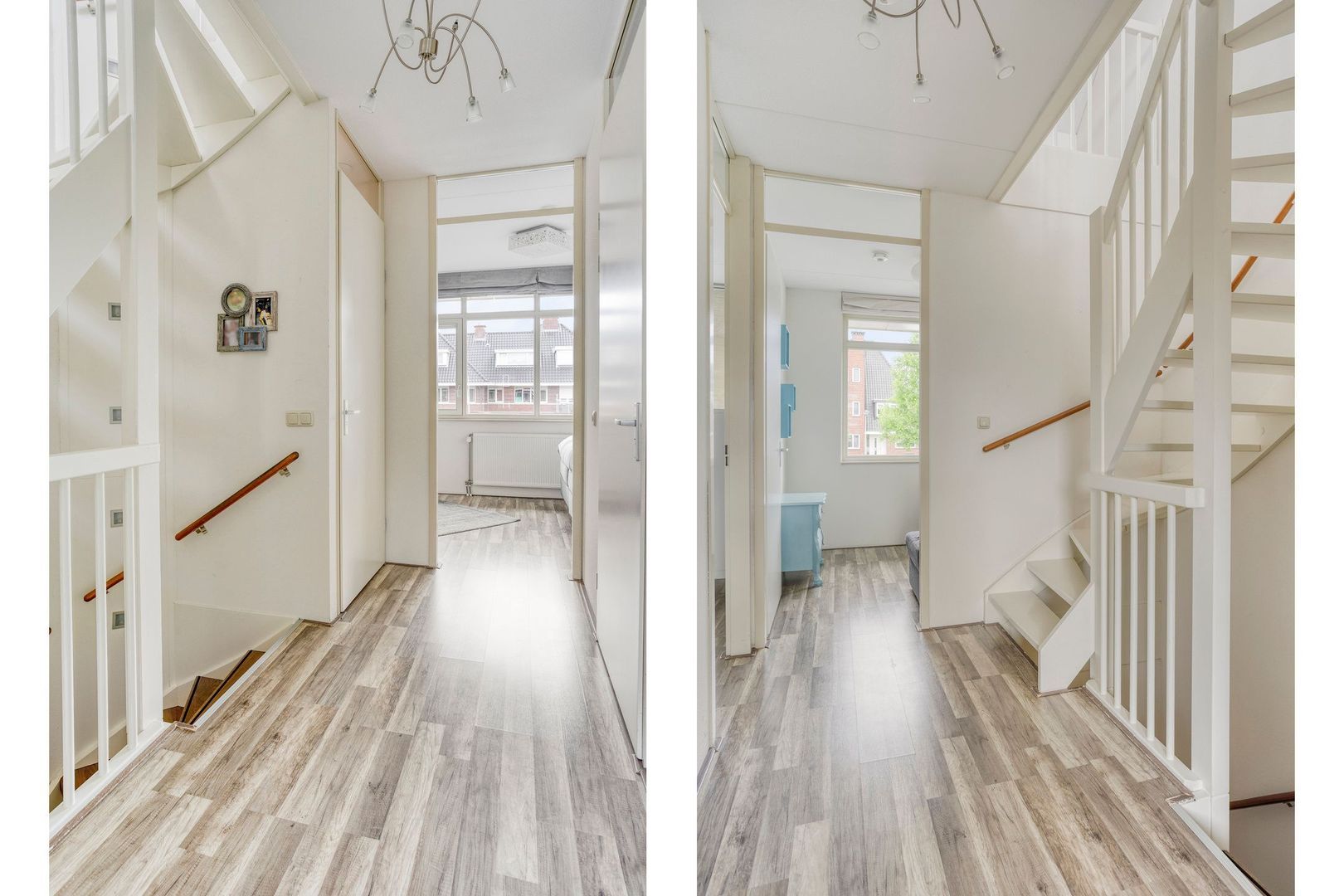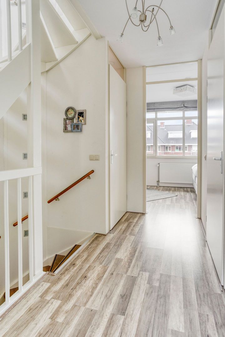 Ruime overloop voorzien van laminaat dat door loopt tot in de slaapkamers.