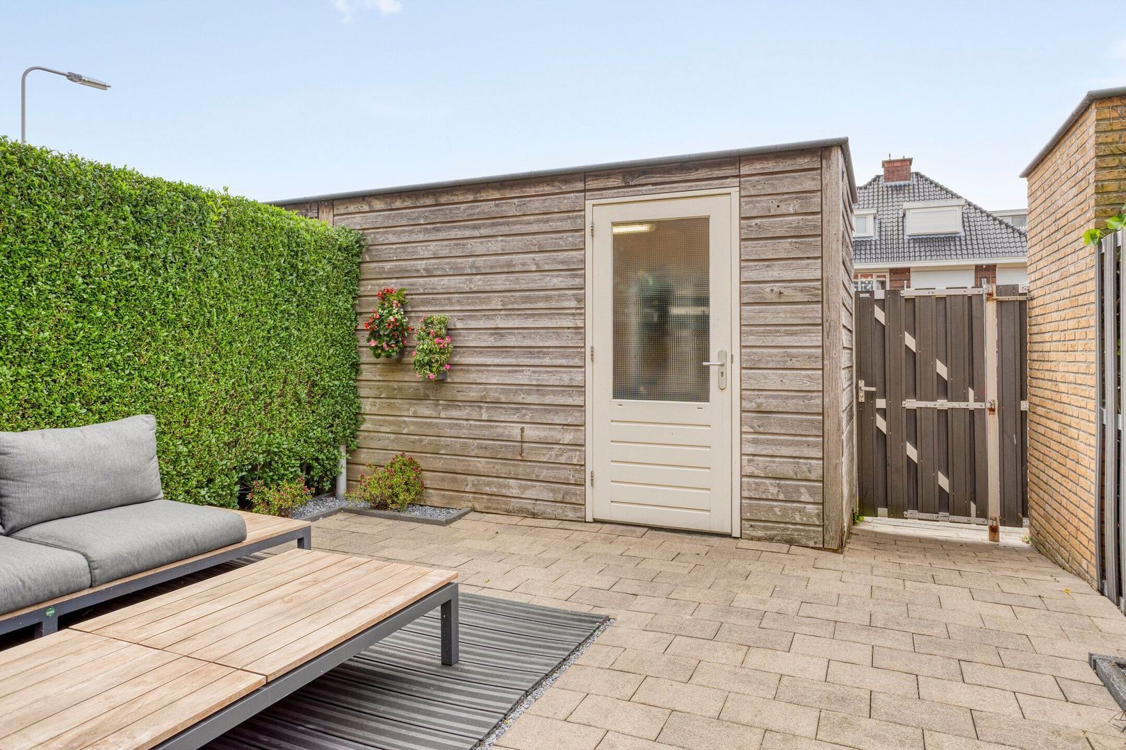 De achtertuin is gelegen op het zuidoosten, wat betekent dat er zowel ochtend- als middag zon te vinden is. Achterin staat een houten schuur en daar is ook een achteruitgang naar de parkeerplaatsen. Hier kunnen kinderen ook veilig buitenspelen en tussendoor steken naar de speeltuintjes.