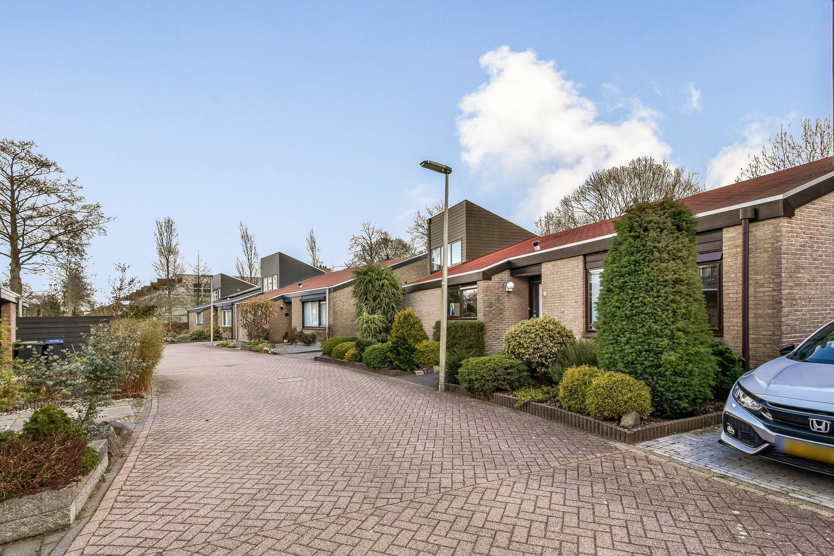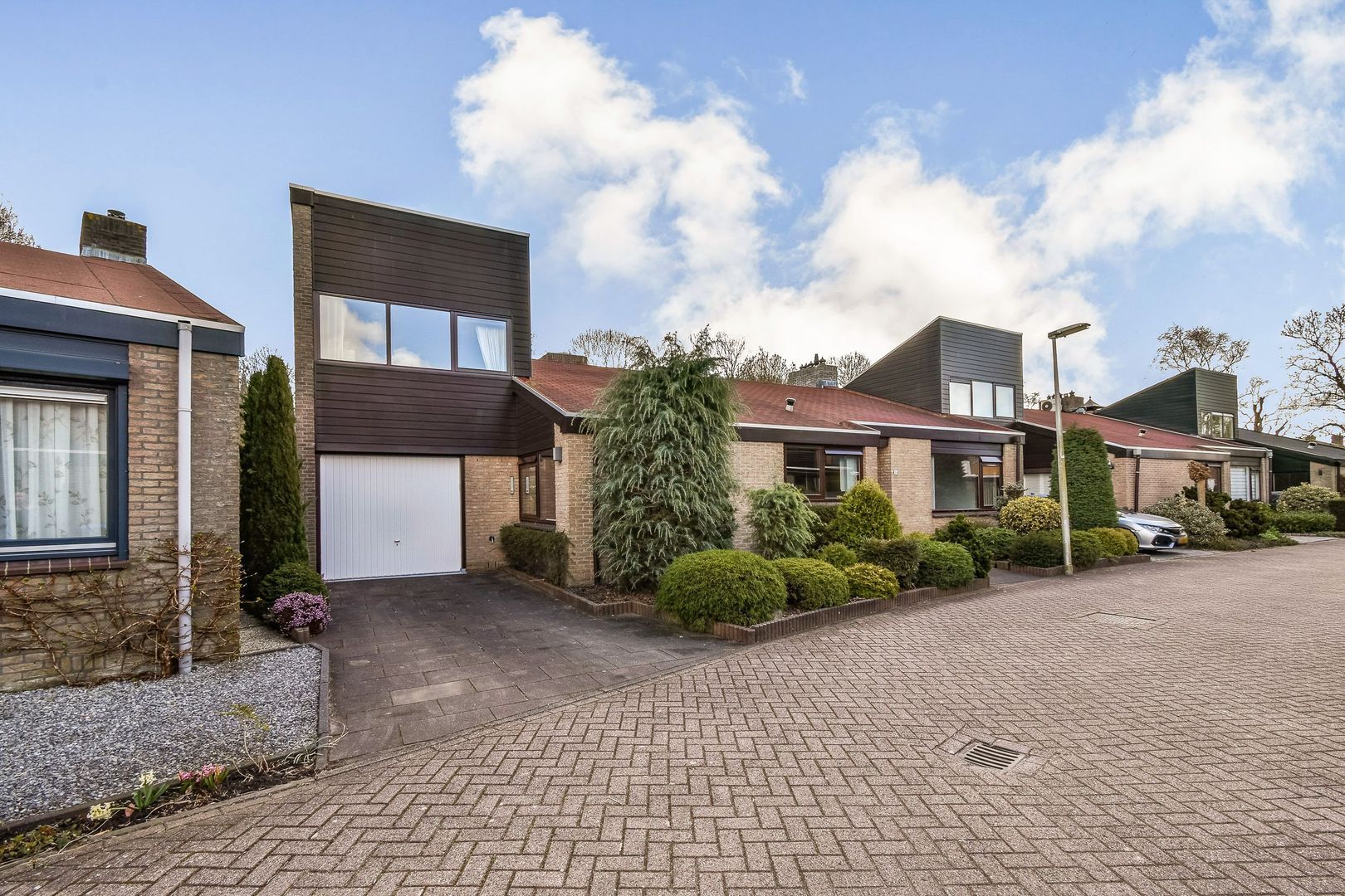 Parkeren op eigen terrein met toegang tot de garage en de woning.
