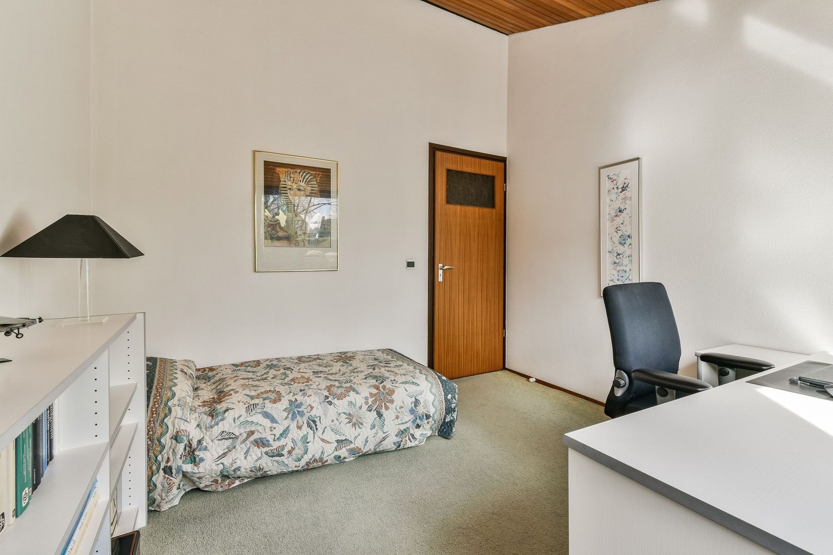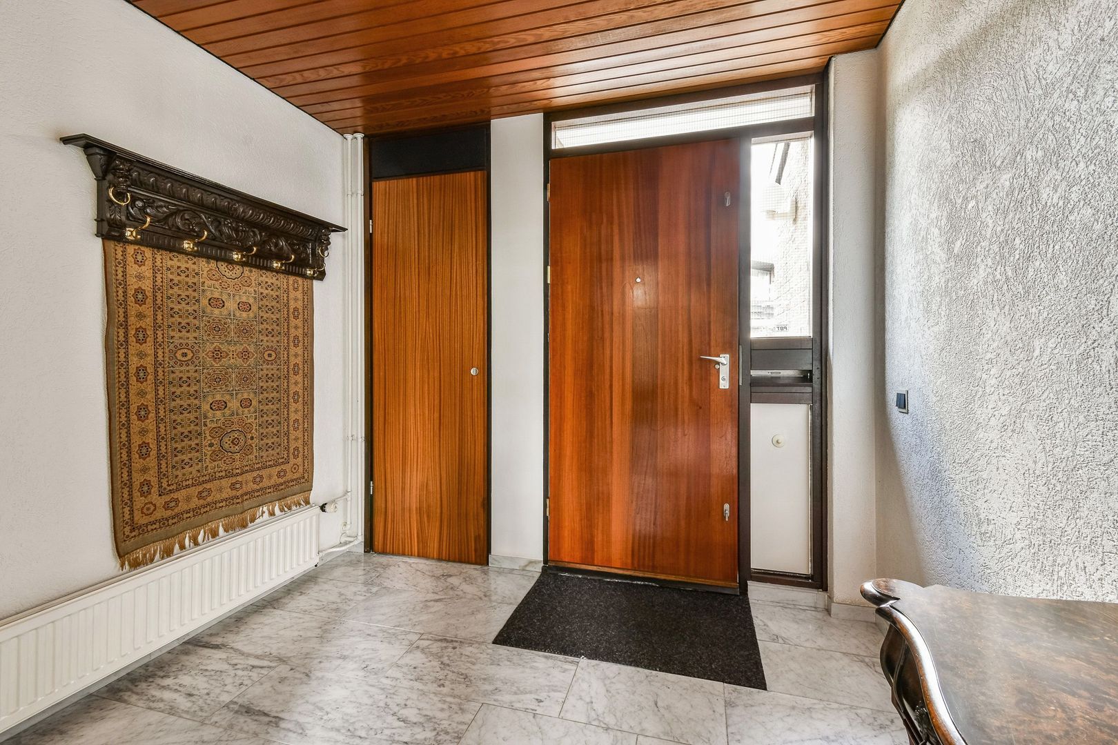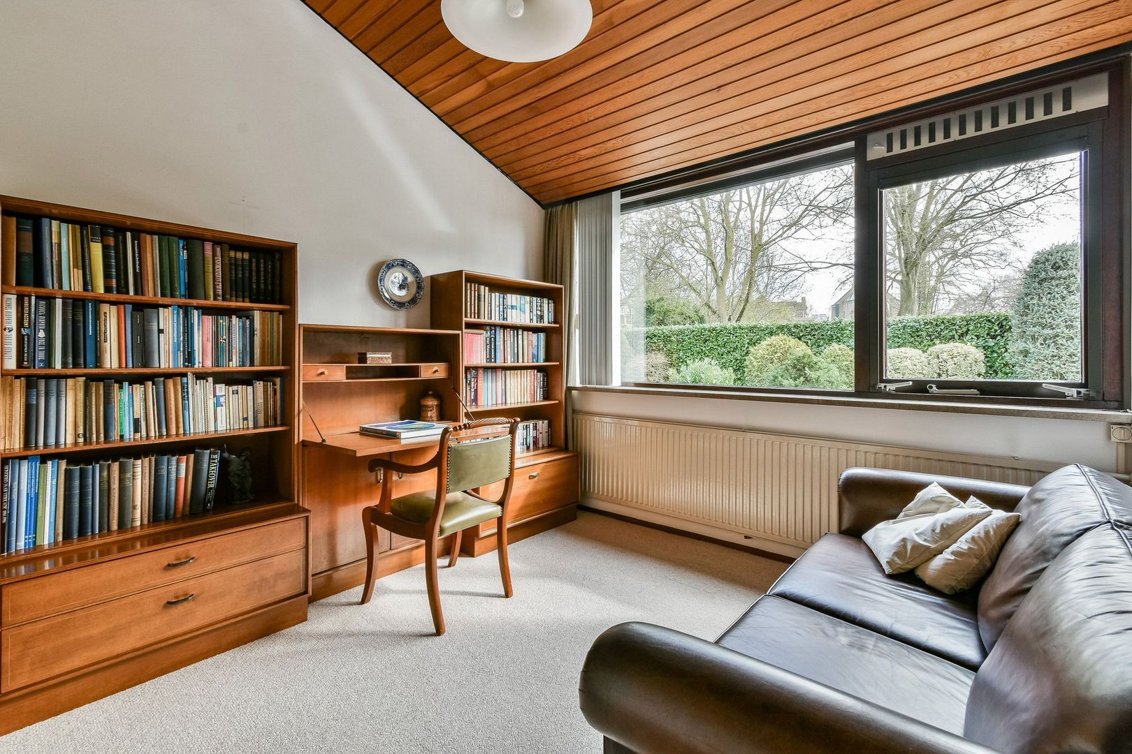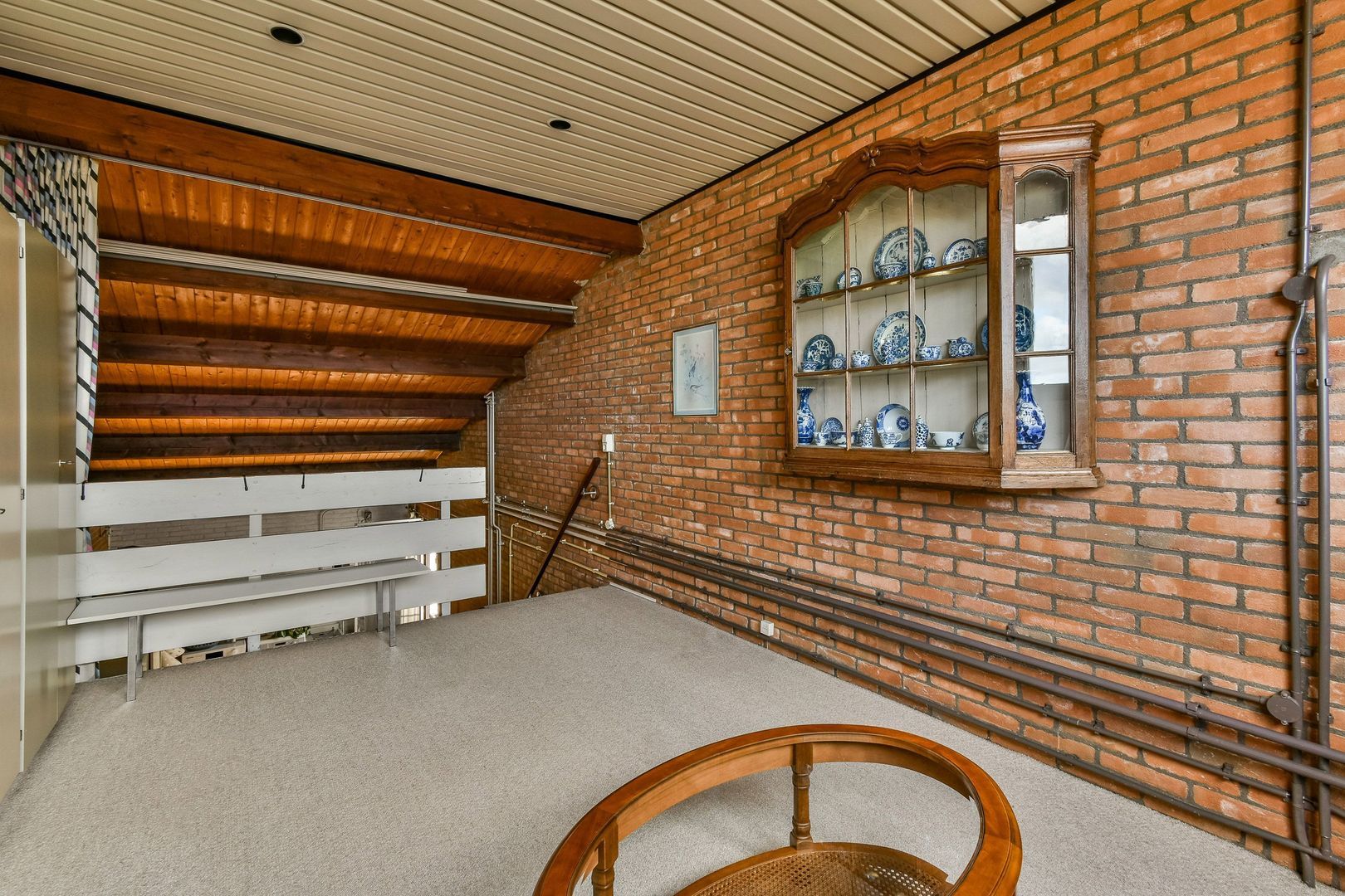 Vanuit de garderoberuimte zijn ook de tweede badkamer en de vliering met CV-ketel toegankelijk.