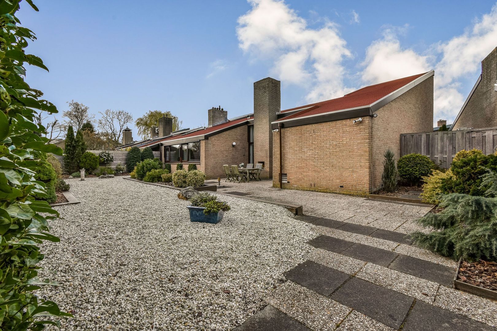 Deze royale bungalow met ruime garage en fraai aangelegde achtertuin op het zuiden is gelegen op een perceel van maar liefst 489 m². De tuin biedt veel privacy en een vrij uitzicht over het park en de kerk, een unieke en rustige ligging.