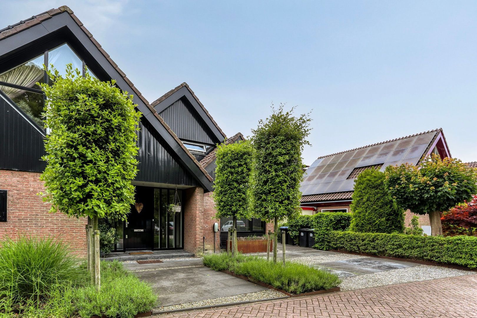 De woning beschikt over 32 zonnepanelen, laadpaal, diverse buiten stopcontacten en buitenkraantjes.