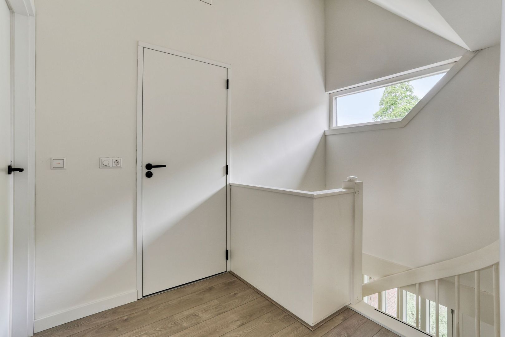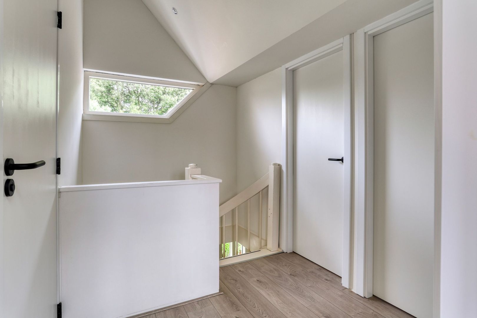 Overloop met vliering en geeft toegang tot alle vertrekken.