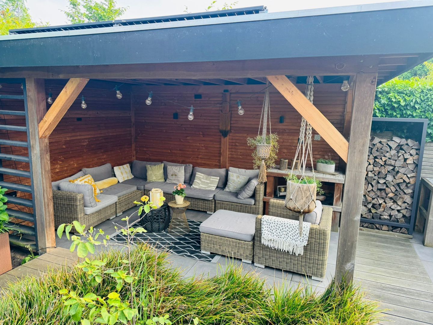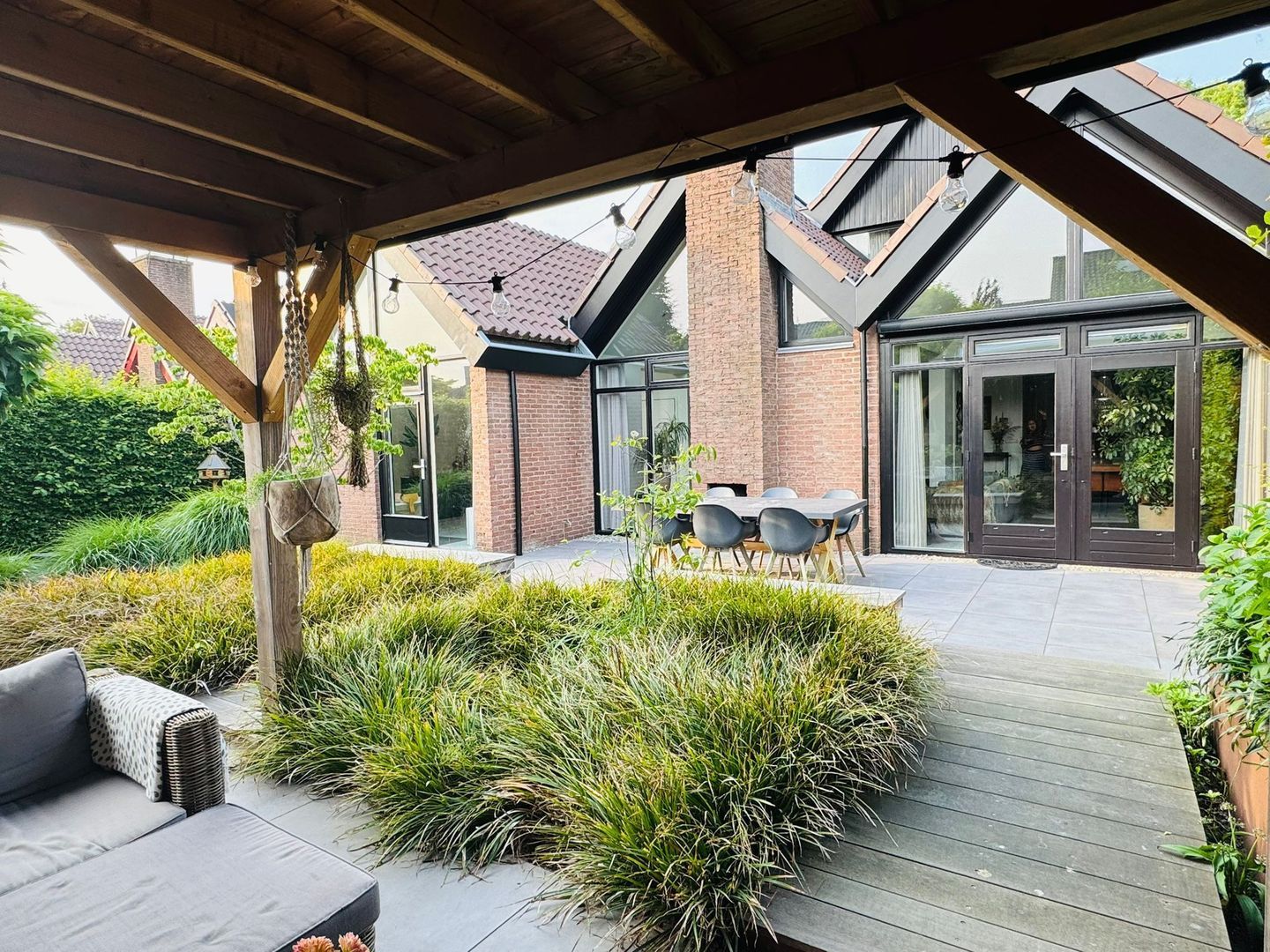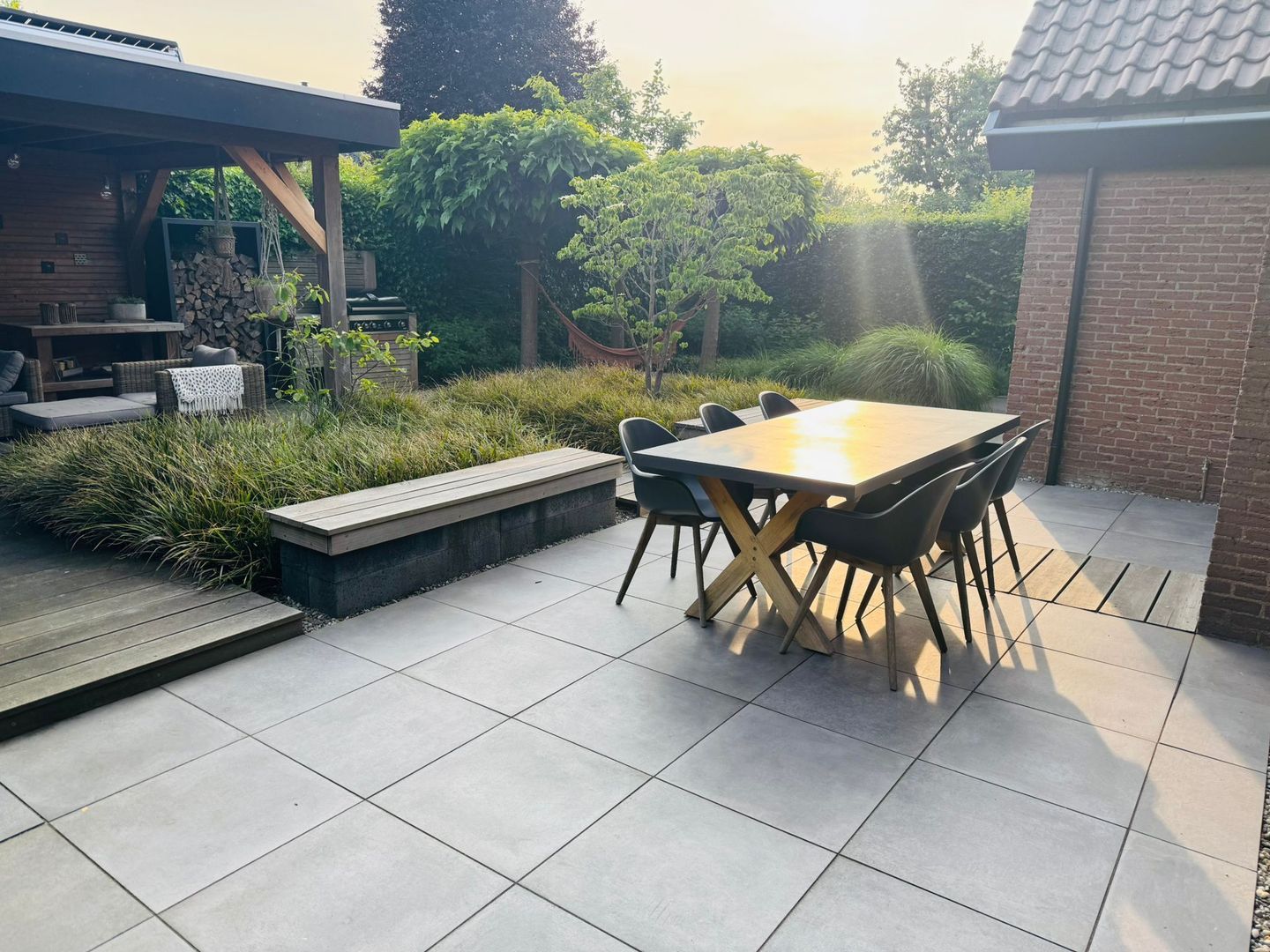 - Zonwering bij de openslaande deuren;